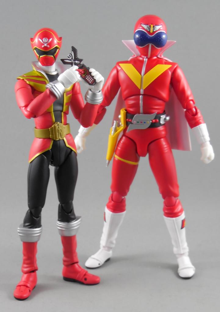 The box reads "Akarenger", so I guess they're sticking to the old "Gorenger" translation, but honestly "Akaranger" makes a heck of a lot more sense considering every season outside of Goranger has translated レンジャー properly to "Ranger" and this is the same line of toys that translated "Basco" as "Vasco" despite him having a "B" for his flag and being named after a real explorer... But anyway! He's indeed significantly bigger then any other Sentai Figuart. He retains the same sized hands though, so it is possible that its just to replicate the puffy look of the old suits. VulEagle will show wether this is a permanent shift in the size of Sentai. Weird that Sentai apparently sell so badly they're released so sparingly, yet they make them bigger and therefore less cost efficient. Bandai, why you so strange? He's not actually big enough to look out of place with other Figuarts though, so I'm thankful for that. Accessory-wise, Akaranger is decked out! He's got 5 pairs of hands, plus one extra for the iconic Goranger pose, the Goranger Storm Soccer ball, the Red Bute, the Red Bute in Spear Mode, the Silver Shot and his belt with a Birdie attached. The cape comes packaged separate from the main body and is hard plastic. It slots in very solidly with an audible "click" that feels solid enough that I don't want to try and take it out. The Silver Shot doesn't actually fit inside he holster, instead there's an empty holster and a holster with the gun attached that you can swap out when needed. While Akaranger comes with a lot, there's still room for more! I know the Goranger Storm came before the Goranger Hurricane, but I feel the Hurricane is actually a bit more iconic. I wish it came with the Hurricane football instead, but maybe one of the (hopeful) other members will comes with it? I'd also have liked the Red Bute actually as a whip or lasso, which is how he mostly used it. It only comes with it folded up or as a spear, which kind of sucks. An interchangeable flowing cape would've been nice to make action poses have a bit more "oomph" too. Still, Sentai Figuarts have been criminally lacking in accessories lately and Akaranger is a big step up! I think he's fantastic. I'm so happy that he wasn't cancelled and it gives me hope for the future of Sentai Figuarts. He's a lovely figure and the most important character in Sentai (and by extension) Power Ranger history as the first ever Red Ranger and my collection feels just so much more complete by having him! If you haven't already bought him, do it! Support the future of Sentai Figuarts! Just for fun, the two legendary Red, Blue and Yellow heroes. Last edited by Starscream Gaga; 10-02-2014 at 03:41 AM.. |