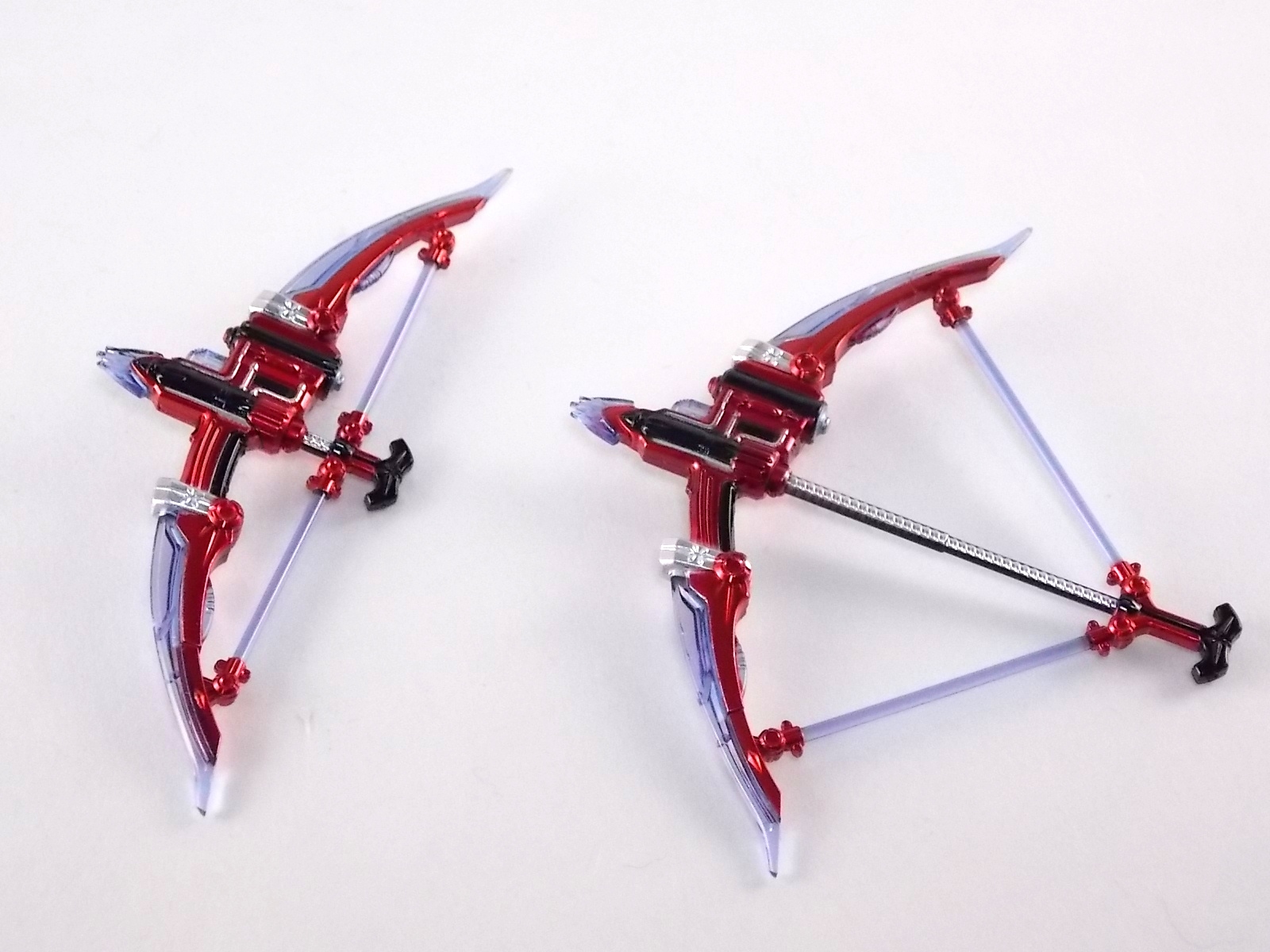 First off, Gaim was in two parts. His torso fell out the box leaving his legs behind and I was like whaaaat. What was worse was that when I was trying to pop the ball back in it was really finnicky because of the second hinge on the joint. Now he's fine and looking badass as hell, though I accidentally scratched some paint off one of his form cloak bits, but a dash of silver paint will fix that.