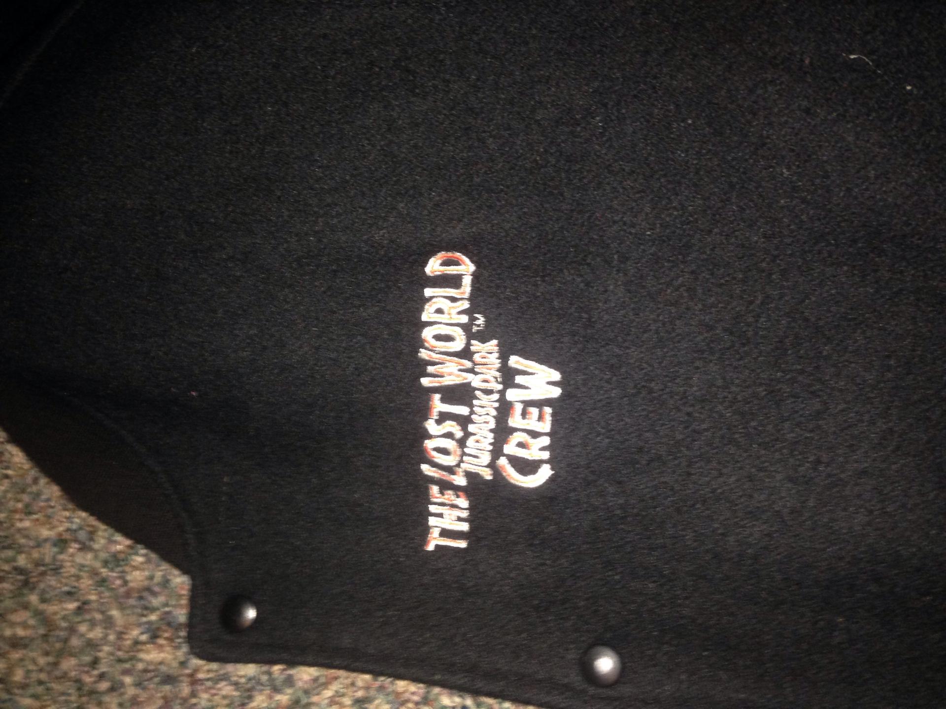Got this at a second hand clothing store. On the front it says lost world crew so Im imagining this coat was worn by the movie crew when lost world was being filmed. It also has a Hershey's logo on the sleeve. Anyway still a great find xl and fits perfectly on me.
