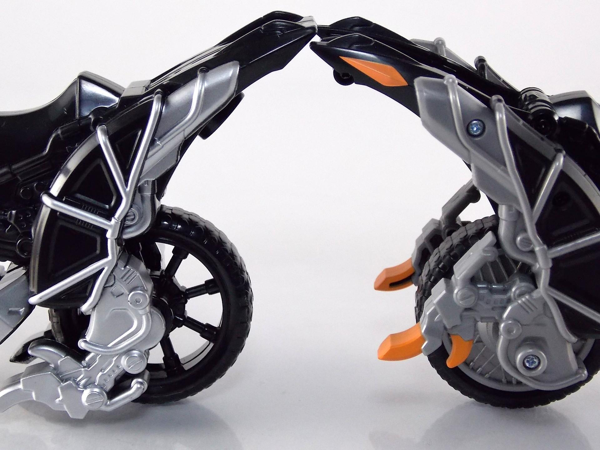 TokuNation is proud to present the first in a series of complete, in depth, hi-res galleries for Power Rangers Dino Charge! Today we take a look at the mode of transportation for this years prehistoric heroes, the Dino Cycle compelte with 5" Red Ranger! Packaging New to this year's line is this scale of vehicle, and with that comes some new packaging. This time around we get an open window box style for the Dino Cycle with Red Ranger. Held in by just a few plastic straps it's not the most reliable or sturdy box but it gets the job done. The outer packaging is decked out with the usual stock photography and screen shots from the source footage, including a CG image of the Cycle in it's separated Deinonychus components. And add for the Dino Charger scanner app is also shown on the side of the box. The back of the box gives us another stock shot from the footage of Dino Charge Red riding the Cycle along with a quick look at how the cycle function as well as several other figures in the line. There are two other simultaneously released versions of the Dino Cycle in slightly altered colors with other ranger figures included, items which we will also be taking a look at in the coming days. These images also give us a god look at how the Dino Cycle is meant to interact with the Dino Charge Megazord and how the Megazord interacts with the yet to be released Zord Armors. Dino Cycle The main event of this review is of course the Dino Cycle itself. The first thing to know about this vehicle is that it's BOA's version of the Deinochaser from Zyuden Sentai Kyoryuger's toyline. A vehicle which itself is quite sought after for it's compitability with 5" & 6" figure lines. Much of what can be said about the Diuno Cycle is in part in comparison to the Deinochaser. But it should be stated first that this vehicle is a vast improvement over the last several years wroth of generic repainted bikes. In quality and functionality it far exceeds the Cycles of the past several years. As you can see the Dino Cycle opts out of having quite a few paint apps compared to Deinochaser, which isn't entirely odd for BOA releases. There's some excellent detail on this vehicle that could really be brought out with paint though, when you look at it side by side with Deniochaser it's apparent some important details were overlooked, such as the eyes on the front half of the bike being unpainted. There are also significant physical differences between the two. Gone is the Zyudenchi or Dino Charger gimmick from the original figure. Odd considering the Dino Charger gimmick is the central element of the Dino Charge toyline. This appears to be one of the few primary Zords or Zord like vehicles that has forgone it's inclusion. Aside from scaling the Cycle down a bit to compensate this lack of functionality it doesn't actually alter the physical look of it by much. Aside from this mostly all functionality in the figure has been lost. Where the original Deinochaser could separate into it's components at the Zyudenchi connection and then transform into proper dinosaurs, the Dino Cycle instead separates with no transformation at all. The yellow half need only be flipped over to stand on the handlebars, the rear black half does absolutely nothing. Sadly the two have just been far too simplified, the entire transformation gimmick has been removed meaning the look of both the combined and individual modes is off. As you can see in the comparisons it's a stark contrast. Now that's not to say the Dino Cycle isn't without it's merits. As with the Deinochaser before it, it's actually scaled quite well with 5" & 6" figures. The ranger included with it is of course made to fit right onto it, but it accommodates S.H. Figuarts Kyoryugers quite well too! Though the Dino Cycle is a tad smaller overall it still works just fine with figures in this scale. This figure also features a limited amount of Zord Builder compatibility. 2 female ports on the yellow half, & 1 each of male & female on the black half. They're a bit hard to utilize. While I don't have a Dino Charge Megazord I made due with the Q-Rex and had some fun, the female port on the back half it particularly difficult to make use of. Red Ranger Included with the Dino Cycle is a rather plain 5" Dino Charge Red Ranger. No one expects these type of figures to be extraordinary, even when compared to the mainline 5" figures. But this one is quite simple. Very few paint apps and severely limited articulation. Even when compared to the Kyoryu Red that came with Deinochaser, Dino Charge Red is quite plain. It has the typical BOZ bulkiness and muscles, but has only a few silver paint apps, and only basic articulation. So basic in fact the wrists cannot be rotated from the holding handlebars position. But the standard Dino Charge 5" figures should be much nicer than this one. Final Thoughts Right out of the gate Power Rangers Dino Charge has already surpassed the Super Megaforce toyline in originality and quality. Trade-offs in functionality one way or the other have been met with a degree of originality I did not expect from Bandai of America. While it's clear to me personally that the Deinochaser released for Kyoryuger is a better toy in most ways, it's also become and exceedingly rare & expensive. As a budget alternative the Dino Cycle is actually fairly nice. It retains at least the basic functionality of the real deal and makes for a great bike that's far and above better than what we've gotten used to in the last couple years from Power Rangers toylines. If you can find one of the three variations of this vehicle at retail now I'd recommend getting at least 1 as a cheap alternative to the Deinochaser if nothing else.