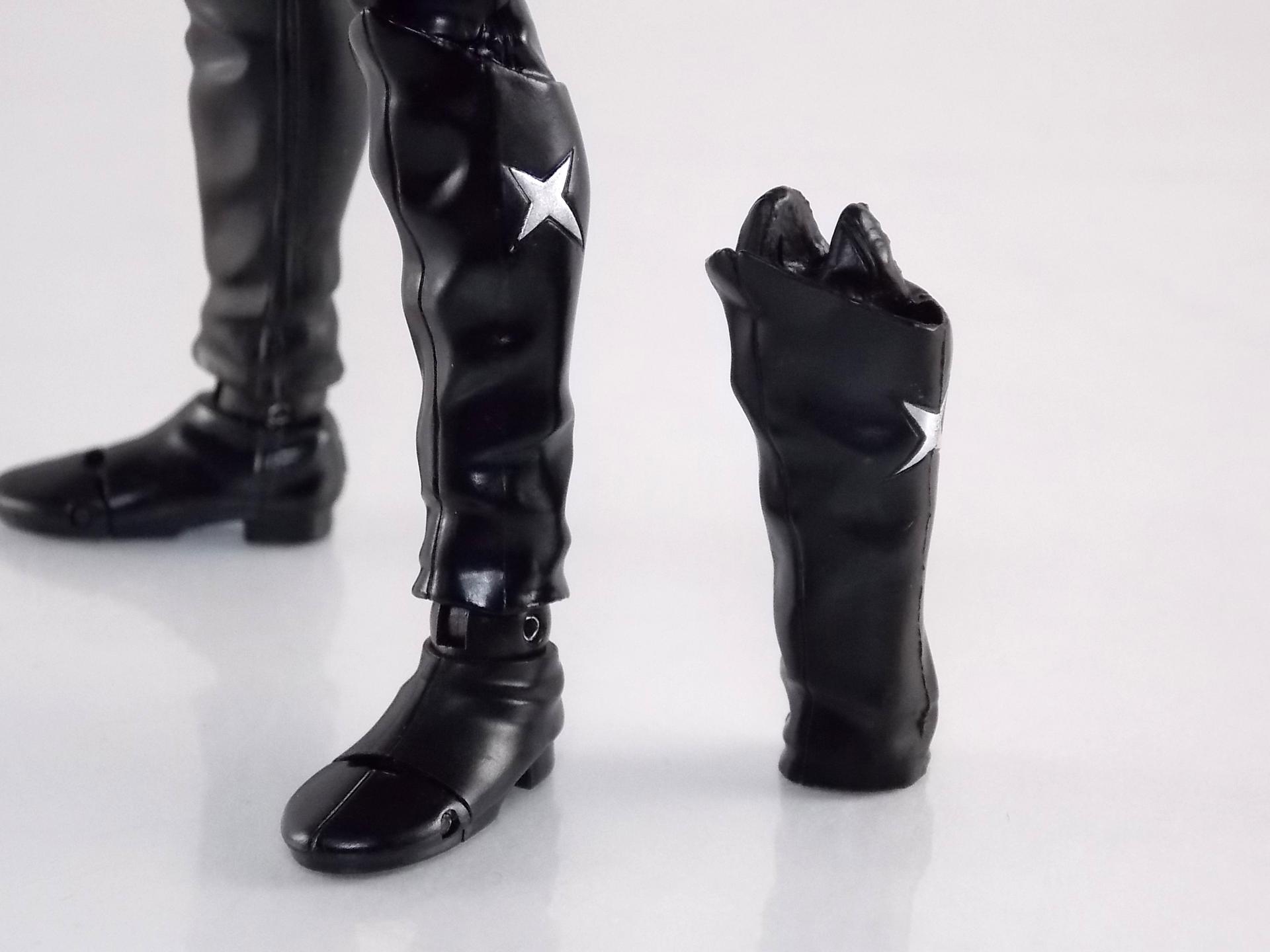 Packaging As a companion piece to Kikaider S.H. Figuarts Hakaider features the same wonderful style of minimalistic packaging art. As with Kikaider it's a unique slim style box that's nowhere near the normal dimensions of SHF boxes. Just as Kikaider's does, it looks fantastic. Main Figure After the extensive wait endured by many for an S.H.Figuarts Kikaider, a beloved hero by Japanese and western fans alike, the turn around to get his arch nemesis was comparatively quick. But first things first, S.H. Figuarts Hakaider is definitely a step up in quality from Kikaider. Where Kikaider seemed to be plagued with QC issues both minor & major for many collectors, Hakaider has surprisingly few issues. As many recent sentai & rider S.H.Figuarts releases have done, Hakaider features gorgeously sculpted in "fabric" details. The real suit was a bit of a leathery vinyl material and while that kind of look can't be entirely replicated in plastic, this is an excellent attempt to do so. Since Hakaider's primarily black as well there aren't very many paint apps to worry about, but what's there is done just right. A few small inconsistencies exist in the yellow apps on mine. The real excellence of this figure is all in the head though. Not only is Hakaider's brain sculpted beautifully, the electrical wires are painted as well, and the skull cap is removable! And the brain is too! That's right, Hakaider's brain is entirely removable to replicate any and all wacky mad doctor scenarios you wish! Such as I have below. This is an incredible bonus feature of the figures design. Meanwhile the other incredible bonus of how the head is designed is that Hakaiders' eyes have incredible light piping. Since the skull cap is open and clear his eyes capture a ton of light and almost appear to glow. Perhaps the only complaint I can levy against the figure is the shoulder design. Though the shoulder pads are accurate to the suit, they are molded as one gigantic piece that stretches across the chest. It can angle upward somewhat on either side to give the arms a bit more room, but ultimately this shoulder/chest piece hybrid interferes with the arms movement a bit. Otherwise this figure is pretty excellent and a wonderful companion/rival piece to Kikaider that greatly exceeds Kikaiders quality. Accessories As with Kikaider, S.H. Figuarts Hakaider is a little lite on the accessories. But it's definitely a better selection: 3 - full sets of extra hands. Complete with an expressive hey I'm pointing at you hand which I always love to see. 1 - Hakaider Shot handgun. A beautiful silver chromed handgun that's as comedically long as it is in the show. It looks like something the Joker would be packing except Hakaider's gun is deadly and awesome. The next accessory is directly tied to the gun. 1 - replacement shin. This shin can be attached to by removing the previous one at the knee and ankle joints. The advantage of this one is that it has a built in holster for the Hakaider Shot. I love that this is included but my Hakaider is almost always holding the Shot so it's just a bonus to me. But a welcome bonus none the less. This selection of accessories including plenty of useful expressive hands, a nice side arm, and a leg section replacement catapult this release well beyond Kikaider's limited accessory count. Final Thoughts As the second release in this line from Jinzo Ningen Kikaider Hakaider didn't have a very high bar to surpass. But I think we all hoped for Hakaider to be better than Kikaider anyway. And indeed he is. While the sculpt and paint apps may not be as dynamic as Kikaider, the personality, functionality, and accessory count of S.H. Figuarts Hakaider put him far above his predecessor. Hakaider isn't just a wonderful addition to a fledgling Kikaider collection, but also to your toku villains collections in general. And I eagerly await the next releases in the Kikaider line of S.H.Figuarts, the next couple being Kikaider's Side Machine & Hakaider's White Crow!