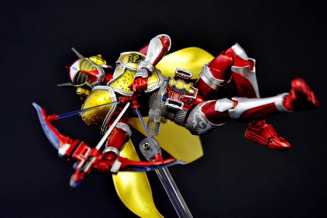Released as part of the exclusives at the Tamashii Nations Winter Event, this figure was only available to those who either knew someone going, purchased a pre-order from one of the many hobby shops going, or for those lucky enough to pick it up via Mandarake. A fourth option was available too - a web shop lottery exclusive - and that has yet to be finalized in terms of who gets it and who doesn't. Either way - this figure started around the $75 mark before the show and is now over the $100 mark online. So for those who have interest in this figure you might have to wait until your tax return or start saving pennies now - it's going to cost you. But let's get in to the review! PACKAGING This is pretty much a let down except for the sexy cover of the packaging. The two sides and the back are boring and the sides mirror each other. Needless to say, except for the front of the packaging, there's nothing to write home to about this one. THE FIGURE & ACCESSORIES Your standard S.H. Figuart body with interchangeable hands (3 sets plus fists), two versions of the Sonic Arrow (blade and bow-string pulled), as well as a closed Lemon Energy Lock Seed. The figure comes with the open and removable Lemon Energy Lock Seed. The real beauty of this figure is the three piece cape. The cape itself is articulated (see images). This allows for some awesome set-ups of the figure in mid-air or striking some awesome pose with the cape flowing in the background (flowing is unfair, these are like 'wings' and are supposed to represent a cloth-like cape in the show). The main point I'm trying to get at is this - if you picked up S.H. Figuarts Kamen Rider Gaim Kiwami Arms you will ask yourself how the hell they dropped the ball so badly on that figure and knocked it out of the park on this one. The "bubble" detailing on this figure is another great piece of work. Like S.H. Figuarts Kamen Rider Zangetsu Shin, the bubbles add to the overall character without taking away from the overall look and feel. They are nicely done and just add the cherry to the top of this figure. The only issue with this figure's accessories is that the open Lemon Energy Lock Seed doesn't want to attach securely to the Sonic Arrow, meaning you have to get creative and make it the last piece you put on else as you move the figure around it will fall off. Whether or not that is just my figure's problem or is a running problem is unknown (I didn't research because I honestly didn't care, it's such a minor flaw). There are reports as well that some of these figures really are lemons (lolz) - some people report really poor paint jobs or globs of silver paint on the red legs of the figure. I was fortunate enough not to have this problem. Time for the list! PROS!