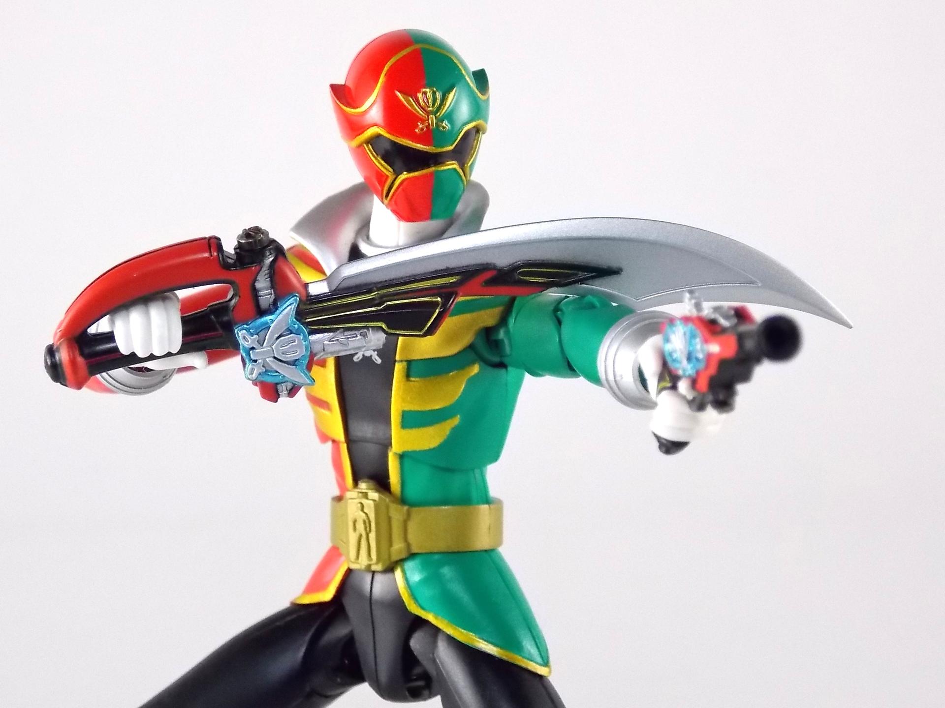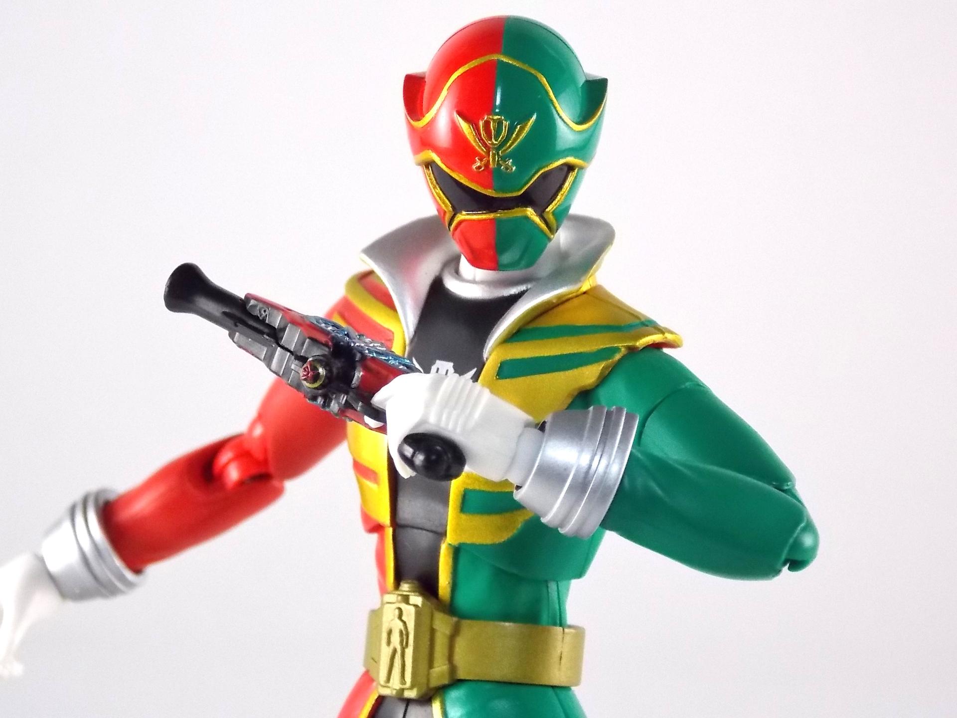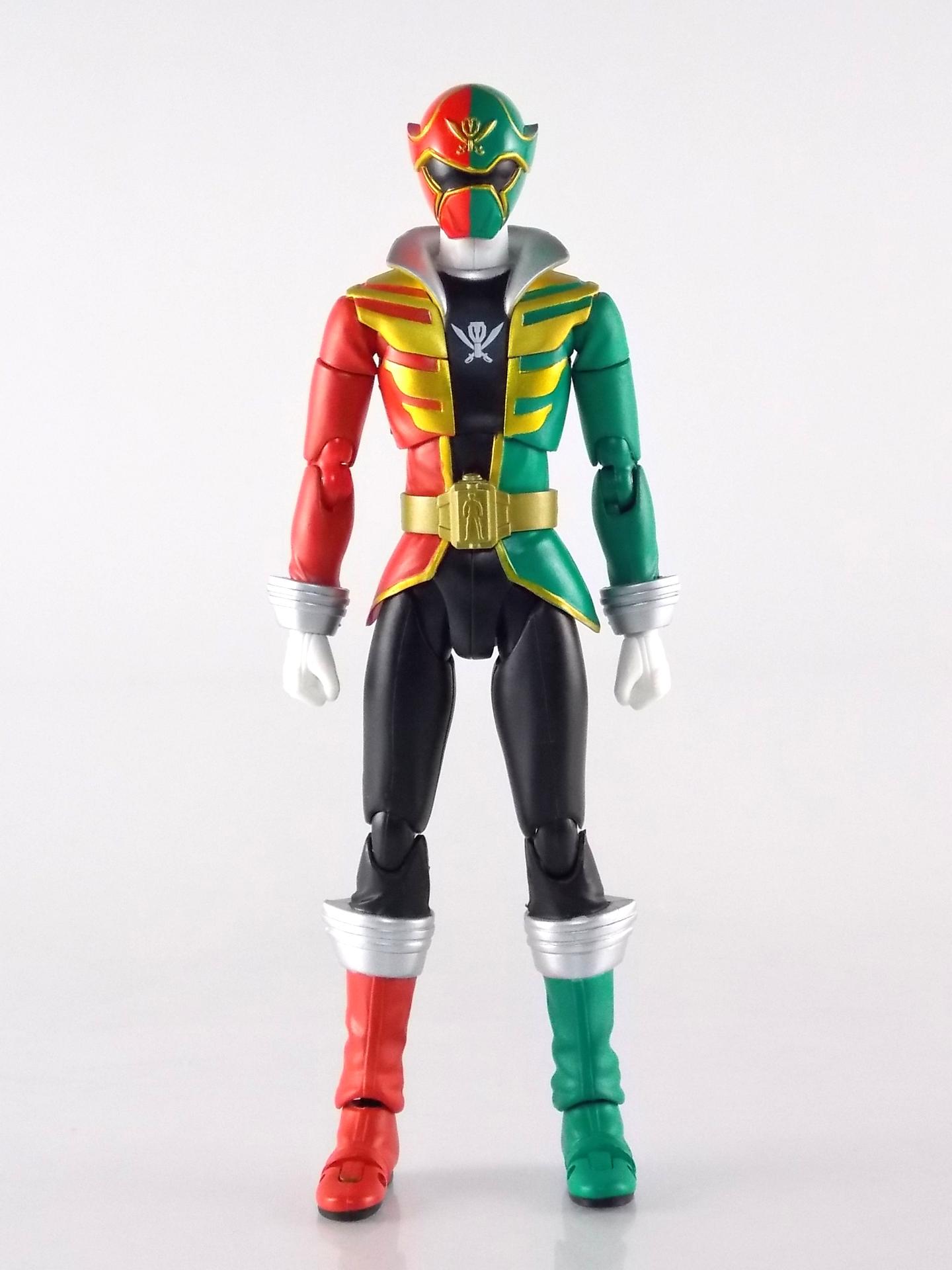 TokuNation is proud to present a special holiday gallery for you. But not just any gallery a brand new Gallery 2.0! Released 2 years ago, S.H. Figuarts Gokai Christmas is a special one off form from Kaizoku Sentai Gokaiger episode 44. While we did a brief photo gallery of the figure at the time, we never did it proper justice. But now we're introducing a 2.0 gallery of sorts, a full fledged look at this wonderful figure. Check out 55 images and the full review below! Packaging S.H. Figuarts Gokai Christmas was the first and so far only sentai Figuart to be released via Toei-Hero.net. Generally figuarts are released via this site when they can't find a home on the Tamashii Web Shop. These figures tend to be made in even smaller quantities than standard exclusives as well but they have the same stellar quality. Gokai Christmas comes in the standard Gokaiger styled boxed but with tons of new detailing, primarily some gorgeous gold foiling on the edges and text. Aside from this a striking green & red candy cane striped pattern is also featured on the outer box and the inner insert. It's really just a fantastic package that I'm a huge fan of. Main Figure S.H. Figuarts Gokai Christmas is a pretty straight forward release. Much like the actual suit used in the show this figure is a basic repaint. As a combination of Gokai Red & Gokai Green the majority of the figure is just a repaint of the basic male Gokaiger body. Aside from being two-tone there are no other real changes to the basic body. The real difference with this figure and the other male Gokaigers is the helmet. It actually is, like the rest of the body, a mash-up of Gokai Red & Green's helmets. Unlike the basic bodies though the Gokaiger helmets all had unique visors. So Gokai Christmas comes off with a wild helmet that goes from the sharper lines of Red, to the softer Green design. The helmet also features a gorgeous new gold paint app on the Gokaiger emblem. Honestly if you own the other 4 male Gokaigers there isn't anything new for this figure at a basic level. But it's a gorgeous figure and a wacky concept brought to life. Accessories Gokai Christmas, while already excellent, also includes a plethora of accessories: 4.5 - sets of additional hands. Honestly the hand selection on the Gokaiger figuarts was always excellent and Christmas continues that tradition. 4 full sets and 1 extra pointing finger give you pretty much everything you need. 1 - Gokai Gun. As has been the case with all the Gokaiger weapons in the past this thing is excellently detailed. The Cylinder on top can rotate up to simulate the use of a Ranger Key. 1 - Gokai Saber. As has been the case with all the Gokaiger weapons in the past this thing is excellently detailed. Just like the Gun the Saber has a working cylinder system as well. 2 - different replacement Gokai Cylinders. 1 to use with the Gun, 1 to use with the saber. Again to simulate the way a Ranger Key would be used with the weapon. These replacements are molded to appear to have generic ranger keys already in them. 1 - Standard Gokai Christmas Ranger Key. Surprisingly this tiny tiny Key has a nice amount of detail. Just enough black paint applied down the center to complete the split look. 1 - Flipped Gokai Christmas Ranger Key. Though the accessories included don't really allow you to use this key, it can be placed into a Mobirate from one of the other Gokaigers quite easily. Basically Gokai Christmas is the full package and includes every single accessory you need to recreate it's brief appearance. Final Thoughts Though many collector's may feel this release to be superfluous, I love it. The Gokaiger figuarts are still some of the best sentai ones as far as accessories and articulation go. S.H. Figuarts Gokai Christmas is the 7th Gokaiger in my collection and I wouldn't have it any other way. Though he's a couple years old now and a little harder to find, prices haven't gone that crazy on him. If you feel like you might want to own this figure I'd highly recommend it.