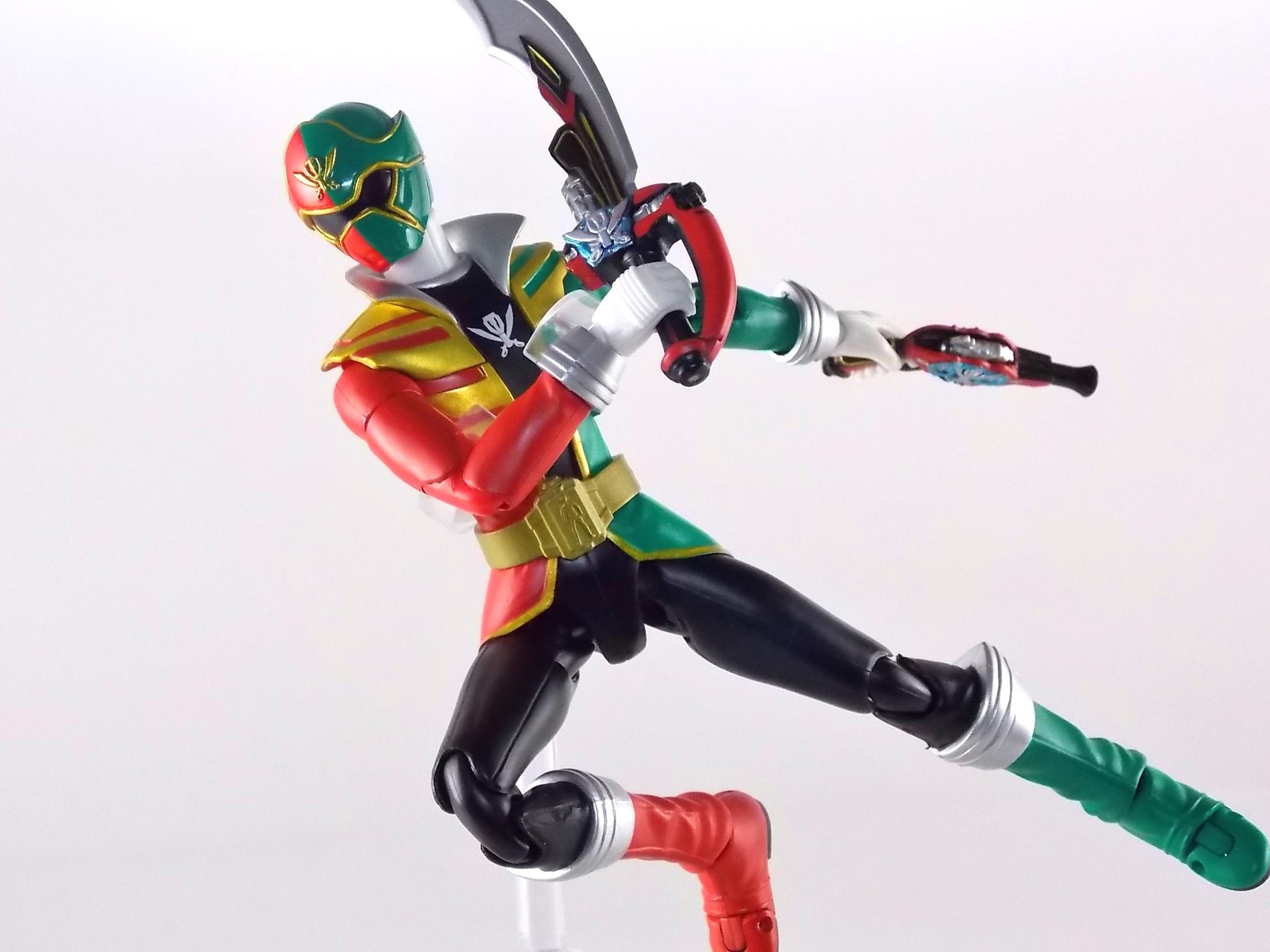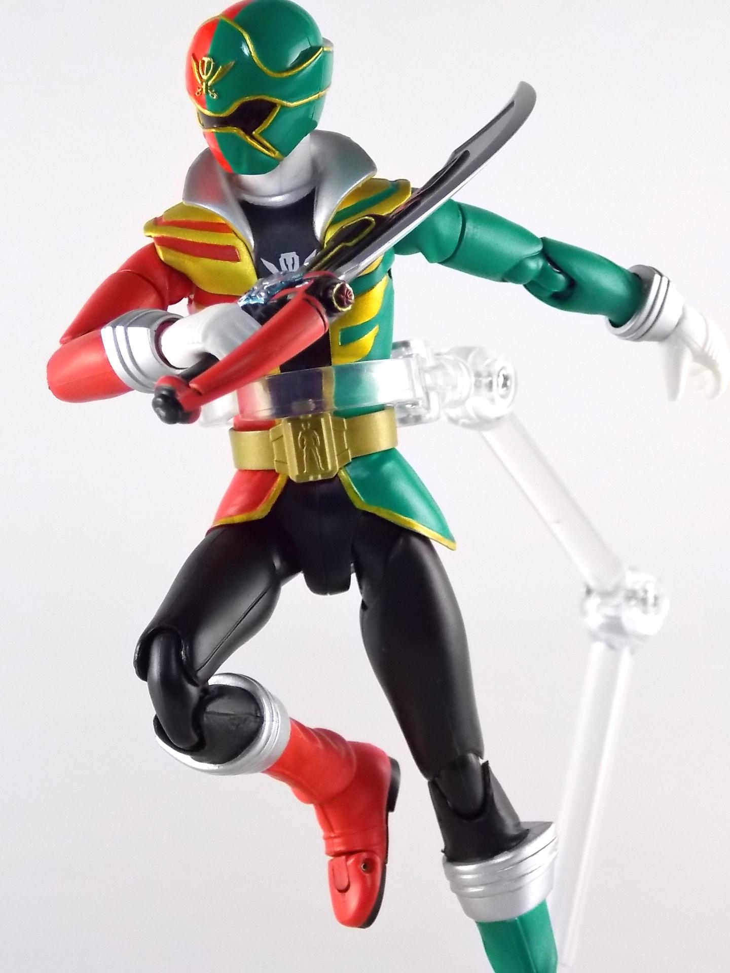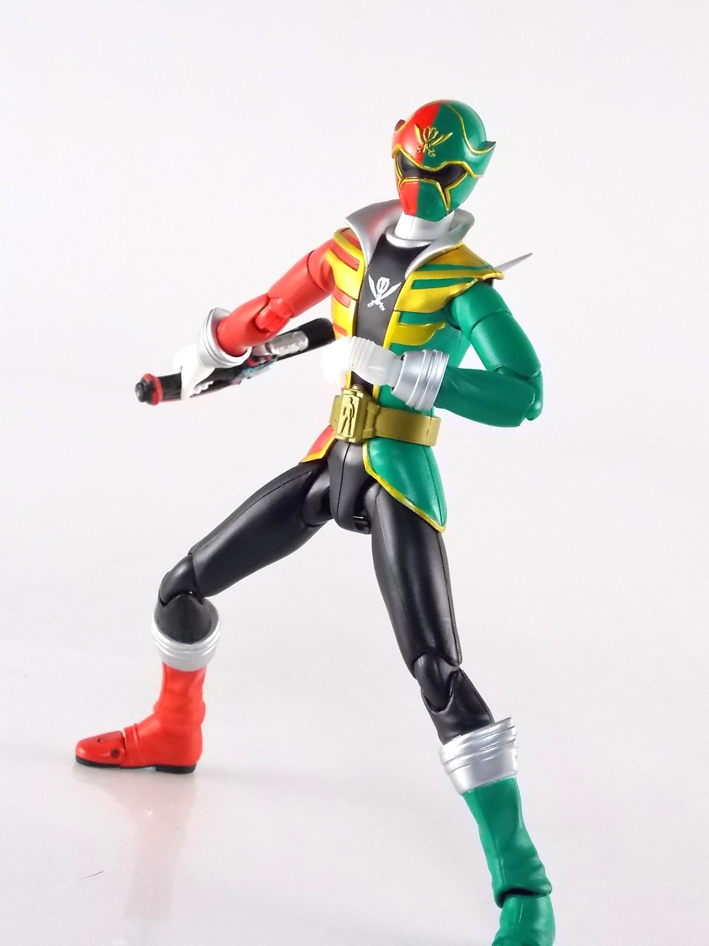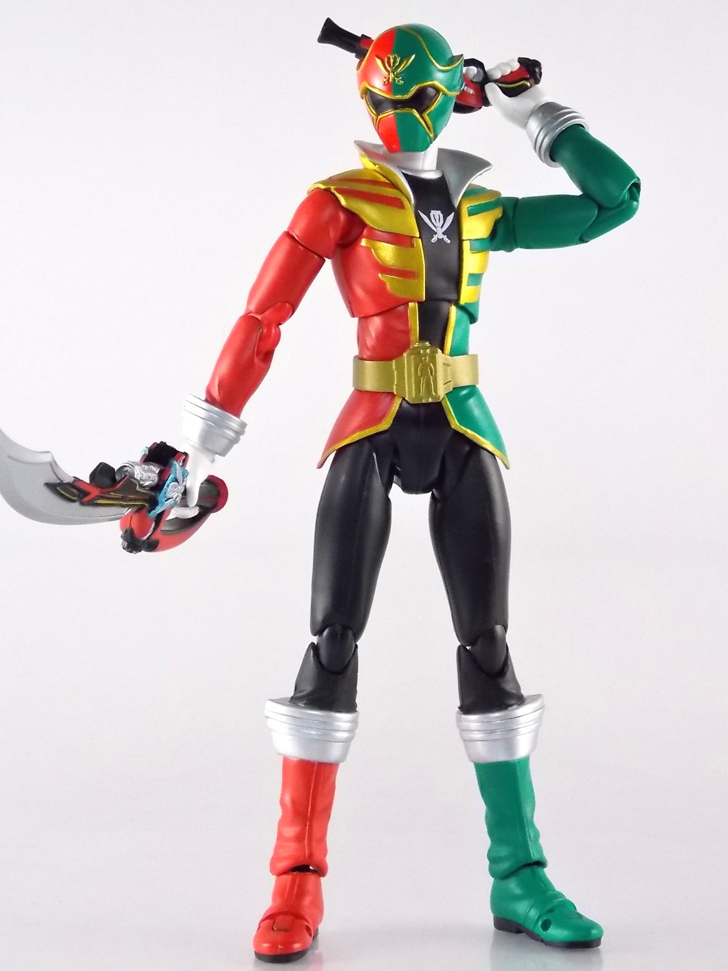 TokuNation is proud to present a special holiday gallery for you. But not just any gallery a brand new Gallery 2.0! Released 2 years ago, S.H. Figuarts Gokai Christmas is a special one off form from Kaizoku Sentai Gokaiger episode 44. While we did a brief photo gallery of the figure at the time, we never did it proper justice. But now we're introducing a 2.0 gallery of sorts, a full fledged look at this wonderful figure. Check out 55 images and the full review below! Packaging S.H. Figuarts Gokai Christmas was the first and so far only sentai Figuart to be released via Toei-Hero.net. Generally figuarts are released via this site when they can't find a home on the Tamashii Web Shop. These figures tend to be made in even smaller quantities than standard exclusives as well but they have the same stellar quality. Gokai Christmas comes in the standard Gokaiger styled boxed but with tons of new detailing, primarily some gorgeous gold foiling on the edges and text. Aside from this a striking green & red candy cane striped pattern is also featured on the outer box and the inner insert. It's really just a fantastic package that I'm a huge fan of. Main Figure S.H. Figuarts Gokai Christmas is a pretty straight forward release. Much like the actual suit used in the show this figure is a basic repaint. As a combination of Gokai Red & Gokai Green the majority of the figure is just a repaint of the basic male Gokaiger body. Aside from being two-tone there are no other real changes to the basic body. The real difference with this figure and the other male Gokaigers is the helmet. It actually is, like the rest of the body, a mash-up of Gokai Red & Green's helmets. Unlike the basic bodies though the Gokaiger helmets all had unique visors. So Gokai Christmas comes off with a wild helmet that goes from the sharper lines of Red, to the softer Green design. The helmet also features a gorgeous new gold paint app on the Gokaiger emblem. Honestly if you own the other 4 male Gokaigers there isn't anything new for this figure at a basic level. But it's a gorgeous figure and a wacky concept brought to life. Accessories Gokai Christmas, while already excellent, also includes a plethora of accessories: 4.5 - sets of additional hands. Honestly the hand selection on the Gokaiger figuarts was always excellent and Christmas continues that tradition. 4 full sets and 1 extra pointing finger give you pretty much everything you need. 1 - Gokai Gun. As has been the case with all the Gokaiger weapons in the past this thing is excellently detailed. The Cylinder on top can rotate up to simulate the use of a Ranger Key. 1 - Gokai Saber. As has been the case with all the Gokaiger weapons in the past this thing is excellently detailed. Just like the Gun the Saber has a working cylinder system as well. 2 - different replacement Gokai Cylinders. 1 to use with the Gun, 1 to use with the saber. Again to simulate the way a Ranger Key would be used with the weapon. These replacements are molded to appear to have generic ranger keys already in them. 1 - Standard Gokai Christmas Ranger Key. Surprisingly this tiny tiny Key has a nice amount of detail. Just enough black paint applied down the center to complete the split look. 1 - Flipped Gokai Christmas Ranger Key. Though the accessories included don't really allow you to use this key, it can be placed into a Mobirate from one of the other Gokaigers quite easily. Basically Gokai Christmas is the full package and includes every single accessory you need to recreate it's brief appearance. Final Thoughts Though many collector's may feel this release to be superfluous, I love it. The Gokaiger figuarts are still some of the best sentai ones as far as accessories and articulation go. S.H. Figuarts Gokai Christmas is the 7th Gokaiger in my collection and I wouldn't have it any other way. Though he's a couple years old now and a little harder to find, prices haven't gone that crazy on him. If you feel like you might want to own this figure I'd highly recommend it.