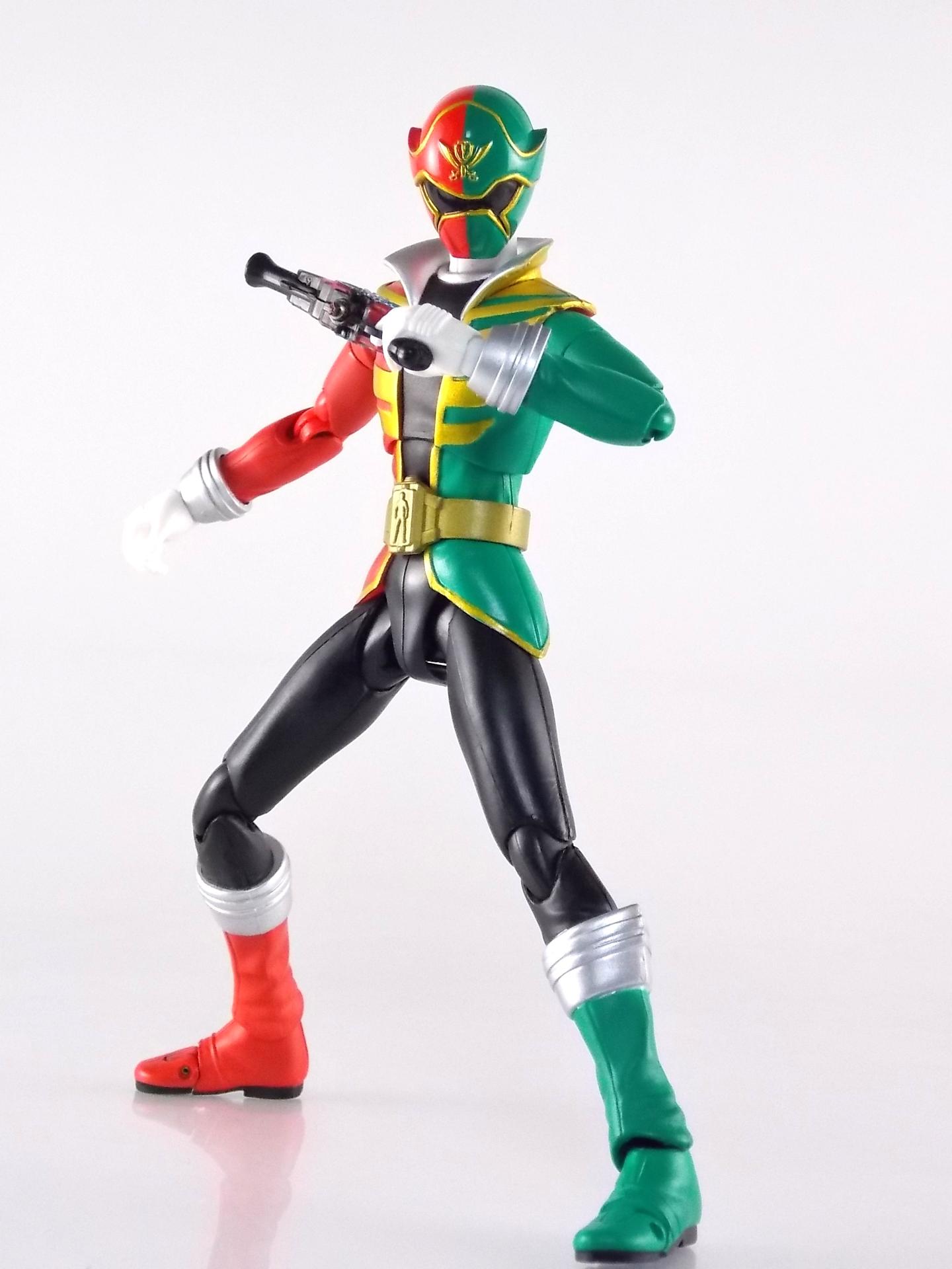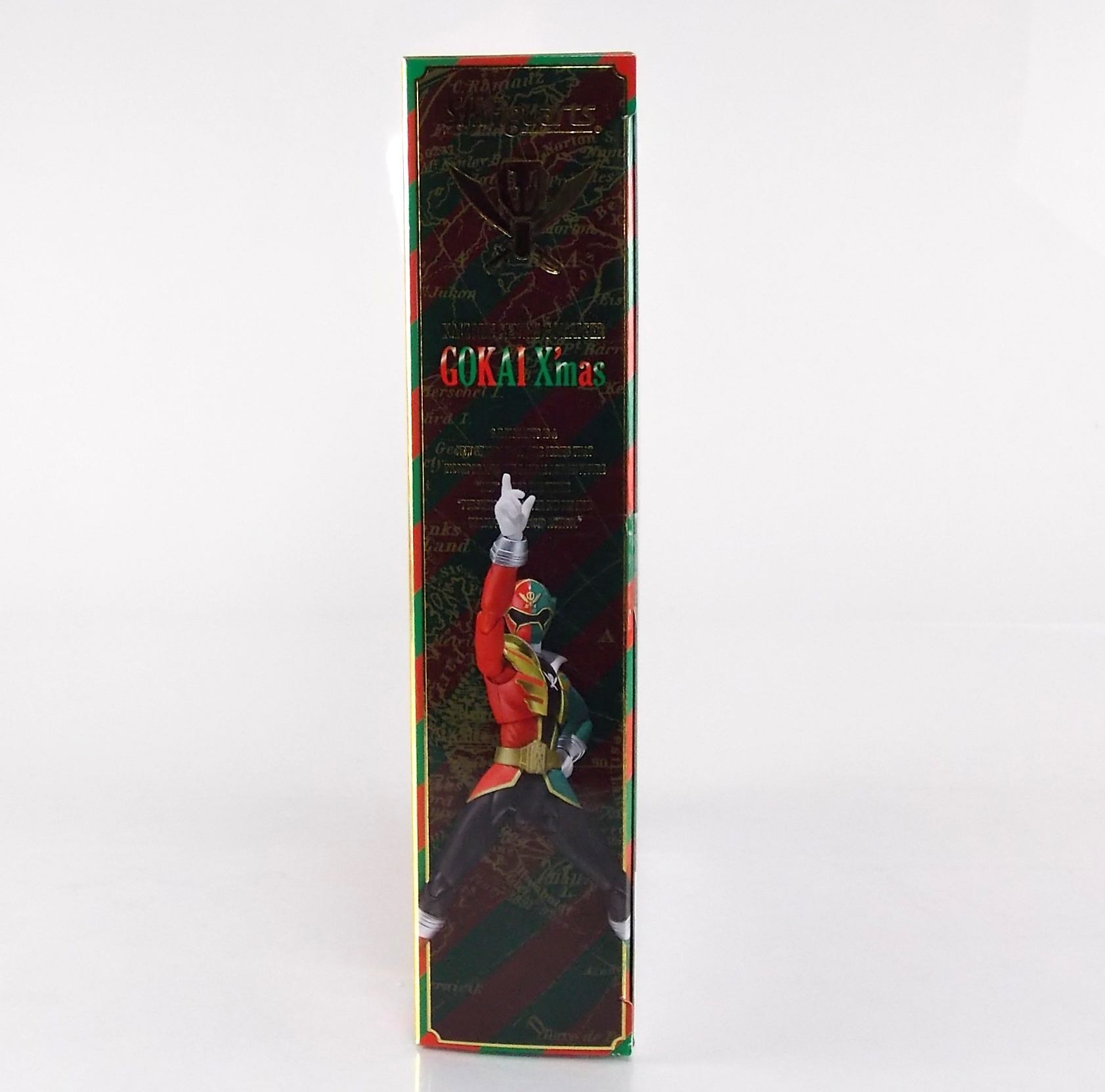 TokuNation is proud to present a special holiday gallery for you. But not just any gallery a brand new Gallery 2.0! Released 2 years ago, S.H. Figuarts Gokai Christmas is a special one off form from Kaizoku Sentai Gokaiger episode 44. While we did a brief photo gallery of the figure at the time, we never did it proper justice. But now we're introducing a 2.0 gallery of sorts, a full fledged look at this wonderful figure. Check out 55 images and the full review below! Packaging S.H. Figuarts Gokai Christmas was the first and so far only sentai Figuart to be released via Toei-Hero.net. Generally figuarts are released via this site when they can't find a home on the Tamashii Web Shop. These figures tend to be made in even smaller quantities than standard exclusives as well but they have the same stellar quality. Gokai Christmas comes in the standard Gokaiger styled boxed but with tons of new detailing, primarily some gorgeous gold foiling on the edges and text. Aside from this a striking green & red candy cane striped pattern is also featured on the outer box and the inner insert. It's really just a fantastic package that I'm a huge fan of. Main Figure S.H. Figuarts Gokai Christmas is a pretty straight forward release. Much like the actual suit used in the show this figure is a basic repaint. As a combination of Gokai Red & Gokai Green the majority of the figure is just a repaint of the basic male Gokaiger body. Aside from being two-tone there are no other real changes to the basic body. The real difference with this figure and the other male Gokaigers is the helmet. It actually is, like the rest of the body, a mash-up of Gokai Red & Green's helmets. Unlike the basic bodies though the Gokaiger helmets all had unique visors. So Gokai Christmas comes off with a wild helmet that goes from the sharper lines of Red, to the softer Green design. The helmet also features a gorgeous new gold paint app on the Gokaiger emblem. Honestly if you own the other 4 male Gokaigers there isn't anything new for this figure at a basic level. But it's a gorgeous figure and a wacky concept brought to life. Accessories Gokai Christmas, while already excellent, also includes a plethora of accessories: 4.5 - sets of additional hands. Honestly the hand selection on the Gokaiger figuarts was always excellent and Christmas continues that tradition. 4 full sets and 1 extra pointing finger give you pretty much everything you need. 1 - Gokai Gun. As has been the case with all the Gokaiger weapons in the past this thing is excellently detailed. The Cylinder on top can rotate up to simulate the use of a Ranger Key. 1 - Gokai Saber. As has been the case with all the Gokaiger weapons in the past this thing is excellently detailed. Just like the Gun the Saber has a working cylinder system as well. 2 - different replacement Gokai Cylinders. 1 to use with the Gun, 1 to use with the saber. Again to simulate the way a Ranger Key would be used with the weapon. These replacements are molded to appear to have generic ranger keys already in them. 1 - Standard Gokai Christmas Ranger Key. Surprisingly this tiny tiny Key has a nice amount of detail. Just enough black paint applied down the center to complete the split look. 1 - Flipped Gokai Christmas Ranger Key. Though the accessories included don't really allow you to use this key, it can be placed into a Mobirate from one of the other Gokaigers quite easily. Basically Gokai Christmas is the full package and includes every single accessory you need to recreate it's brief appearance. Final Thoughts Though many collector's may feel this release to be superfluous, I love it. The Gokaiger figuarts are still some of the best sentai ones as far as accessories and articulation go. S.H. Figuarts Gokai Christmas is the 7th Gokaiger in my collection and I wouldn't have it any other way. Though he's a couple years old now and a little harder to find, prices haven't gone that crazy on him. If you feel like you might want to own this figure I'd highly recommend it.