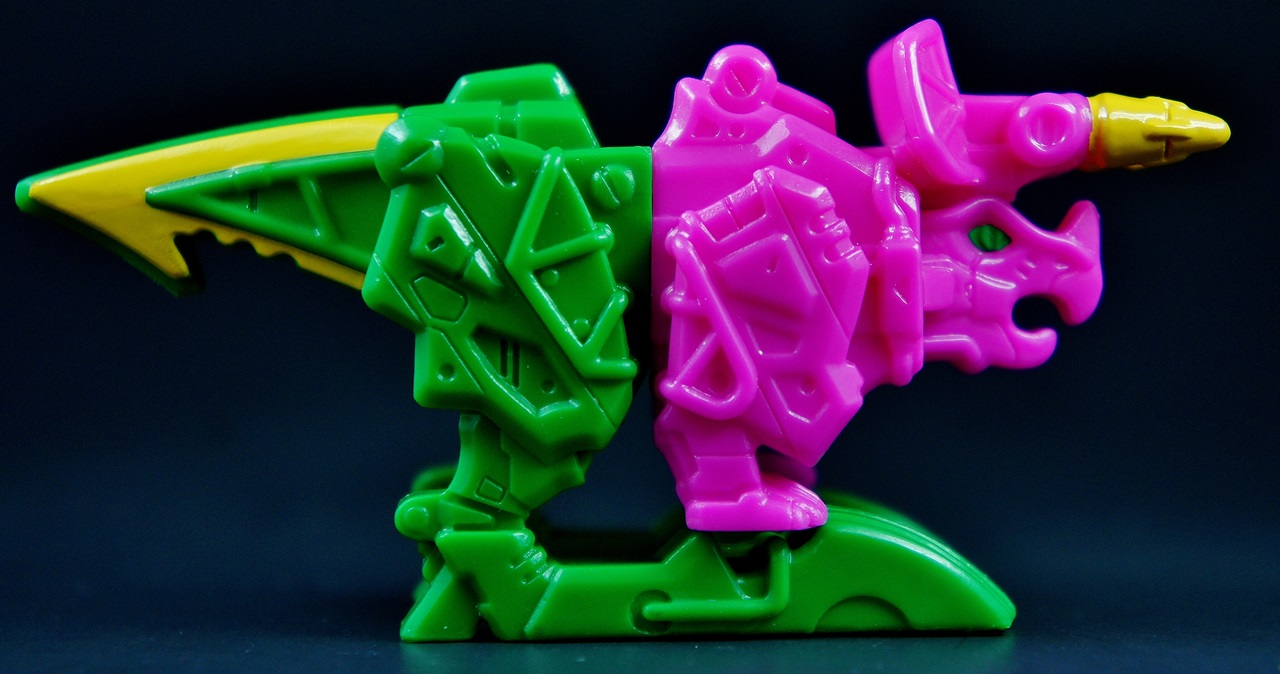 Interesting to note - in these first initial packs, we receive the core 5 chargers for the core 5 of the Power Rangers Dino Charge team. The chargers that come paired with the regular chargers are Fossil Chargers. They feature four different images - fossil, fossil charged, dinosaur, dinosaur charged. The Tyrannosaurus Rex Charger is a standard red, not half translucent like with what came with the Power Rangers Dino Charge Megazord. The other Dino Chargers all match the ones you can get by purchasing other products. The little Dino Zords that come with the Dino Chargers are cute, but are totally there to help justify buying the product (cuz $8.99 for two little plastic toy batteries is a rip off). They serve no purpose except to maybe hold your Dino Chargers, but even then you still have an extra one lying around. My assumption is that we will see more of the same in the future, including different colors of these five, as well as some retro (Mighty Morphin Power Rangers Dino Zords anyone?). The ability to mix and match them is cute but really does nothing to add to the overall experience. They feature minimal paint (eyes, one other part with minimal paint) and don't snap together super easily. Some of them barely hold the Dino Chargers, even though they are molded for them to slide in only in one particular way (the way shown in the gallery). So let's get down to the point. THE GOOD!