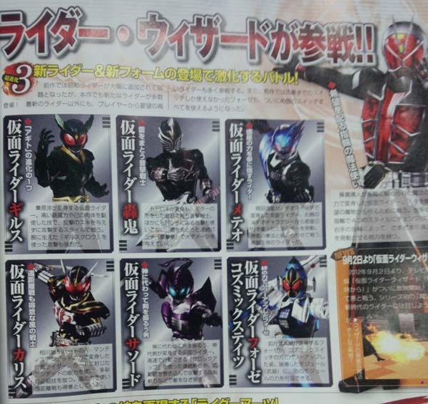 Magazine scans have confirmed that not only will next year's Kamen Rider Wizard will be playable, but also Kamen Riders Gills, Todorki, Sasword, Chalice, Meteor, and Cosmic States will be featured in the game. Other new game play features include a levelling system and aerial battles, the game will be released November 29th, no word has been announced on what consoles the game will be available for. Update: The game has been confirmed for PSP and Wii. Last edited by Kiryu; 08-28-2012 at 10:53 PM.. |