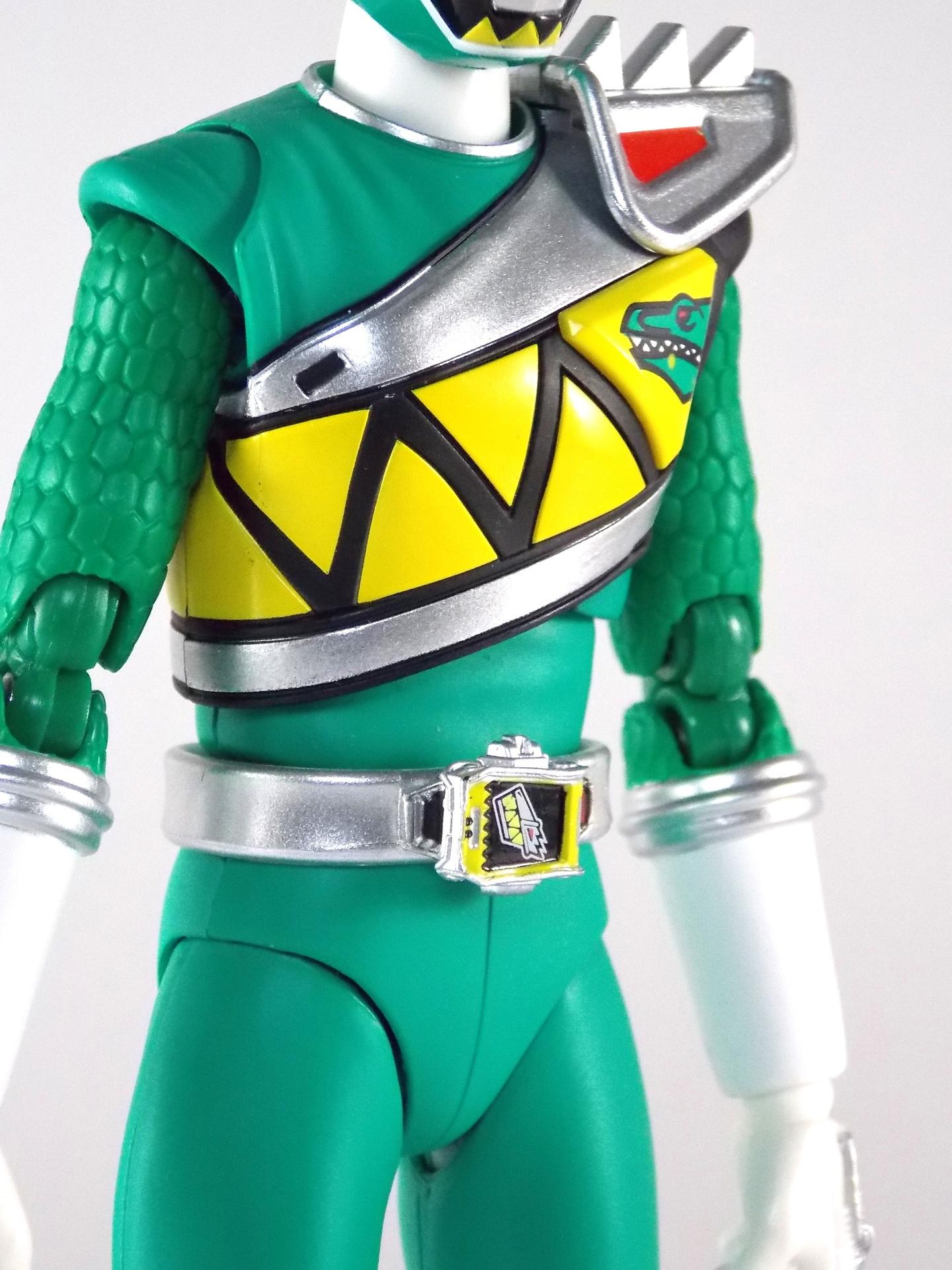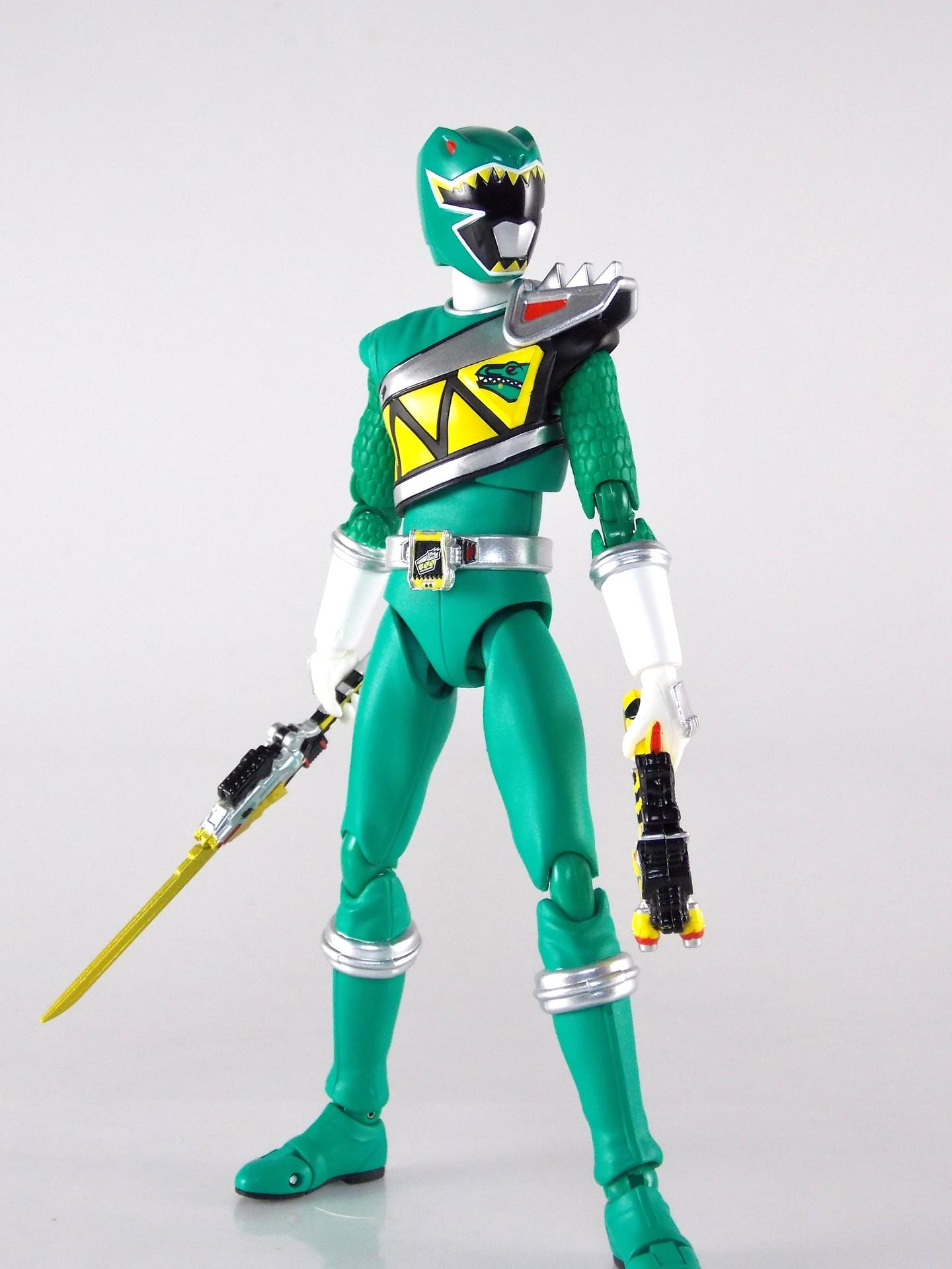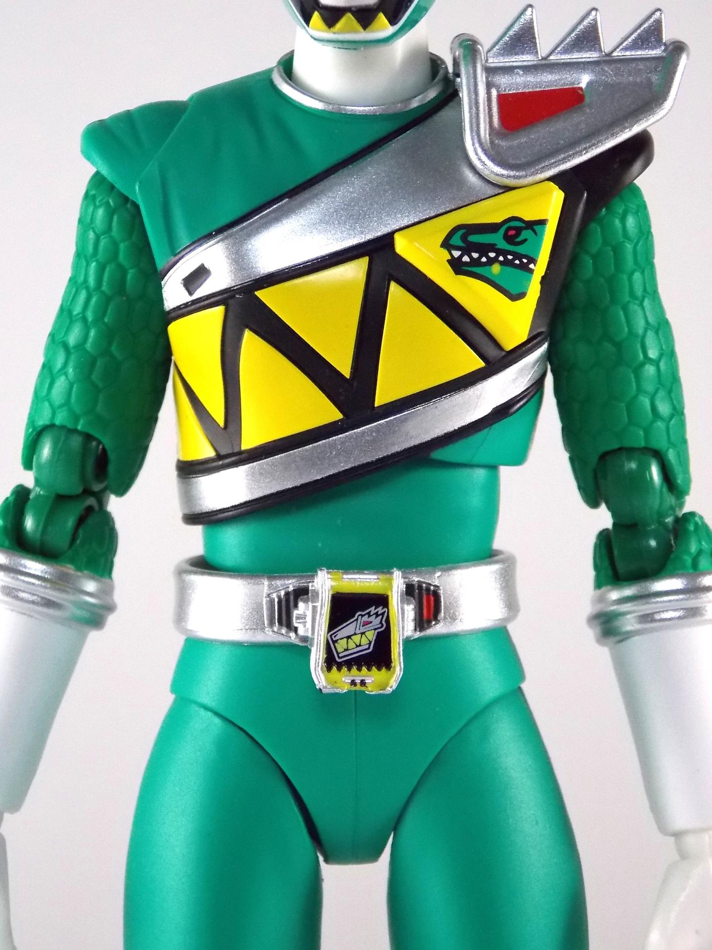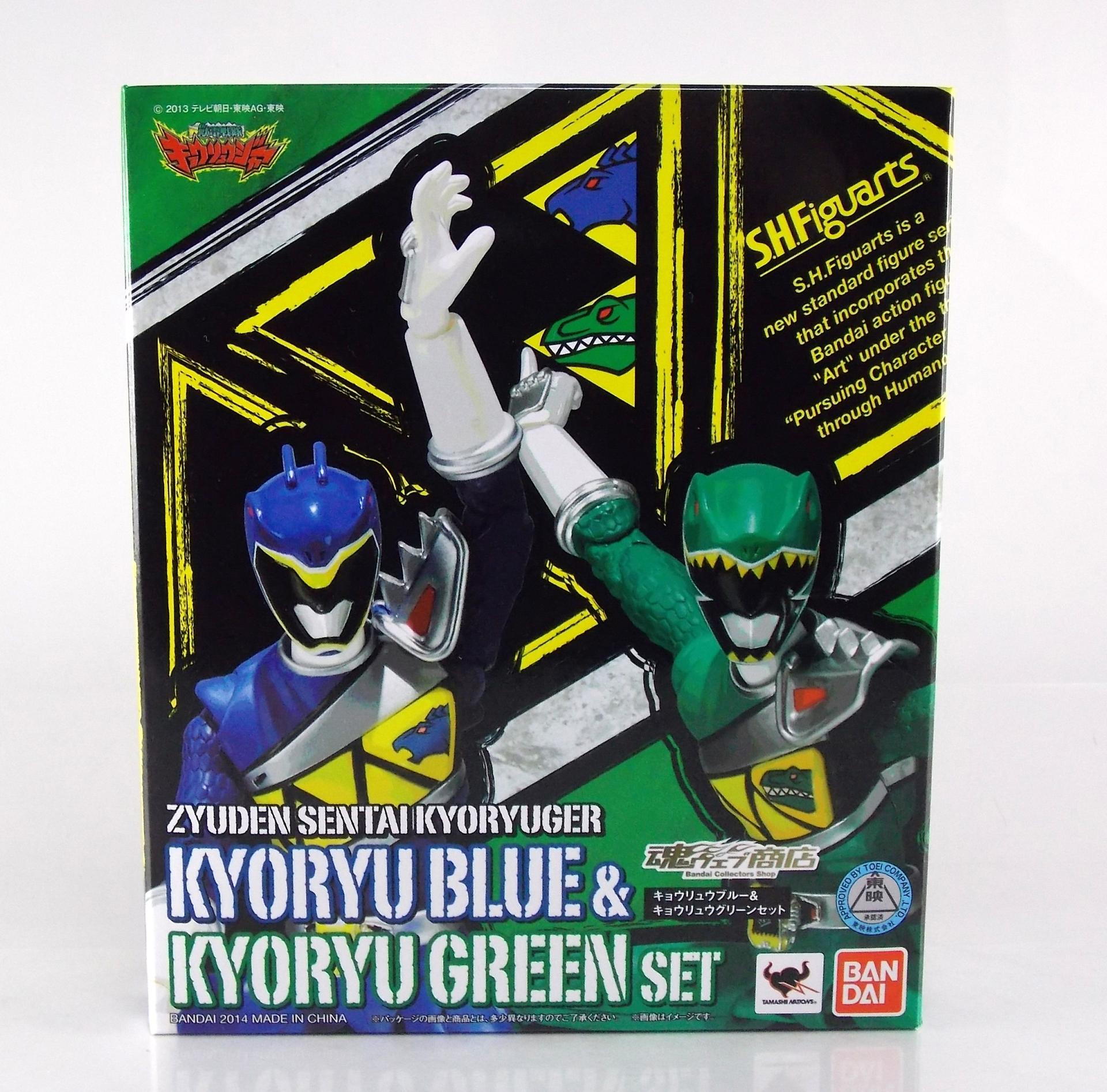 The Slashing Brave! Continuing TokuNation's Gallery 2.0 do-overs leading into Power Rangers Dino Charge we're back with another look back at Zyuden Sentai Kyoryuger! This time we're doing S.H. Figuarts Kyoryu Blue & Kyoryu Green Gallery 2.0! ** A majority of this review will be identical to my Kyoryu Red gallery & review. These figures are nigh identical to it aside from accessories. Packaging Kyoryu Blue & Green come in the same interesting box that Kyoryu Red did. Though Sentai Figuarts haven't been around nearly as longs as Rider ones, they initially started out with the same boring box design but Kyoryuger figuarts are much nicer. Though unlike Kyoryu Red, Blue & Green (as a tamashii web exclusive release) do not feature a window box. Main Figure Kyoryu Blue & Green feature the same new base body as Kyoryu Red. And wow what a nice one it is. The Kyoryuger designs are some of the more busy modern sentai suits we've had in a while, and I mean that in a good way. Luckily the busyness, in fact the more armored nature of this costume, lends itself that much more to being a toy. Where Riders Metal Heroes & the like have the advantage of armored costumes and less apparent articulation cuts, sentai costumes are basically fabric. So reproducing that in articulated toy form can be difficult. But Kyoryu Blue & Green really pull off his look quite well. The lower half of the body is simple stuff. Come up to the belt though and look at the glorious detail on the Mobuckle. It's hard to see at that scale but the Kyoryuger emblem and even the eyes on the sides of the buckle are fully painted. The Mobuckle can also rotate to the side to simulate what happens when a Zyudenchi would normally be removed from inside. At this scale though they couldn't engineer the Mobuckle to open and store them. But that's okay as the included Zyudenchi is tiny. Further up brings us to the exquisitely molded arm details. Rather than go for a fishnet style paint job on the arms to get the scaly feel of the costume, Bandai has instead sculpted the detailing into the arms themselves! Thus creating a much more polished look that works better than I ever thought it would. The chest and head though are where the figures really knock it out of the park. As I said the more armored nature of these figures lend themselves well to the toy makeover. The chest emblems, sash, shoulder, & backs are all gloriously detailed and fully painted. The Stegotchi emblem in particular looks great. However the Zakutor emblem on my Kyoryu Green has a nasty drop of paint right in the middle of it.... The heads for both are sculpted fantastically and the color matches are much better than they were on Kyoryu Red. The sculpt is a bit more dynamic on Kyoryu Blue but both he and Kyoryu Green look very solid. And as for posability, well see for yourself below. Kyoryu Blue & Green (much like Red) can assume any of their iconic poses with ease and pretty great balance as well. The shoulder armor doesn't impact articulation either thanks to the hinge on the pad. So these guys have great open ranges of movement at their disposal. Accessories Kyoryu Blue & Green also come loaded down with a basically perfect assortment of what you need. Each of them come with: 1 - Gaburevolver. The trademark weapon/henshin device of the Kyoryugers is done true justice here. You'd think at this size it would be missing paint apps but frankly it's perfect. It's just incredible how perfectly to scale this thing is painted compared to the real thing. Now the barrel doesn't spin nor can it open up on the end to accept Zyudenchi, but considering how small the Zyudenchi for these figuarts are that's fine. Once you got one in I'm sure it would never come out again. 1 - Generic Zyudenchi. Though by association these should be Stegotchi's & Zakutor's Zyudenchi respectively, they simply aren't painted correctly. Though to be fair none of the 6 Kyoryuger Figuarts have Zyudenchi with entirely accurate colors. But that's mostly because at this scale it's nigh impossible to paint properly. So some general colors are slapped on so you get a feel for it. Again this thing is infinitesimally small and I won't use it for anything again ever. I'm fine with it being kind of generic. 1 - Gaburicalibur. Again this is a wonderfully detailed piece. Right down to the most minor details this is a perfect recreation of the show prop. Again it does not open or accept batteries and I'm totally okay with that. What I'm not okay with however is that the Gaburevolver & Gaburicalibu do not combine into the Gaburicannon. Nor is a separately molded version of it included with any figuart. If a Kyoryu Violet is ever made it would almost certainly come with him/her as it was used quite often by the second (female) Violet. 4 - sets of additional hands. For your general needs. You get one set of Revolver hands, one set of Calibur hands, and one set of splayed out roll call pose hands. 1 - Armed On Arm. A great inclusion here is the option to display either of your figures in their Armed On forms! To use these you need to (pretty forcefully) yank out the right arms at the shoulder socket. Then plug the new one on. I've found this to be infuriatingly difficult to do with. Most of the time I can get them more or less on but can't always get that last "click" to lock them into place. But when you do, and then the arm stays up properly, the look is very satisfying. Then there are some unique accessories for each figure: 1 - Stego Shield. A complimentary piece to the Armed On Arm, the Stego Shield is Kyoryu Blue's Armed On weapon. Another beautifully, almost cartoonishly, sculpted piece that looks like it walked right off the set. While this Shield can't combine with the other Kyoyuger weapons into the Kentrospiker, a version of the Stego Shield is included in the S.H. Figuarts Kyoryu Black & Pink Set. That one comes already combined as the Shield Lanslasher combo. So thankfully you have the option to have both a comple