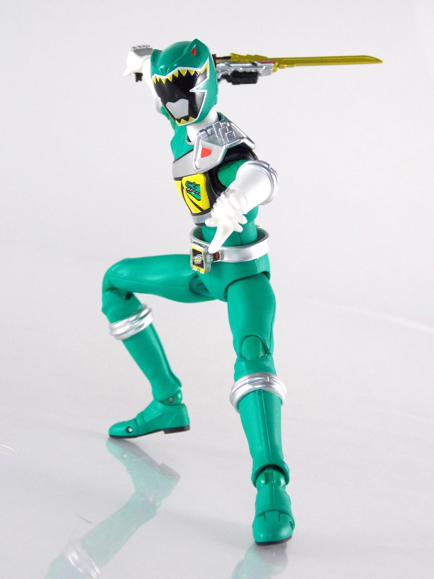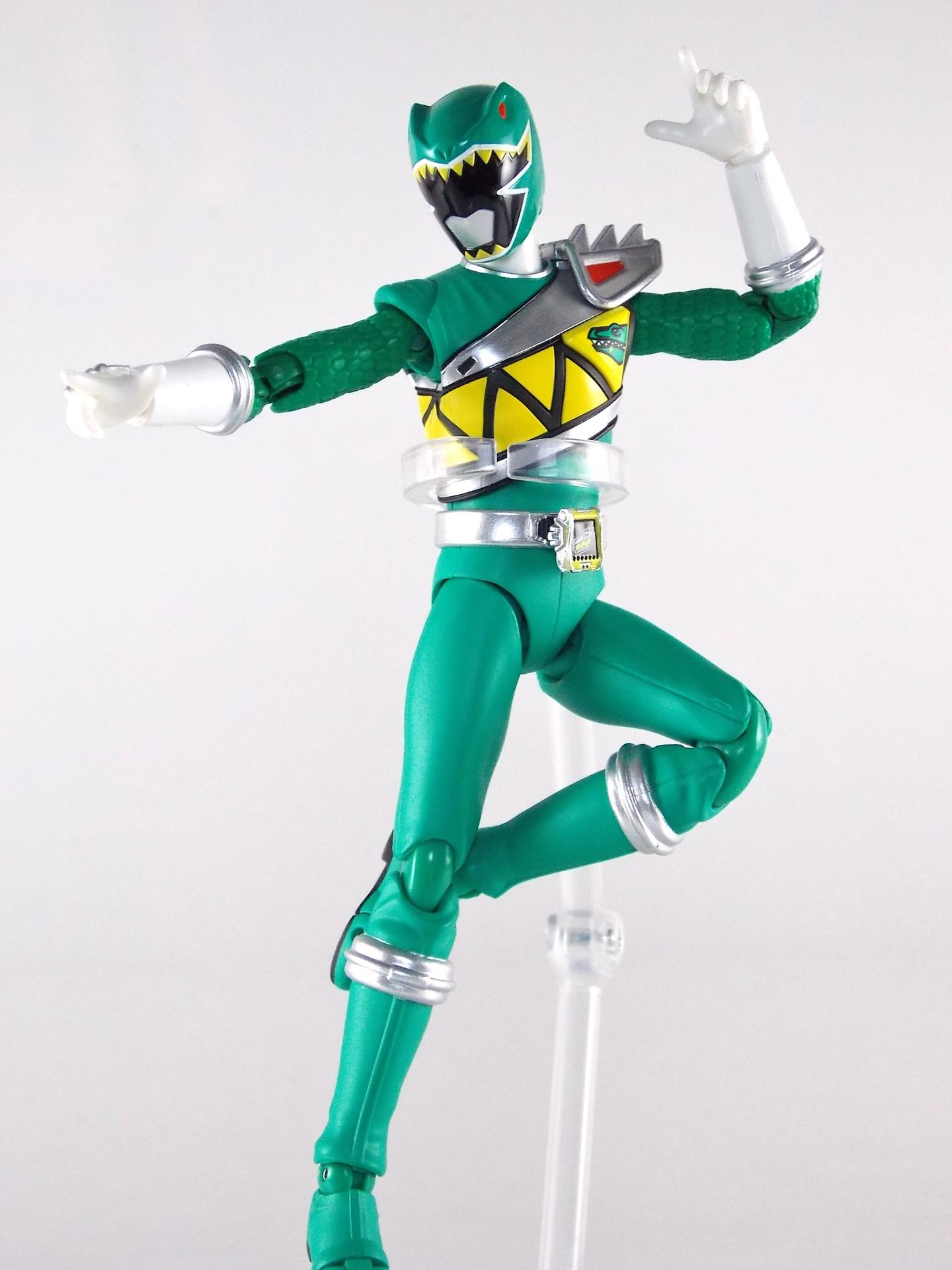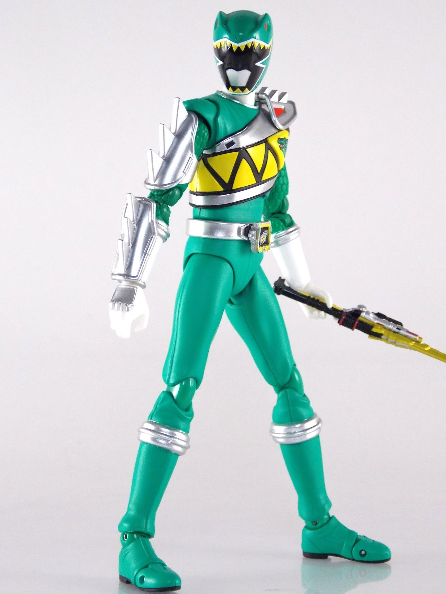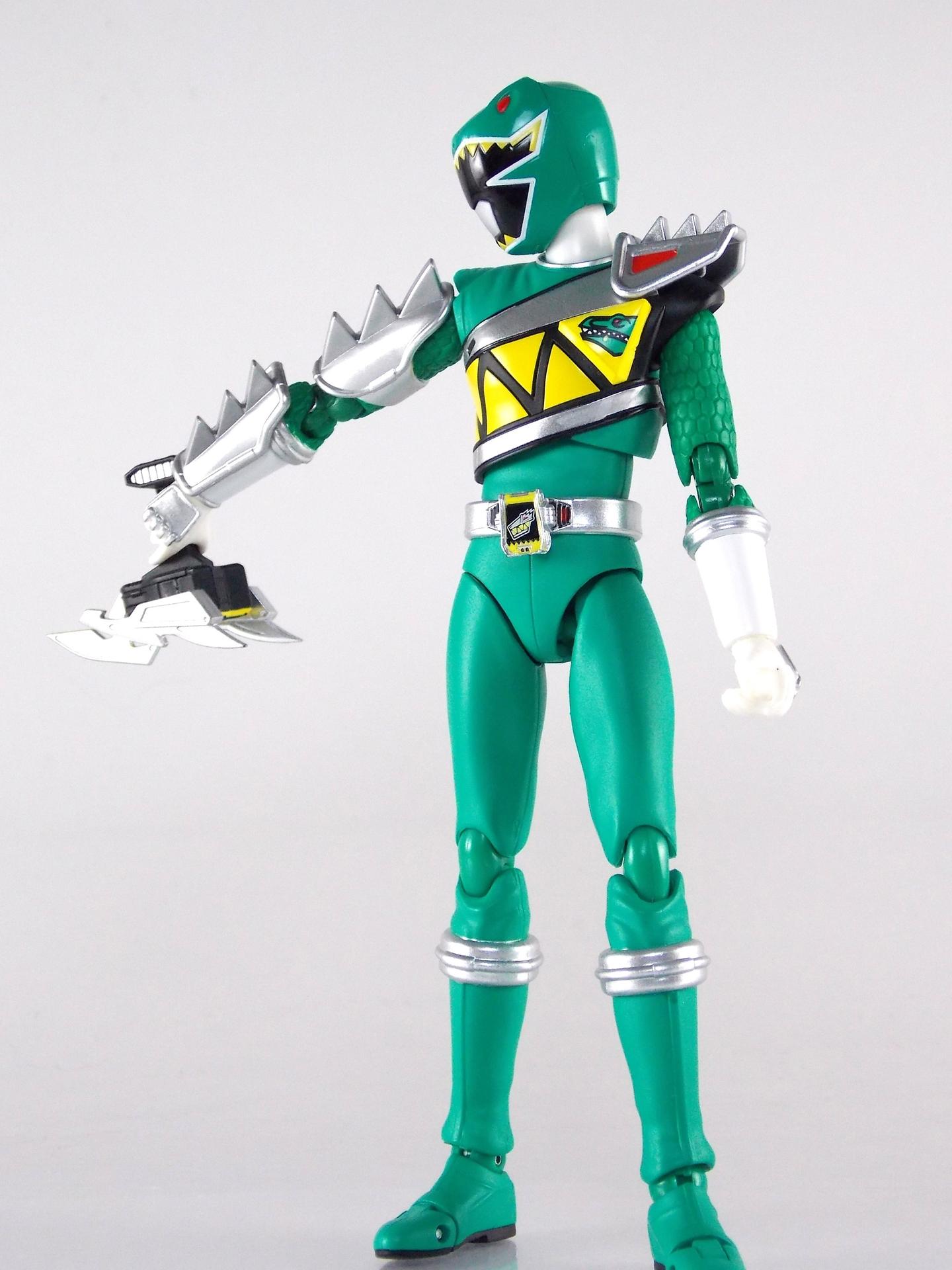 The Slashing Brave! Continuing TokuNation's Gallery 2.0 do-overs leading into Power Rangers Dino Charge we're back with another look back at Zyuden Sentai Kyoryuger! This time we're doing S.H. Figuarts Kyoryu Blue & Kyoryu Green Gallery 2.0! ** A majority of this review will be identical to my Kyoryu Red gallery & review. These figures are nigh identical to it aside from accessories. Packaging Kyoryu Blue & Green come in the same interesting box that Kyoryu Red did. Though Sentai Figuarts haven't been around nearly as longs as Rider ones, they initially started out with the same boring box design but Kyoryuger figuarts are much nicer. Though unlike Kyoryu Red, Blue & Green (as a tamashii web exclusive release) do not feature a window box. Main Figure Kyoryu Blue & Green feature the same new base body as Kyoryu Red. And wow what a nice one it is. The Kyoryuger designs are some of the more busy modern sentai suits we've had in a while, and I mean that in a good way. Luckily the busyness, in fact the more armored nature of this costume, lends itself that much more to being a toy. Where Riders Metal Heroes & the like have the advantage of armored costumes and less apparent articulation cuts, sentai costumes are basically fabric. So reproducing that in articulated toy form can be difficult. But Kyoryu Blue & Green really pull off his look quite well. The lower half of the body is simple stuff. Come up to the belt though and look at the glorious detail on the Mobuckle. It's hard to see at that scale but the Kyoryuger emblem and even the eyes on the sides of the buckle are fully painted. The Mobuckle can also rotate to the side to simulate what happens when a Zyudenchi would normally be removed from inside. At this scale though they couldn't engineer the Mobuckle to open and store them. But that's okay as the included Zyudenchi is tiny. Further up brings us to the exquisitely molded arm details. Rather than go for a fishnet style paint job on the arms to get the scaly feel of the costume, Bandai has instead sculpted the detailing into the arms themselves! Thus creating a much more polished look that works better than I ever thought it would. The chest and head though are where the figures really knock it out of the park. As I said the more armored nature of these figures lend themselves well to the toy makeover. The chest emblems, sash, shoulder, & backs are all gloriously detailed and fully painted. The Stegotchi emblem in particular looks great. However the Zakutor emblem on my Kyoryu Green has a nasty drop of paint right in the middle of it.... The heads for both are sculpted fantastically and the color matches are much better than they were on Kyoryu Red. The sculpt is a bit more dynamic on Kyoryu Blue but both he and Kyoryu Green look very solid. And as for posability, well see for yourself below. Kyoryu Blue & Green (much like Red) can assume any of their iconic poses with ease and pretty great balance as well. The shoulder armor doesn't impact articulation either thanks to the hinge on the pad. So these guys have great open ranges of movement at their disposal. Accessories Kyoryu Blue & Green also come loaded down with a basically perfect assortment of what you need. Each of them come with: 1 - Gaburevolver. The trademark weapon/henshin device of the Kyoryugers is done true justice here. You'd think at this size it would be missing paint apps but frankly it's perfect. It's just incredible how perfectly to scale this thing is painted compared to the real thing. Now the barrel doesn't spin nor can it open up on the end to accept Zyudenchi, but considering how small the Zyudenchi for these figuarts are that's fine. Once you got one in I'm sure it would never come out again. 1 - Generic Zyudenchi. Though by association these should be Stegotchi's & Zakutor's Zyudenchi respectively, they simply aren't painted correctly. Though to be fair none of the 6 Kyoryuger Figuarts have Zyudenchi with entirely accurate colors. But that's mostly because at this scale it's nigh impossible to paint properly. So some general colors are slapped on so you get a feel for it. Again this thing is infinitesimally small and I won't use it for anything again ever. I'm fine with it being kind of generic. 1 - Gaburicalibur. Again this is a wonderfully detailed piece. Right down to the most minor details this is a perfect recreation of the show prop. Again it does not open or accept batteries and I'm totally okay with that. What I'm not okay with however is that the Gaburevolver & Gaburicalibu do not combine into the Gaburicannon. Nor is a separately molded version of it included with any figuart. If a Kyoryu Violet is ever made it would almost certainly come with him/her as it was used quite often by the second (female) Violet. 4 - sets of additional hands. For your general needs. You get one set of Revolver hands, one set of Calibur hands, and one set of splayed out roll call pose hands. 1 - Armed On Arm. A great inclusion here is the option to display either of your figures in their Armed On forms! To use these you need to (pretty forcefully) yank out the right arms at the shoulder socket. Then plug the new one on. I've found this to be infuriatingly difficult to do with. Most of the time I can get them more or less on but can't always get that last "click" to lock them into place. But when you do, and then the arm stays up properly, the look is very satisfying. Then there are some unique accessories for each figure: 1 - Stego Shield. A complimentary piece to the Armed On Arm, the Stego Shield is Kyoryu Blue's Armed On weapon. Another beautifully, almost cartoonishly, sculpted piece that looks like it walked right off the set. While this Shield can't combine with the other Kyoyuger weapons into the Kentrospiker, a version of the Stego Shield is included in the S.H. Figuarts Kyoryu Black & Pink Set. That one comes already combined as the Shield Lanslasher combo. So thankfully you have the option to have both a comple