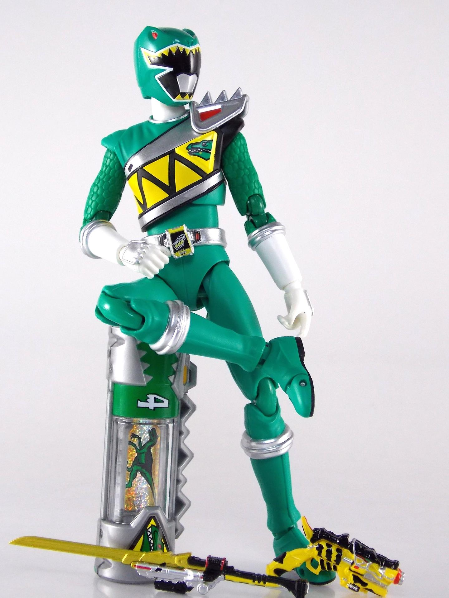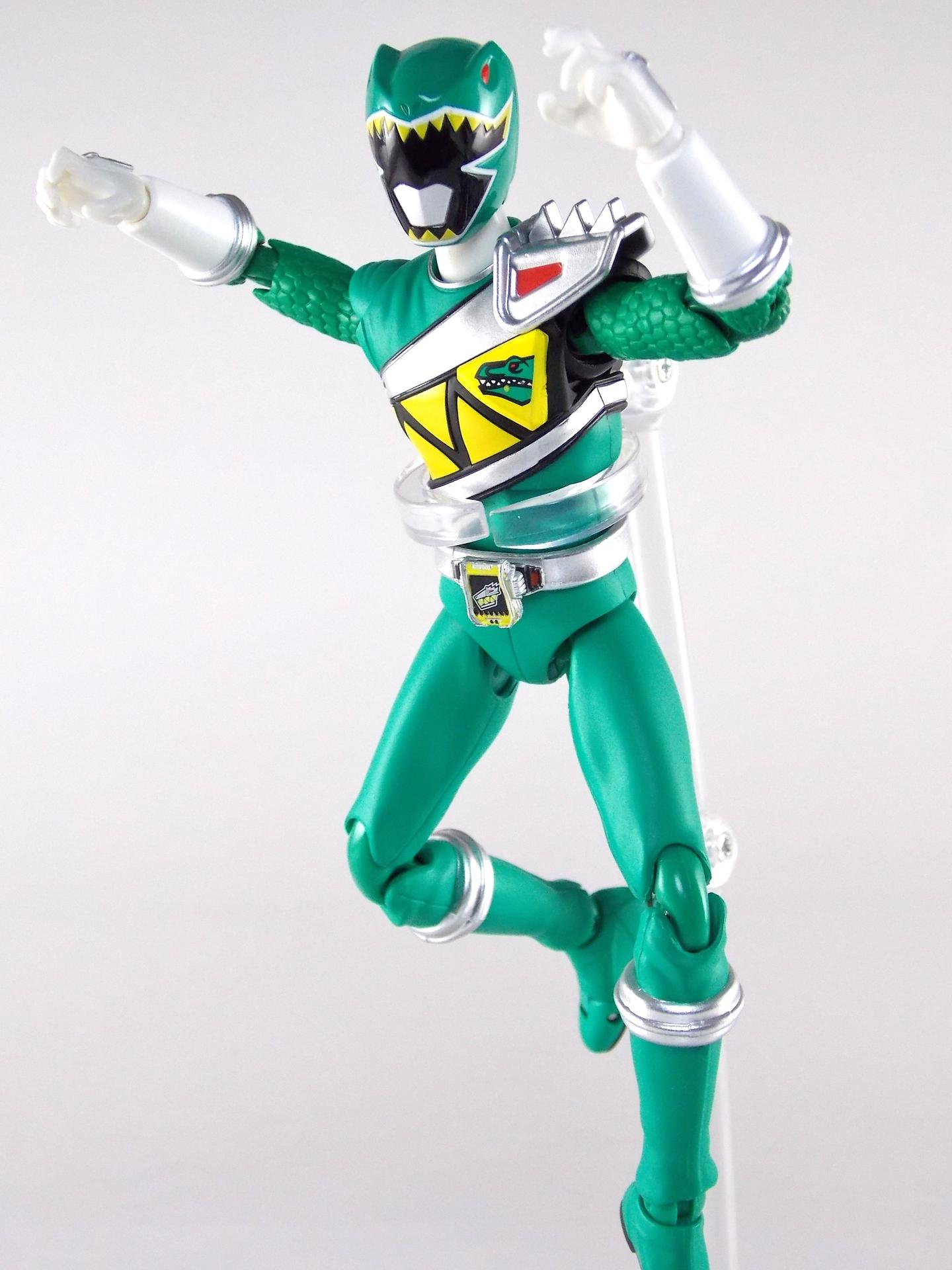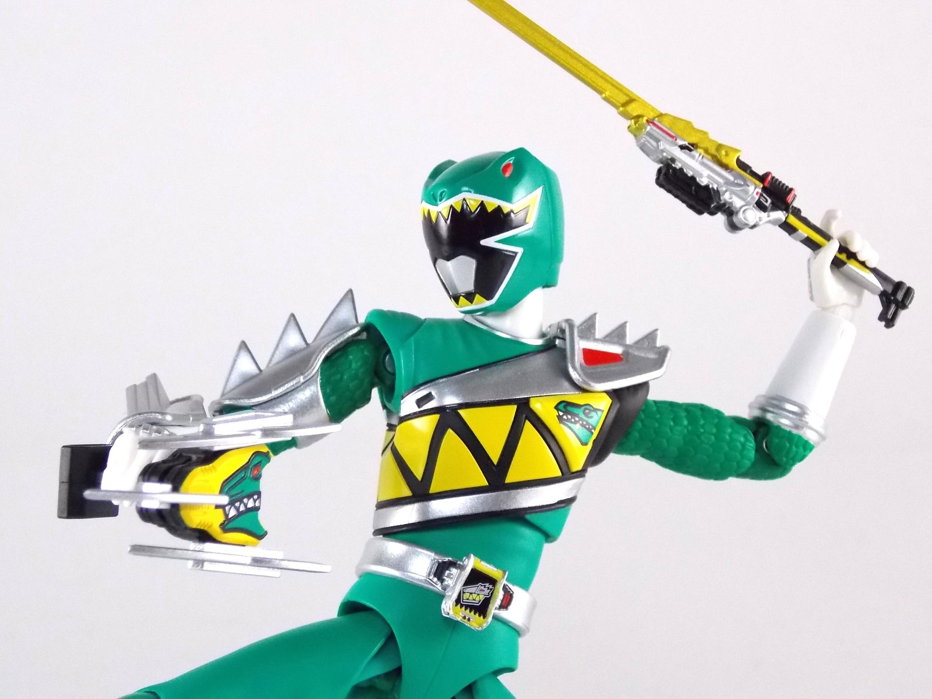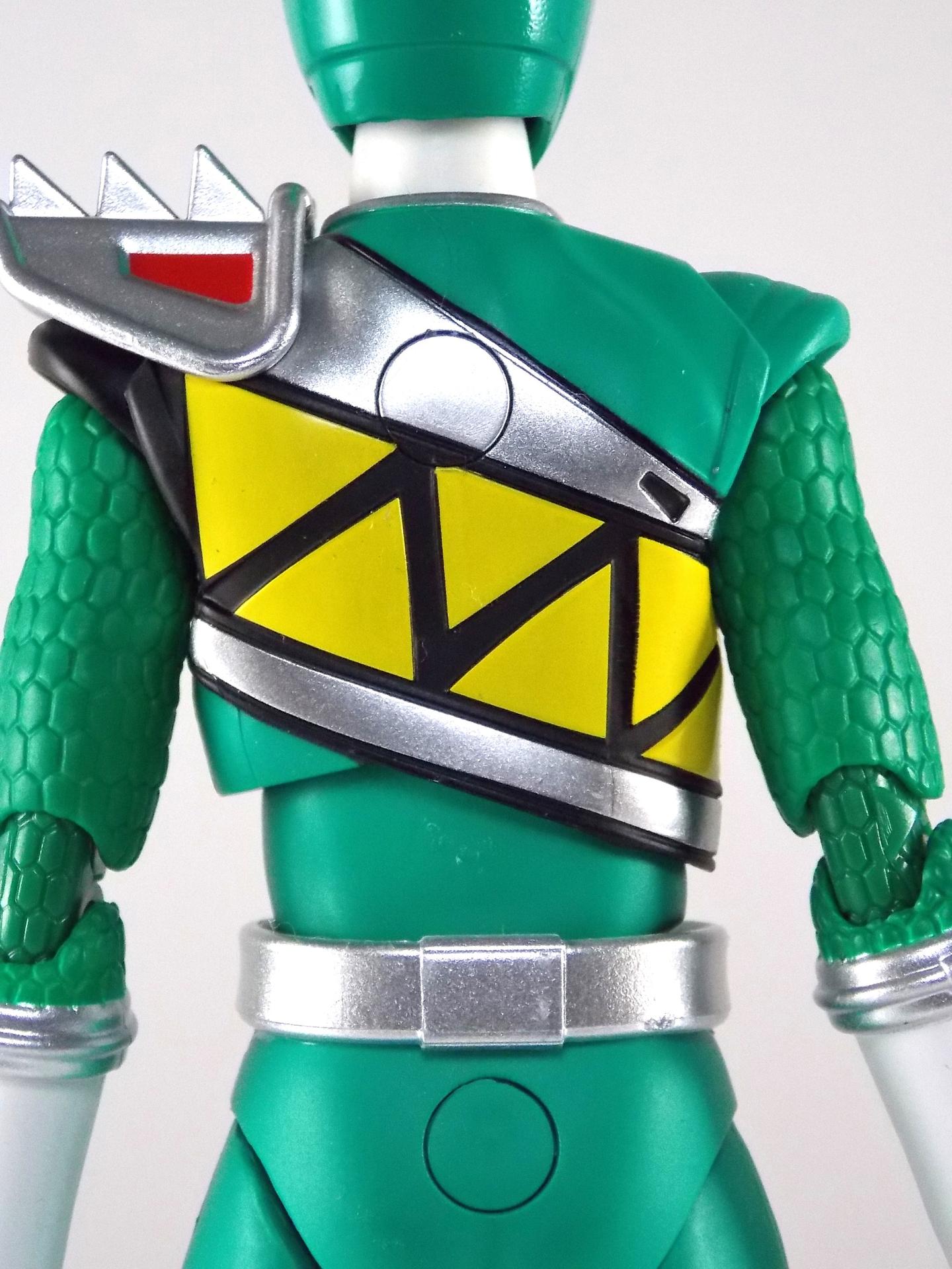 The Slashing Brave! Continuing TokuNation's Gallery 2.0 do-overs leading into Power Rangers Dino Charge we're back with another look back at Zyuden Sentai Kyoryuger! This time we're doing S.H. Figuarts Kyoryu Blue & Kyoryu Green Gallery 2.0! ** A majority of this review will be identical to my Kyoryu Red gallery & review. These figures are nigh identical to it aside from accessories. Packaging Kyoryu Blue & Green come in the same interesting box that Kyoryu Red did. Though Sentai Figuarts haven't been around nearly as longs as Rider ones, they initially started out with the same boring box design but Kyoryuger figuarts are much nicer. Though unlike Kyoryu Red, Blue & Green (as a tamashii web exclusive release) do not feature a window box. Main Figure Kyoryu Blue & Green feature the same new base body as Kyoryu Red. And wow what a nice one it is. The Kyoryuger designs are some of the more busy modern sentai suits we've had in a while, and I mean that in a good way. Luckily the busyness, in fact the more armored nature of this costume, lends itself that much more to being a toy. Where Riders Metal Heroes & the like have the advantage of armored costumes and less apparent articulation cuts, sentai costumes are basically fabric. So reproducing that in articulated toy form can be difficult. But Kyoryu Blue & Green really pull off his look quite well. The lower half of the body is simple stuff. Come up to the belt though and look at the glorious detail on the Mobuckle. It's hard to see at that scale but the Kyoryuger emblem and even the eyes on the sides of the buckle are fully painted. The Mobuckle can also rotate to the side to simulate what happens when a Zyudenchi would normally be removed from inside. At this scale though they couldn't engineer the Mobuckle to open and store them. But that's okay as the included Zyudenchi is tiny. Further up brings us to the exquisitely molded arm details. Rather than go for a fishnet style paint job on the arms to get the scaly feel of the costume, Bandai has instead sculpted the detailing into the arms themselves! Thus creating a much more polished look that works better than I ever thought it would. The chest and head though are where the figures really knock it out of the park. As I said the more armored nature of these figures lend themselves well to the toy makeover. The chest emblems, sash, shoulder, & backs are all gloriously detailed and fully painted. The Stegotchi emblem in particular looks great. However the Zakutor emblem on my Kyoryu Green has a nasty drop of paint right in the middle of it.... The heads for both are sculpted fantastically and the color matches are much better than they were on Kyoryu Red. The sculpt is a bit more dynamic on Kyoryu Blue but both he and Kyoryu Green look very solid. And as for posability, well see for yourself below. Kyoryu Blue & Green (much like Red) can assume any of their iconic poses with ease and pretty great balance as well. The shoulder armor doesn't impact articulation either thanks to the hinge on the pad. So these guys have great open ranges of movement at their disposal. Accessories Kyoryu Blue & Green also come loaded down with a basically perfect assortment of what you need. Each of them come with: 1 - Gaburevolver. The trademark weapon/henshin device of the Kyoryugers is done true justice here. You'd think at this size it would be missing paint apps but frankly it's perfect. It's just incredible how perfectly to scale this thing is painted compared to the real thing. Now the barrel doesn't spin nor can it open up on the end to accept Zyudenchi, but considering how small the Zyudenchi for these figuarts are that's fine. Once you got one in I'm sure it would never come out again. 1 - Generic Zyudenchi. Though by association these should be Stegotchi's & Zakutor's Zyudenchi respectively, they simply aren't painted correctly. Though to be fair none of the 6 Kyoryuger Figuarts have Zyudenchi with entirely accurate colors. But that's mostly because at this scale it's nigh impossible to paint properly. So some general colors are slapped on so you get a feel for it. Again this thing is infinitesimally small and I won't use it for anything again ever. I'm fine with it being kind of generic. 1 - Gaburicalibur. Again this is a wonderfully detailed piece. Right down to the most minor details this is a perfect recreation of the show prop. Again it does not open or accept batteries and I'm totally okay with that. What I'm not okay with however is that the Gaburevolver & Gaburicalibu do not combine into the Gaburicannon. Nor is a separately molded version of it included with any figuart. If a Kyoryu Violet is ever made it would almost certainly come with him/her as it was used quite often by the second (female) Violet. 4 - sets of additional hands. For your general needs. You get one set of Revolver hands, one set of Calibur hands, and one set of splayed out roll call pose hands. 1 - Armed On Arm. A great inclusion here is the option to display either of your figures in their Armed On forms! To use these you need to (pretty forcefully) yank out the right arms at the shoulder socket. Then plug the new one on. I've found this to be infuriatingly difficult to do with. Most of the time I can get them more or less on but can't always get that last "click" to lock them into place. But when you do, and then the arm stays up properly, the look is very satisfying. Then there are some unique accessories for each figure: 1 - Stego Shield. A complimentary piece to the Armed On Arm, the Stego Shield is Kyoryu Blue's Armed On weapon. Another beautifully, almost cartoonishly, sculpted piece that looks like it walked right off the set. While this Shield can't combine with the other Kyoyuger weapons into the Kentrospiker, a version of the Stego Shield is included in the S.H. Figuarts Kyoryu Black & Pink Set. That one comes already combined as the Shield Lanslasher combo. So thankfully you have the option to have both a comple
