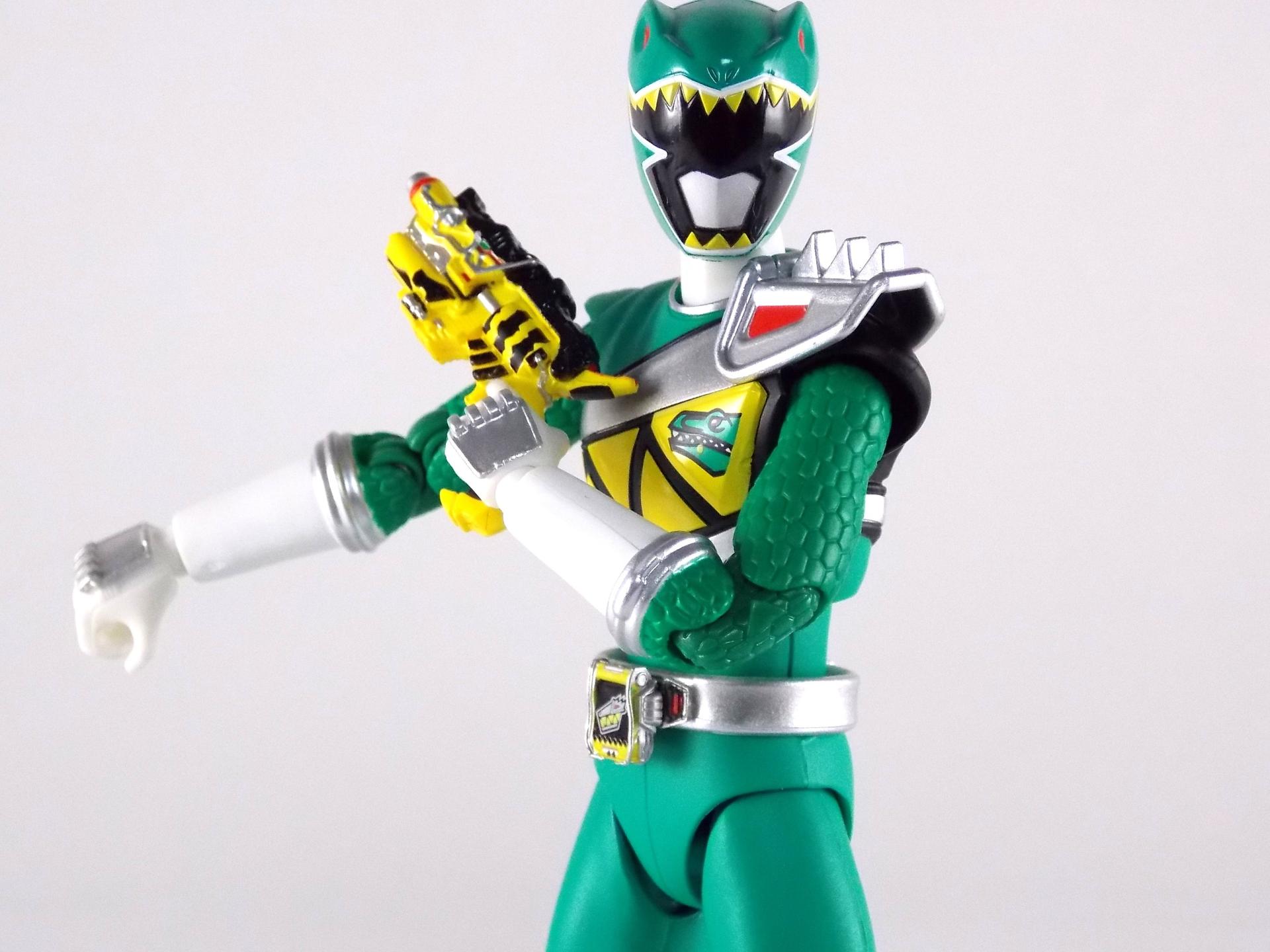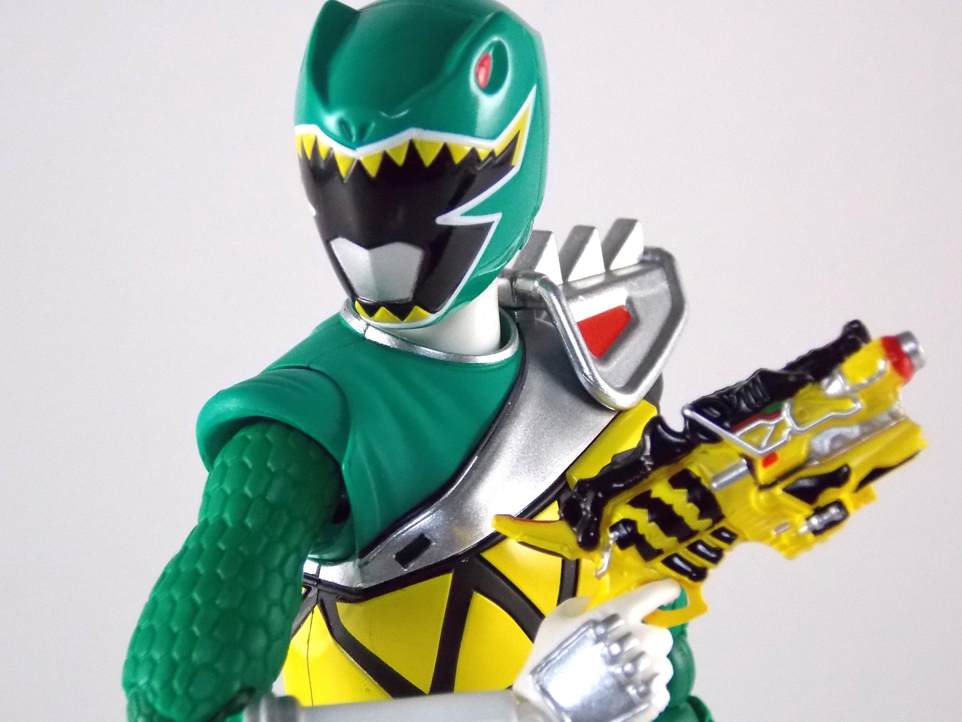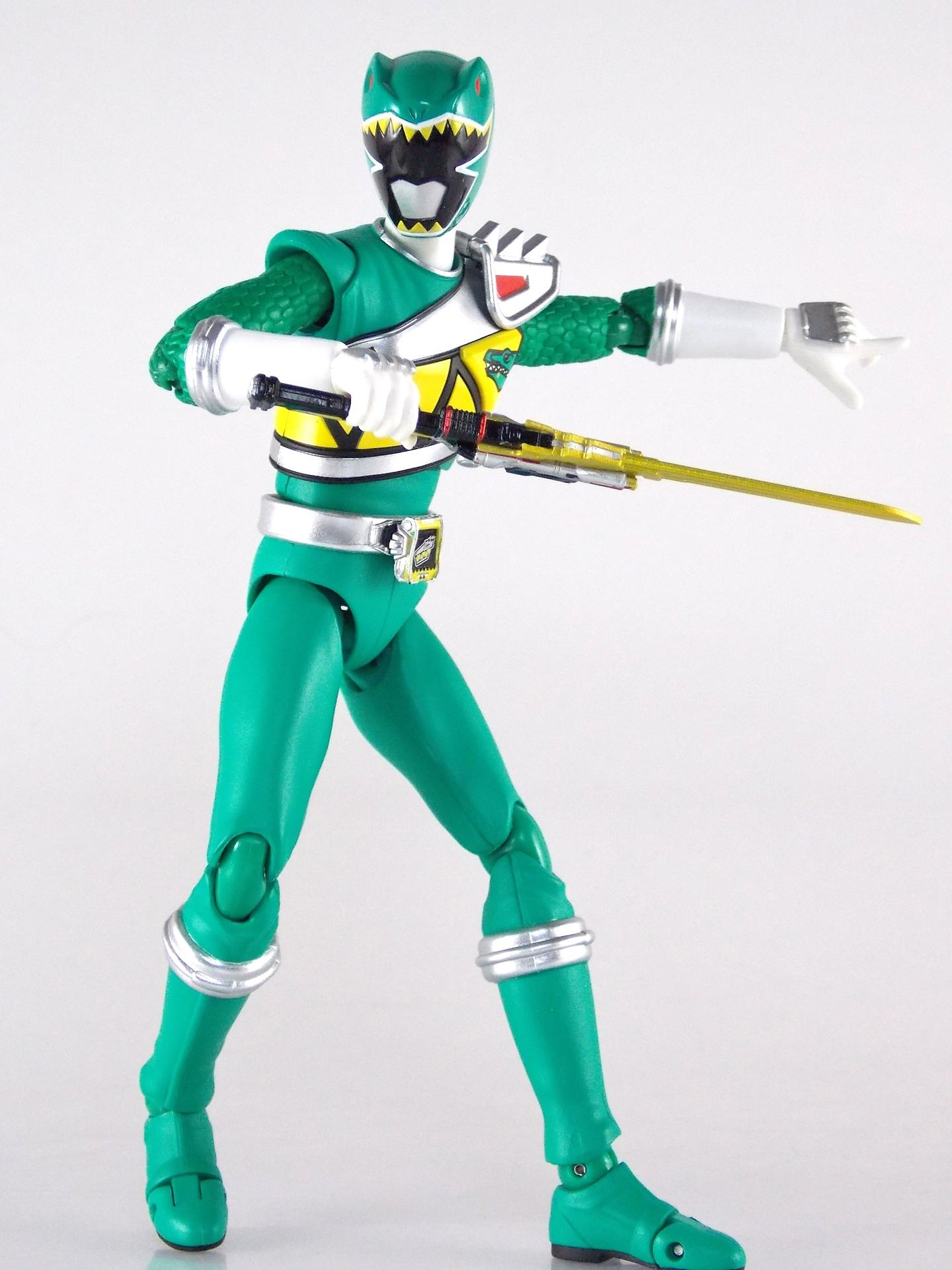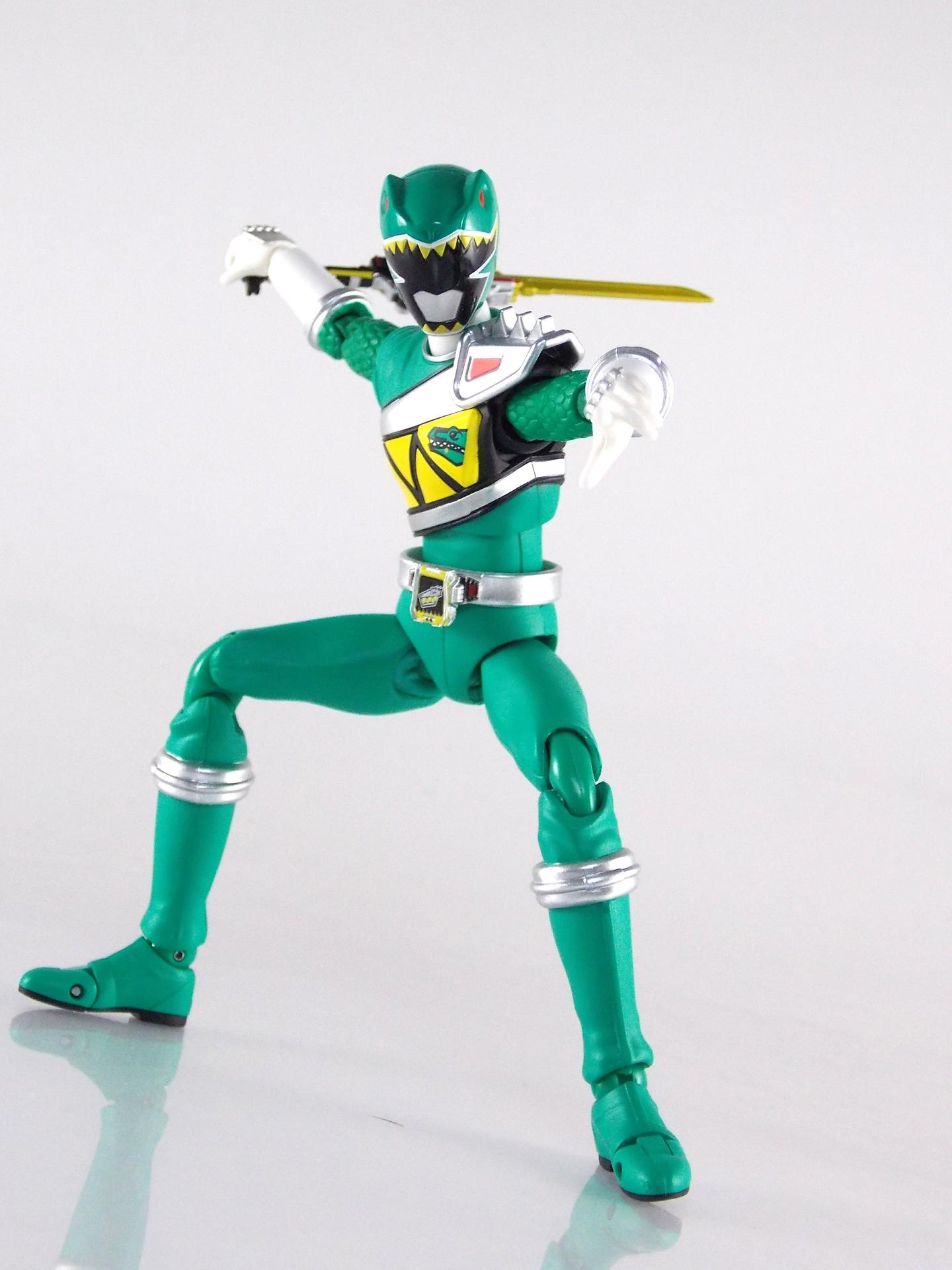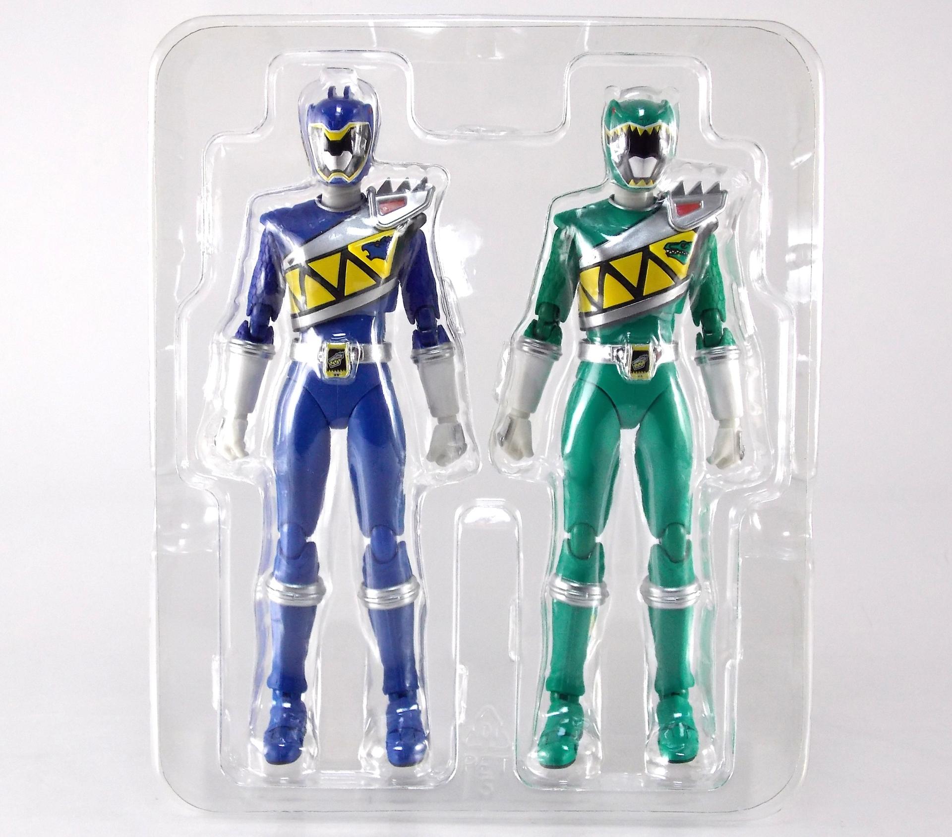The Slashing Brave! Continuing TokuNation's Gallery 2.0 do-overs leading into Power Rangers Dino Charge we're back with another look back at Zyuden Sentai Kyoryuger! This time we're doing S.H. Figuarts Kyoryu Blue & Kyoryu Green Gallery 2.0! ** A majority of this review will be identical to my Kyoryu Red gallery & review. These figures are nigh identical to it aside from accessories. Packaging Kyoryu Blue & Green come in the same interesting box that Kyoryu Red did. Though Sentai Figuarts haven't been around nearly as longs as Rider ones, they initially started out with the same boring box design but Kyoryuger figuarts are much nicer. Though unlike Kyoryu Red, Blue & Green (as a tamashii web exclusive release) do not feature a window box. Main Figure Kyoryu Blue & Green feature the same new base body as Kyoryu Red. And wow what a nice one it is. The Kyoryuger designs are some of the more busy modern sentai suits we've had in a while, and I mean that in a good way. Luckily the busyness, in fact the more armored nature of this costume, lends itself that much more to being a toy. Where Riders Metal Heroes & the like have the advantage of armored costumes and less apparent articulation cuts, sentai costumes are basically fabric. So reproducing that in articulated toy form can be difficult. But Kyoryu Blue & Green really pull off his look quite well. The lower half of the body is simple stuff. Come up to the belt though and look at the glorious detail on the Mobuckle. It's hard to see at that scale but the Kyoryuger emblem and even the eyes on the sides of the buckle are fully painted. The Mobuckle can also rotate to the side to simulate what happens when a Zyudenchi would normally be removed from inside. At this scale though they couldn't engineer the Mobuckle to open and store them. But that's okay as the included Zyudenchi is tiny. Further up brings us to the exquisitely molded arm details. Rather than go for a fishnet style paint job on the arms to get the scaly feel of the costume, Bandai has instead sculpted the detailing into the arms themselves! Thus creating a much more polished look that works better than I ever thought it would. The chest and head though are where the figures really knock it out of the park. As I said the more armored nature of these figures lend themselves well to the toy makeover. The chest emblems, sash, shoulder, & backs are all gloriously detailed and fully painted. The Stegotchi emblem in particular looks great. However the Zakutor emblem on my Kyoryu Green has a nasty drop of paint right in the middle of it.... The heads for both are sculpted fantastically and the color matches are much better than they were on Kyoryu Red. The sculpt is a bit more dynamic on Kyoryu Blue but both he and Kyoryu Green look very solid. And as for posability, well see for yourself below. Kyoryu Blue & Green (much like Red) can assume any of their iconic poses with ease and pretty great balance as well. The shoulder armor doesn't impact articulation either thanks to the hinge on the pad. So these guys have great open ranges of movement at their disposal. Accessories Kyoryu Blue & Green also come loaded down with a basically perfect assortment of what you need. Each of them come with: 1 - Gaburevolver. The trademark weapon/henshin device of the Kyoryugers is done true justice here. You'd think at this size it would be missing paint apps but frankly it's perfect. It's just incredible how perfectly to scale this thing is painted compared to the real thing. Now the barrel doesn't spin nor can it open up on the end to accept Zyudenchi, but considering how small the Zyudenchi for these figuarts are that's fine. Once you got one in I'm sure it would never come out again. 1 - Generic Zyudenchi. Though by association these should be Stegotchi's & Zakutor's Zyudenchi respectively, they simply aren't painted correctly. Though to be fair none of the 6 Kyoryuger Figuarts have Zyudenchi with entirely accurate colors. But that's mostly because at this scale it's nigh impossible to paint properly. So some general colors are slapped on so you get a feel for it. Again this thing is infinitesimally small and I won't use it for anything again ever. I'm fine with it being kind of generic. 1 - Gaburicalibur. Again this is a wonderfully detailed piece. Right down to the most minor details this is a perfect recreation of the show prop. Again it does not open or accept batteries and I'm totally okay with that. What I'm not okay with however is that the Gaburevolver & Gaburicalibu do not combine into the Gaburicannon. Nor is a separately molded version of it included with any figuart. If a Kyoryu Violet is ever made it would almost certainly come with him/her as it was used quite often by the second (female) Violet. 4 - sets of additional hands. For your general needs. You get one set of Revolver hands, one set of Calibur hands, and one set of splayed out roll call pose hands. 1 - Armed On Arm. A great inclusion here is the option to display either of your figures in their Armed On forms! To use these you need to (pretty forcefully) yank out the right arms at the shoulder socket. Then plug the new one on. I've found this to be infuriatingly difficult to do with. Most of the time I can get them more or less on but can't always get that last "click" to lock them into place. But when you do, and then the arm stays up properly, the look is very satisfying. Then there are some unique accessories for each figure: 1 - Stego Shield. A complimentary piece to the Armed On Arm, the Stego Shield is Kyoryu Blue's Armed On weapon. Another beautifully, almost cartoonishly, sculpted piece that looks like it walked right off the set. While this Shield can't combine with the other Kyoyuger weapons into the Kentrospiker, a version of the Stego Shield is included in the S.H. Figuarts Kyoryu Black & Pink Set. That one comes already combined as the Shield Lanslasher combo. So thankfully you have the option to have both a comple
