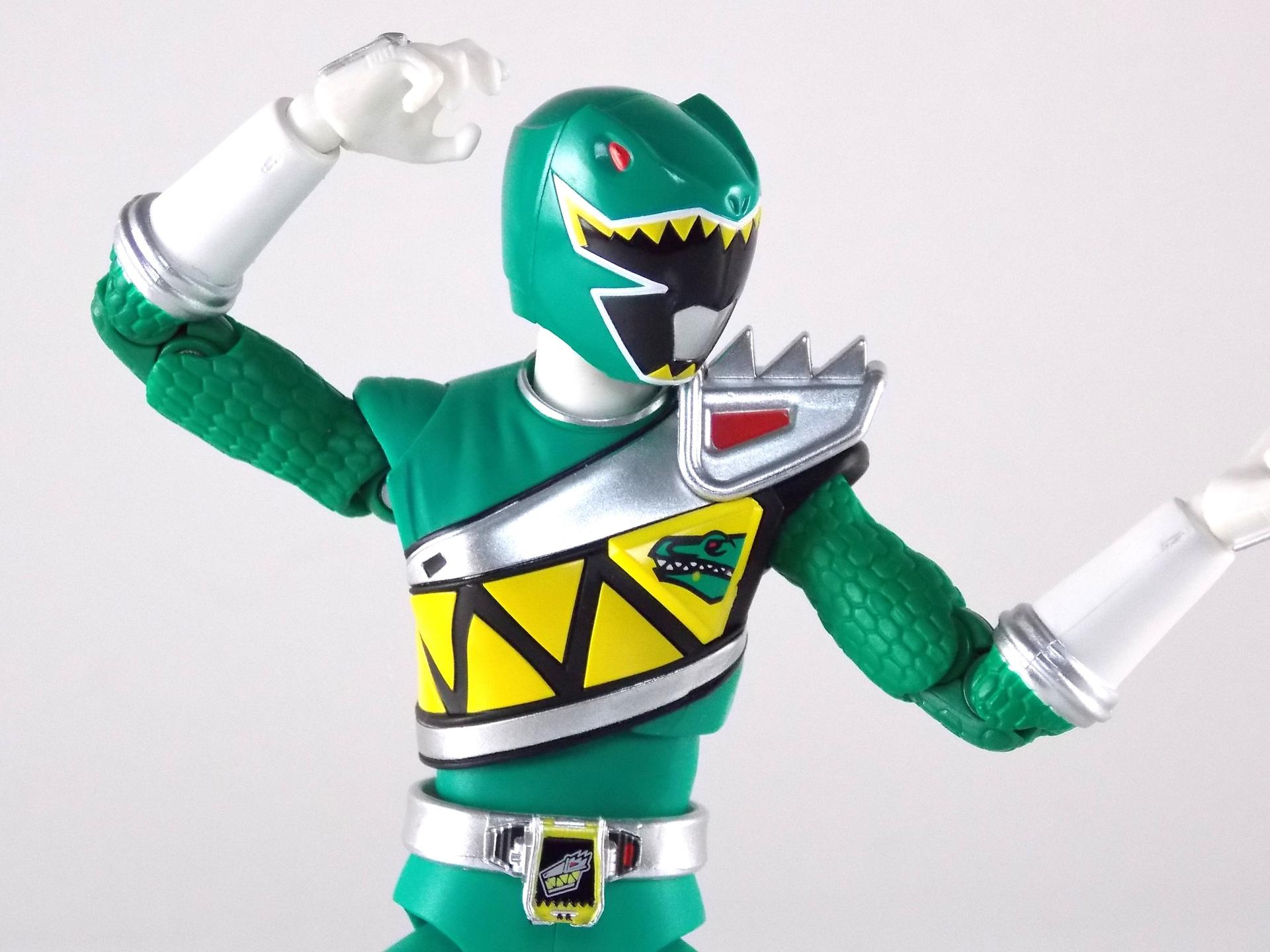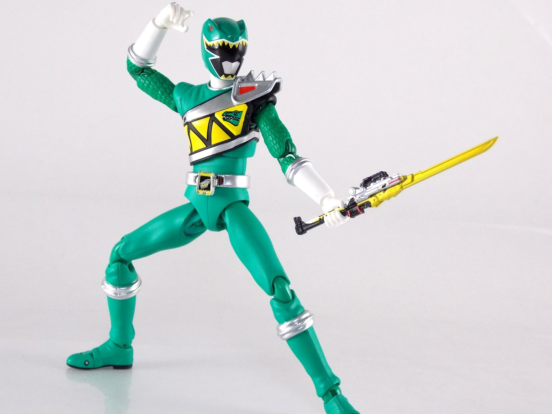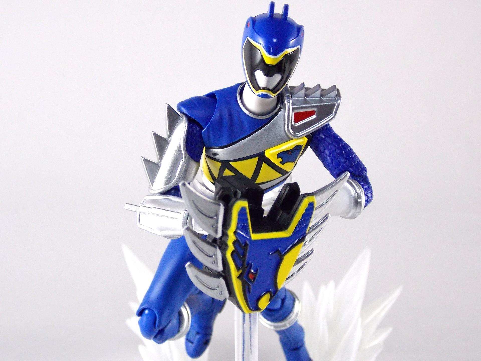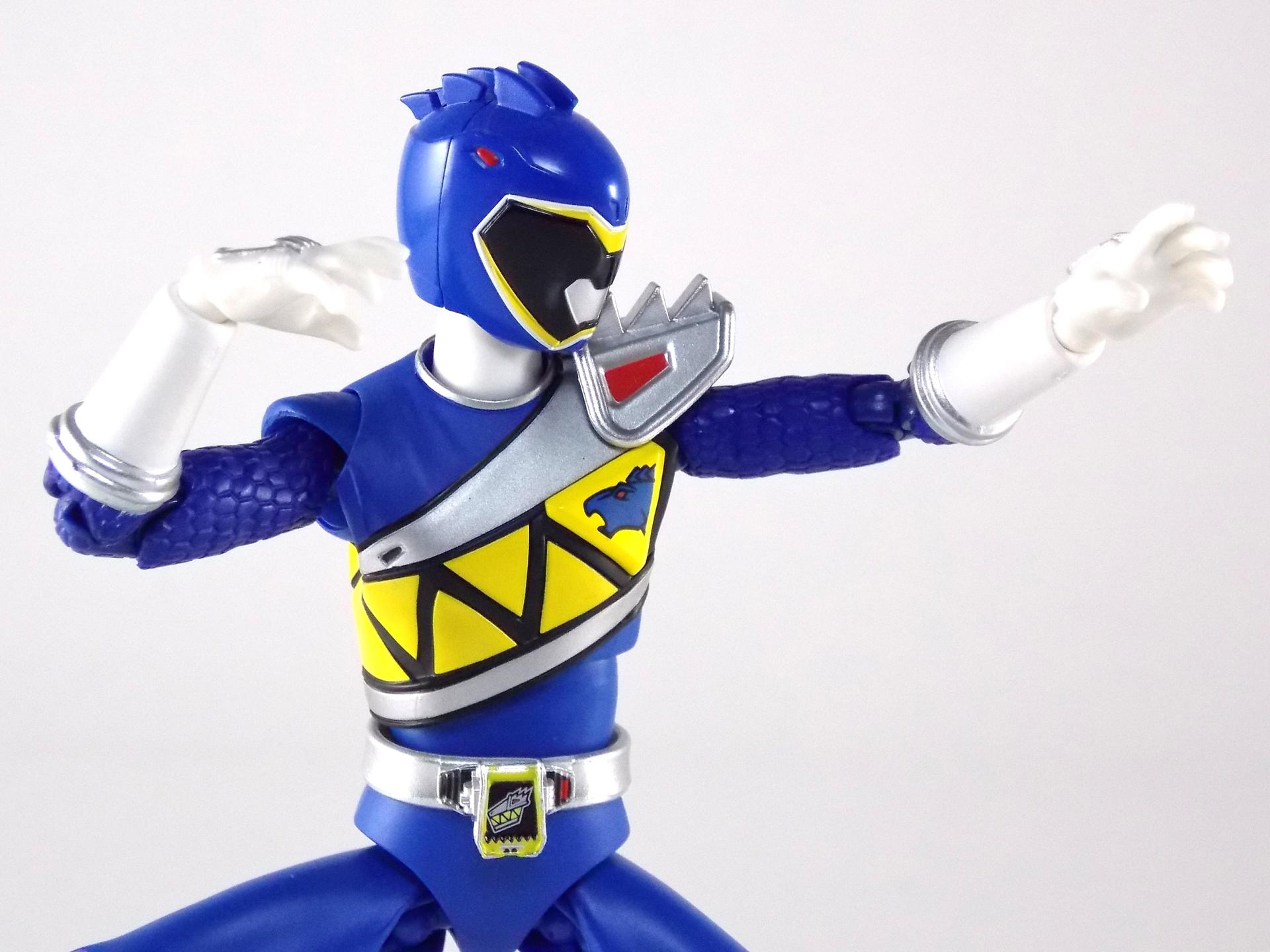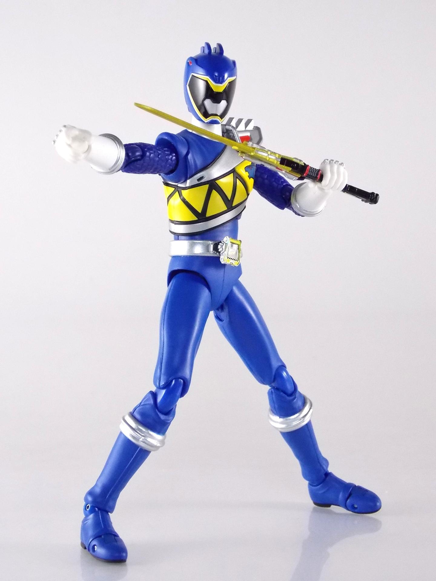 The Slashing Brave! Continuing TokuNation's Gallery 2.0 do-overs leading into Power Rangers Dino Charge we're back with another look back at Zyuden Sentai Kyoryuger! This time we're doing S.H. Figuarts Kyoryu Blue & Kyoryu Green Gallery 2.0! ** A majority of this review will be identical to my Kyoryu Red gallery & review. These figures are nigh identical to it aside from accessories. Packaging Kyoryu Blue & Green come in the same interesting box that Kyoryu Red did. Though Sentai Figuarts haven't been around nearly as longs as Rider ones, they initially started out with the same boring box design but Kyoryuger figuarts are much nicer. Though unlike Kyoryu Red, Blue & Green (as a tamashii web exclusive release) do not feature a window box. Main Figure Kyoryu Blue & Green feature the same new base body as Kyoryu Red. And wow what a nice one it is. The Kyoryuger designs are some of the more busy modern sentai suits we've had in a while, and I mean that in a good way. Luckily the busyness, in fact the more armored nature of this costume, lends itself that much more to being a toy. Where Riders Metal Heroes & the like have the advantage of armored costumes and less apparent articulation cuts, sentai costumes are basically fabric. So reproducing that in articulated toy form can be difficult. But Kyoryu Blue & Green really pull off his look quite well. The lower half of the body is simple stuff. Come up to the belt though and look at the glorious detail on the Mobuckle. It's hard to see at that scale but the Kyoryuger emblem and even the eyes on the sides of the buckle are fully painted. The Mobuckle can also rotate to the side to simulate what happens when a Zyudenchi would normally be removed from inside. At this scale though they couldn't engineer the Mobuckle to open and store them. But that's okay as the included Zyudenchi is tiny. Further up brings us to the exquisitely molded arm details. Rather than go for a fishnet style paint job on the arms to get the scaly feel of the costume, Bandai has instead sculpted the detailing into the arms themselves! Thus creating a much more polished look that works better than I ever thought it would. The chest and head though are where the figures really knock it out of the park. As I said the more armored nature of these figures lend themselves well to the toy makeover. The chest emblems, sash, shoulder, & backs are all gloriously detailed and fully painted. The Stegotchi emblem in particular looks great. However the Zakutor emblem on my Kyoryu Green has a nasty drop of paint right in the middle of it.... The heads for both are sculpted fantastically and the color matches are much better than they were on Kyoryu Red. The sculpt is a bit more dynamic on Kyoryu Blue but both he and Kyoryu Green look very solid. And as for posability, well see for yourself below. Kyoryu Blue & Green (much like Red) can assume any of their iconic poses with ease and pretty great balance as well. The shoulder armor doesn't impact articulation either thanks to the hinge on the pad. So these guys have great open ranges of movement at their disposal. Accessories Kyoryu Blue & Green also come loaded down with a basically perfect assortment of what you need. Each of them come with: 1 - Gaburevolver. The trademark weapon/henshin device of the Kyoryugers is done true justice here. You'd think at this size it would be missing paint apps but frankly it's perfect. It's just incredible how perfectly to scale this thing is painted compared to the real thing. Now the barrel doesn't spin nor can it open up on the end to accept Zyudenchi, but considering how small the Zyudenchi for these figuarts are that's fine. Once you got one in I'm sure it would never come out again. 1 - Generic Zyudenchi. Though by association these should be Stegotchi's & Zakutor's Zyudenchi respectively, they simply aren't painted correctly. Though to be fair none of the 6 Kyoryuger Figuarts have Zyudenchi with entirely accurate colors. But that's mostly because at this scale it's nigh impossible to paint properly. So some general colors are slapped on so you get a feel for it. Again this thing is infinitesimally small and I won't use it for anything again ever. I'm fine with it being kind of generic. 1 - Gaburicalibur. Again this is a wonderfully detailed piece. Right down to the most minor details this is a perfect recreation of the show prop. Again it does not open or accept batteries and I'm totally okay with that. What I'm not okay with however is that the Gaburevolver & Gaburicalibu do not combine into the Gaburicannon. Nor is a separately molded version of it included with any figuart. If a Kyoryu Violet is ever made it would almost certainly come with him/her as it was used quite often by the second (female) Violet. 4 - sets of additional hands. For your general needs. You get one set of Revolver hands, one set of Calibur hands, and one set of splayed out roll call pose hands. 1 - Armed On Arm. A great inclusion here is the option to display either of your figures in their Armed On forms! To use these you need to (pretty forcefully) yank out the right arms at the shoulder socket. Then plug the new one on. I've found this to be infuriatingly difficult to do with. Most of the time I can get them more or less on but can't always get that last "click" to lock them into place. But when you do, and then the arm stays up properly, the look is very satisfying. Then there are some unique accessories for each figure: 1 - Stego Shield. A complimentary piece to the Armed On Arm, the Stego Shield is Kyoryu Blue's Armed On weapon. Another beautifully, almost cartoonishly, sculpted piece that looks like it walked right off the set. While this Shield can't combine with the other Kyoyuger weapons into the Kentrospiker, a version of the Stego Shield is included in the S.H. Figuarts Kyoryu Black & Pink Set. That one comes already combined as the Shield Lanslasher combo. So thankfully you have the option to have both a comple