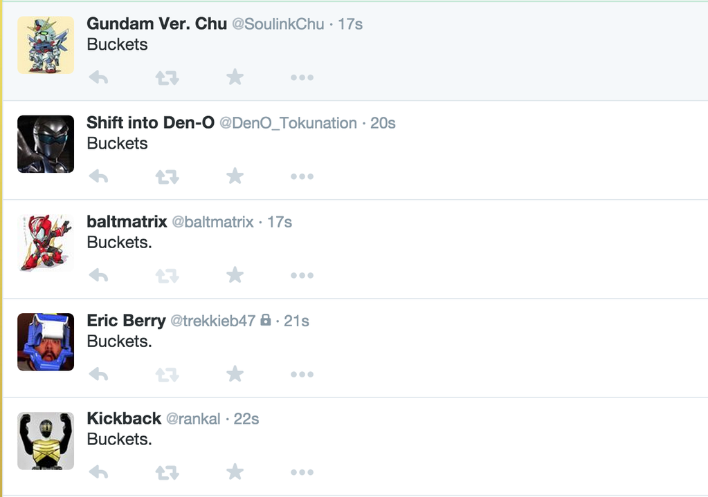 I don't know, it could be a delivery room joke (sorry Den-O, that's what I wanted when mine was born). Still, Bucket Force would have been more interesting than what we got last season.