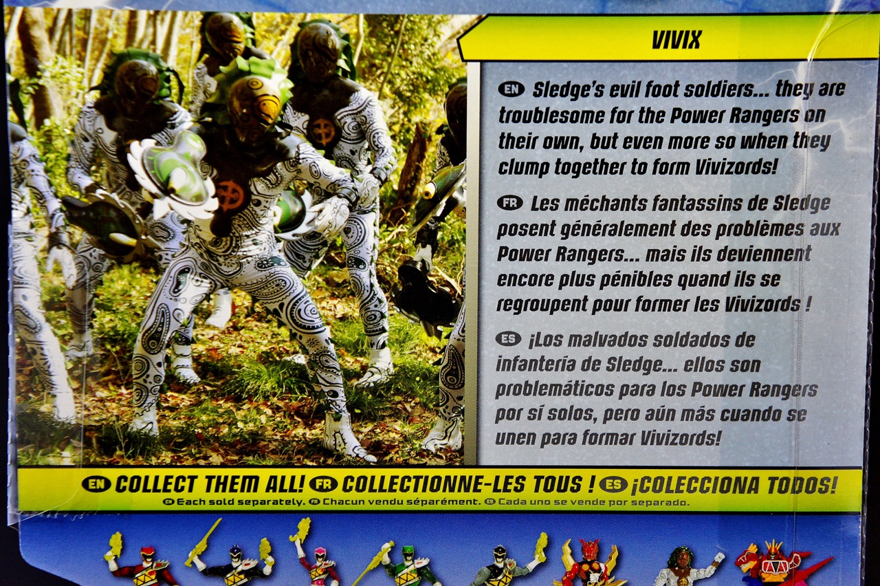 Today we bring you our gallery and review of the Power Rangers Dino Charge 5" Vivix figure and share our thoughts on what worked, what doesn't work, and whether or not you should buy it. Read on for the details! The Figure While I was playing around with this figure I popped off the lower legs to discover two more points of articulation - so this guy has 17 which is pretty damn impressive for a mold that is constantly bashed by S.H. Figuarts purists who claim anything but is subpar. But yes - 17 points of total articulation allow you to create some fun poses with this guy - he's basically only missing waist and ankle articulation to make him the stand out 5" figure in the last few years. The amount of sculpting on this figure is simply incredible. All the lines you see on his body that are filled in gray? Those are sculpted. The "hair"? Sculpted. The little spikes up and down his arms, chest, and legs? Sculpted. Now, is the figure perfect? Of course not - you'll be hard-pressed to find a chest symbol that doesn't look like it came straight out of a first grade elementary art class. But it's still pretty amazing none the less. I would dare say that of all the 5" figures that have come out in the last few years - this one is probably tops in a lot of ways. His biggest draw in terms of the overall figure is that you can't turn his head too far because of the "hair" in the back will catch on the shoulders. The Accessories The one glaring thing that this figure lacks is there are no accessories that come with it. The inclusion of something would have made this figure THAT much better, but I can't help but feel that leaving out any accessories was a miss. The figure makes up for it in some incredible detailing, but unfortunately I think an accessory would have made this figure even more of a "must-buy" for all fans and not just those seeking to troop build. The Good!