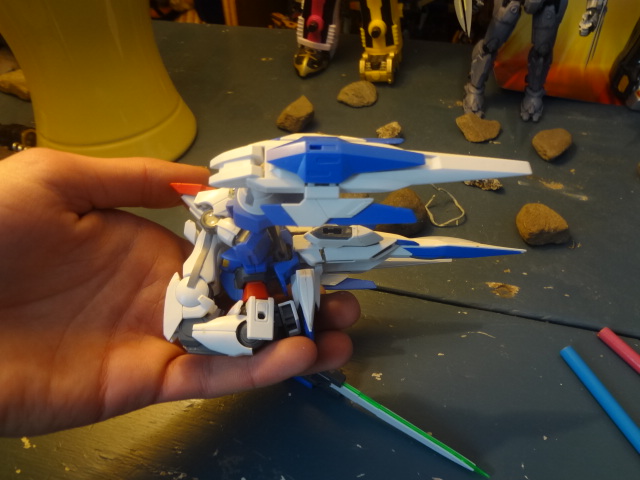 I was messing around with the 00 Raiser, and discovered that it would take very little modding to make it a transforming MS: