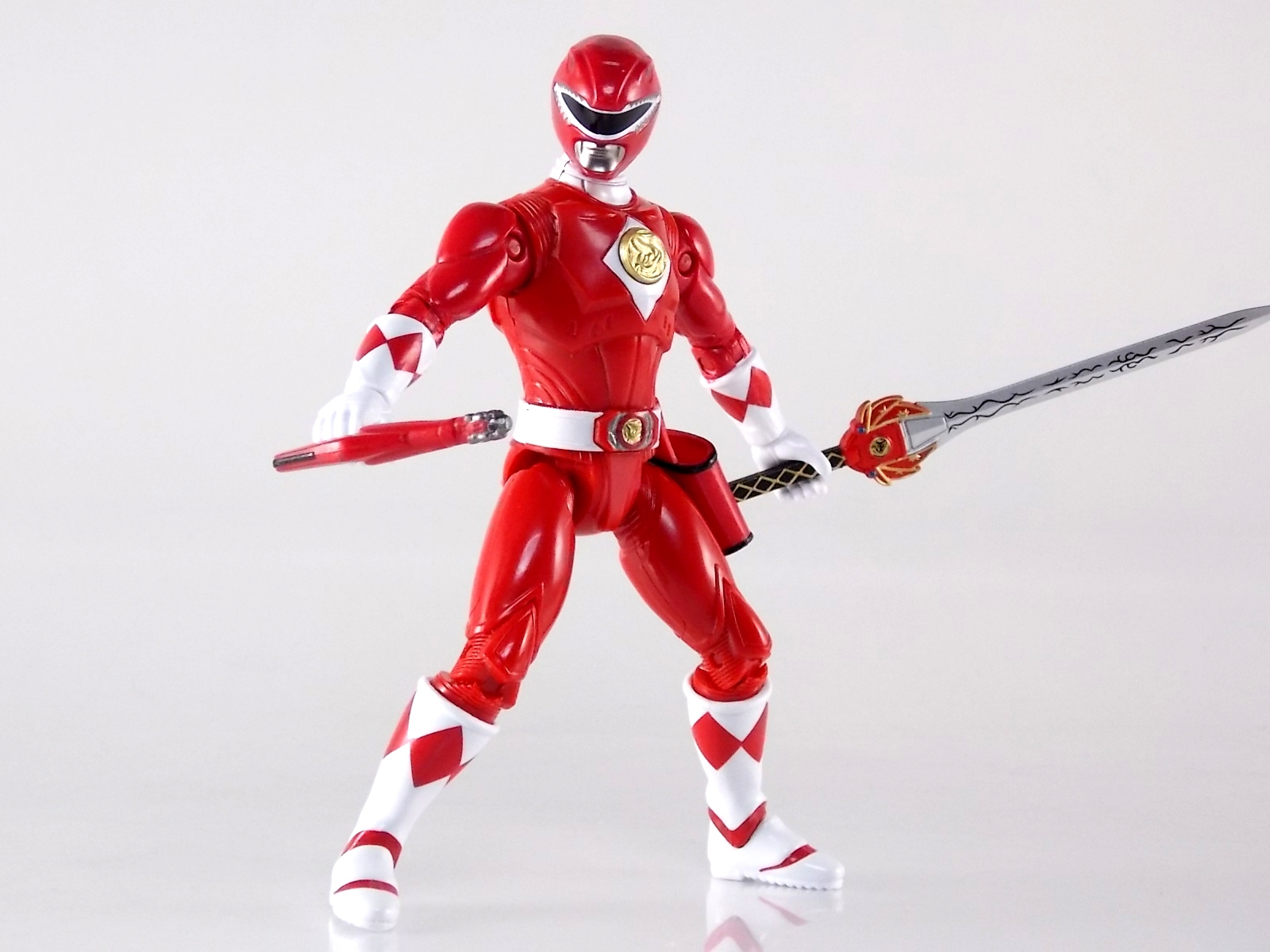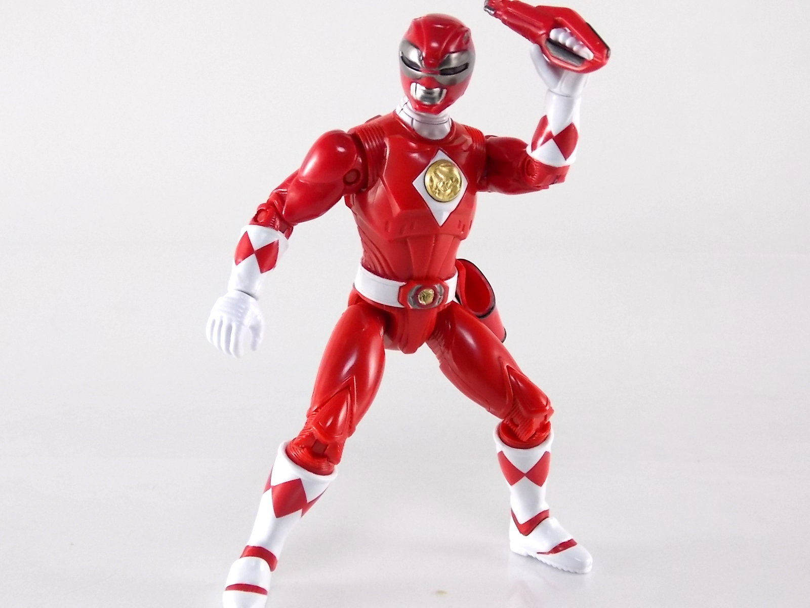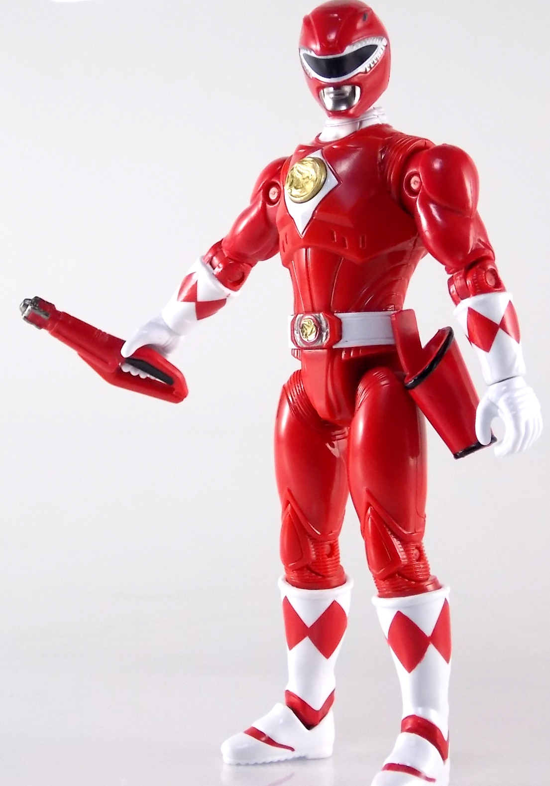 TokuNation is about to take a morphenominal trip down memory lane with you. To start it off today we're taking a look at the first in a series of new figure releases based on the classic 1995 film Mighty Morphin Power Rangers: The Movie! The first figure in this series of galleries is the 5" Legacy Movie Red Ranger! Packaging If you haven't picked up a Power Rangers Legacy figure by now, the Movie Red Ranger follows the same basic formula. Packaged in a triangular box Bandai has done the best job they could at evoking the look of the vintage toys from the original Mighty Morphin toyline. Just as with the Legacy Mighty Morphin TV themed figures this box perfectly replicates the look of the movie toys, right down to the more bare bones black & white colors. It may look a little more drab but it's still a great package. Included on the front of the box is a call out to the 1995 film and to further that connection on the back is a brief description of the films plot. Even going so far as to mention Ivan Ooze & Dulcea. A brief bio about the Red Ranger (Rocky) is also given. Oddly the bio only makes mention of his Ape Ninjazord, when technically speaking these figures are based on the rangers pre-ninja based suits from early into the film. The rangers received the ninja zords after losing their powers. Though the T-Rex and other dino zords were never seen in the film, Rocky calls out "Tyrannosaurus!" to morph in the initial fight, and the Tyrannosaurus coin is still present both on his belt and chest on this figure. An oddity but not necessarily a detriment depending on how picky you are. Figure As far as 5" figures go the Movie Red Ranger offers a bit more than the standard fare. To start you should know that this line of 5" Movie figures is literally the first time ever that the actual movie designs have been put into figure form. The original toys were mere metallic repaints of the TV show toys in movie packaging. But this figure is the real true deal. From a sculpt and detail perspective alone this figure is leagues beyond the generally simple toys of the normal Power Rangers retail lines. Where those 5" figures feel flat and artificially roided out, the Movie Red Ranger is covered in armored technological detailing that really goes a long way to replicating the look of the actual costume. Since these suits were more armor than spandex they had a lot of detail to them, so I'm pleased that the toy has managed to capture that. Though the finer details are pretty bad. The morpher/belt area and chest emblem are incredibly soft. And by that I mean inaccurately sculpted. They just look like they're made of butter or something. The head is also a little bit off to me, a little fuzzy and undefined. On the articulation front the figure has much of what we've come to expect. Hips that swing forward/back & side to side. Knees & shin swivels with surprisingly decent rocker ankles. Though the ankles on mine are quite loose. No waist joint sadly. The arms however are as bad as I've come to expect generally. Simple shoulders that move forward & back and can't properly stretch out to allow the arm a full ranger of up/down movement. This is mostly due to the sculpted in shoulder pads, but it keeps the arms from getting into dynamic poses. Elbow articulation is limited to a 90 degree angle only, and the wrists while on ball joints don't have much clearance to make use of them. The arms are kind of frustrating to me though as a whole. A simple bicep swivel could have made them so much more dynamic. The head is on a fairly decent ball joint that allows for a good bit of tilting in all the primary directions too. I honestly didn't expect it to be as decent as it is. If only it had a little more clearance in the back. Also a peg hole is built into the left side of the belt area to accommodate the included accessories, or a similar one from another 5" Ranger figure. While I don't own the 5" MMPR Red Ranger to compare this figure too, I did have the Figuarts Tyranno Ranger on hand for a general comparison. Accessories 1 - holster. Used for the included weapon accessory 1 - Power Blaster/Blade Blaster. This is an odd one. While this item most certainly is in the film, in fact the 5 core rangers each have one holstered in the movie, none of them are ever used or seen outside the holster. Though the name Power Blaster has been given to the unused weapon, it's apparent that it's very much meant to be the film version of the TV shows Blade Blaster. The sculpt is a bit soft and paint so so, but it gets the point across and matches the holster well. 1 - Power Scope Helmet. This extra head can be used by simply popping off the normal Red Ranger head. This one is meant to replicate the one off "special power" used by the Red Ranger in the film. Using this Scope allows the Red Ranger to track enemy movements, even for concealed or camouflaged foes. The toy version is sadly kind of weak. Neither the sculpt nor paint job are really all there. The red slit painted into the middle of the visor is meant to evoke the red sensor beam on the actual helmet, but instead makes the singular visor look like two separate pieces. On most of the Red Rangers I've seen the paint applications to the Scope helmet vary from acceptable to laughably bad. Honestly I'm a bit disappointed that something else kind of specific wasn't included. I really expected at least the Power Sword. While it may never have been seen in the film, the Blade/Power Blasters were never used either despite their appearance. And the weapon could easily have just been a repack form the Legacy 5" TV figure. It's not something that necessarily needed to be there, but I think it could have helped complete the package. Final Thoughts As someone who loves the campiness of the original Mighty Morphin Power Rangers Movie and the wonderful suit designs I had to buy this 5" Movie Red Ranger figure, but sadly it's not really the quality I want just the quality I'm willing to accep