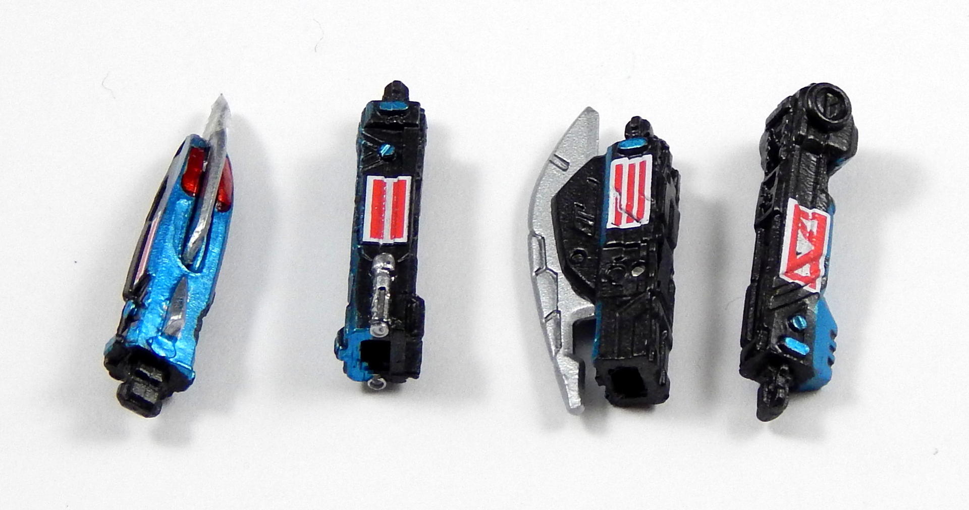 As for the joints, SICs, especially older ones like these, are incredibly uneven. They're hand-sculpted and organic as hell, they're not perfectly symmetrical, computer-modeled figures. HeatMetal has a thumb print behind the faceplate. So as such, limbs aren't going to have the same tolerances or range of motion. Hell just look at the red thigh inserts in the gallery above, they're not even close to the same size or shape! It's what makes SIC great, but it can also be very, very frustrating on older sets. Pre-Deno-O sets were also notoriously fragile. (wheras Den-O and onwards is very durable) I also love that the Den-gasher is fully operable. |