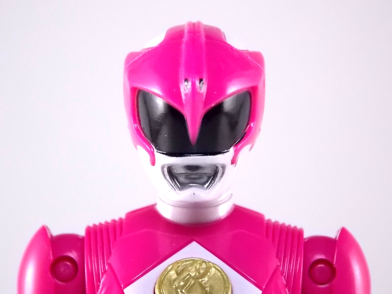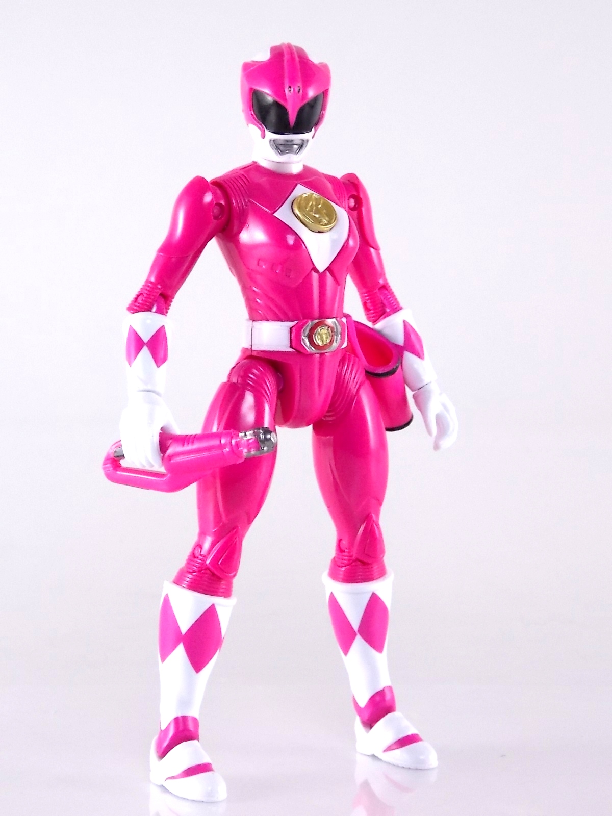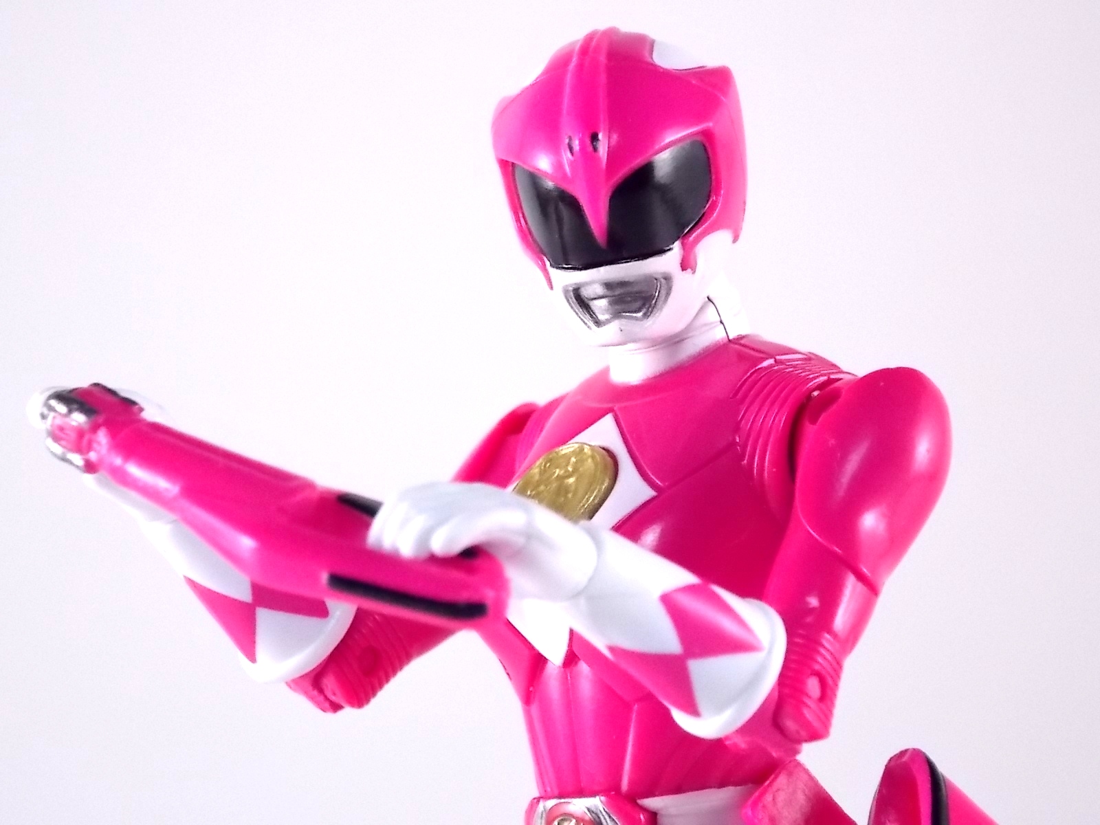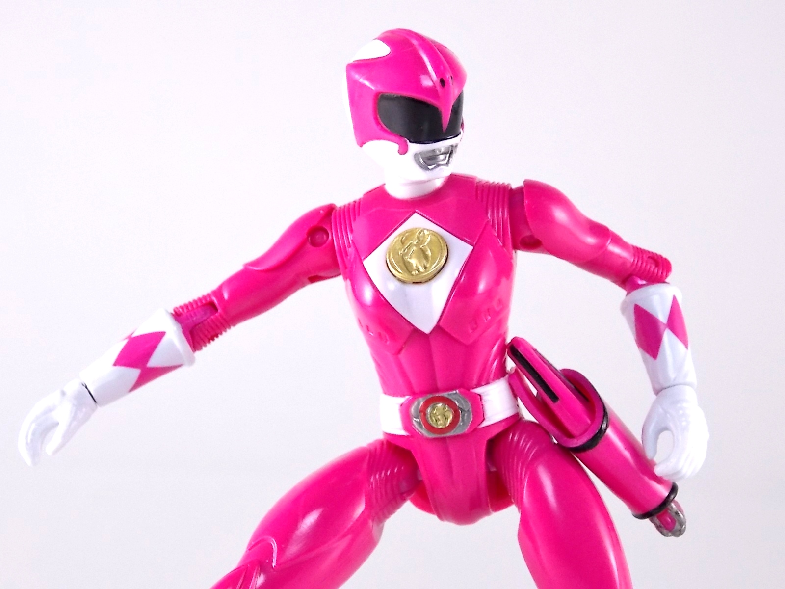 TokuNation is continuing it's trip down memory lane with 1995 film Mighty Morphin Power Rangers: The Movie! And the third figure in this series of galleries is the 5" Legacy Movie Pink Ranger! Packaging If you haven't picked up a Power Rangers Legacy figure by now, the Movie Pink Ranger follows the same basic formula. Packaged in a triangular box Bandai has done the best job they could at evoking the look of the vintage toys from the original movie toyline. Just as with the Legacy Mighty Morphin TV themed figures this box perfectly replicates the look of the movie toys, right down to the more bare bones black & white colors. It may look a little more drab but it's still a great package. Included on the front of the box is a call out to the 1995 film and to further that connection on the back is a brief description of the films plot. Even going so far as to mention Ivan Ooze & Dulcea. A brief bio about the Pink Ranger (Kimberly) is also given. Oddly the bio only makes mention of her Crane Ninjazord, when technically speaking these figures are based on the rangers pre-ninja based suits from early into the film. The rangers received the ninja zords/powers after losing their original powers. Though the Pterodactyl and other dino zords were never seen in the film, Kim calls out "Pteradoctyl!" to morph in the initial fight, and the Pterodactyl coin is still present both on her belt and chest on this figure. An oddity but not necessarily a detriment depending on how picky you are. Figure As far as 5" figures go the Movie Pink Ranger offers a bit more than the standard fare. To start you should know that this line of 5" Movie figures is literally the first time ever that the actual movie designs have been put into figure form. The original toys were mere metallic repaints of the TV show toys in movie packaging. But this figure is the real deal. From a sculpt and detail perspective alone this figure is leagues beyond the generally simple toys of the normal Power Rangers retail lines. Where those 5" figures feel flat and artificially roided out, the movie rangers are covered in armored technological detailing that really goes a long way to replicating the look of the actual costume. Since these suits were more armor than spandex they had a lot of detail to them, so I'm pleased that the toy has managed to capture that. Though the finer details are pretty bad. The morpher/belt area and chest emblem have incredibly soft details. They just aren't properly sculpted. and look like they're made of butter or something. The head is also a little bit off to me, a little fuzzy and undefined. On the articulation front the figure has much of what we've come to expect. Hips that swing forward/back & side to side. The hips on the Movie Pink Ranger are particularly awful though. They're just so strangely wide, and the way they're sculpted means when you move them forward at all the well, butt area, looks like it's falling off the back end of this figure. She's got Knees & shin swivels with surprisingly decent rocker ankles. No waist joint sadly. The arms however are as bad as I've come to expect generally. Simple shoulders that move forward & back and can't properly stretch out to allow the arm a full range of up/down movement. This is mostly due to the sculpted in shoulder pads, but it keeps the arms from getting into dynamic poses. Elbow articulation is limited to a 90 degree angle only, and the wrists while on ball joints don't have much clearance to make use of them, they also pop off. A lot. The arms are kind of frustrating to me though as a whole. A simple bicep swivel could have made them so much more dynamic. The head is on a fairly decent ball joint that allows for a good bit of tilting in all the primary directions too. I honestly didn't expect it to be as decent as it is. If only it had a little more clearance in the back. The paint however is kind of rough on the helmet, I've seen various Pink's at retail with so so white paint applications. Mine is a bit like that as well. Also a peg hole is built into the left side of the belt area to accommodate the included accessories, or a similar one from another 5" Ranger figure. While I don't own the 5" Legacy MMPR TV Pink Ranger to compare this figure to, I did have the S.H. Figuarts Ptera Ranger on hand for a general comparison. Accessories 1 - holster. Used for the included weapon accessory 1 - Power Blaster/Blade Blaster. This is an odd one. While this item most certainly is in the film, in fact the 5 core rangers each have one holstered in the movie, none of them are ever used or seen outside the holster. Though the name Power Blaster has been given to the unused weapon, it's apparent that it's very much meant to be the film version of the TV shows Blade Blaster. The sculpt is a bit soft but there are also minimal paint apps making it look rather cheap. 1- Pterodactyl Thunder Whip. Not so much a whip as a rigid piece of pink plastic. If they had included 2 versions of the Thunder Whip, one pre-extended and one post, then I'd be happy. Or if the whip portion was detachable at all. But instead it's one solid non-flexible piece that frankly doesn't do much. I'd really hoped for the Power Bow to be included as some sort of bonus to justify the supposed collector nature of this figure and it's price. Sadly you shouldn't expect that. Especially if you've been familiar with this line thus far. While the Bow may never have been seen in the film, the Blade/Power Blasters were never used either despite their appearance. And the weapon could easily have just been a repack form the Legacy 5" TV figure. As with the Movie Red Ranger & Movie Black Ranger, the lack of an additional accessory could be an issue for you when buying these figures. I expected better. Final Thoughts Like I said in the Movie Red Ranger Movie Black Ranger review, I love that original movie. Terrible characters, plot, CG and all. The suit designs have never been properly put into toy form and th