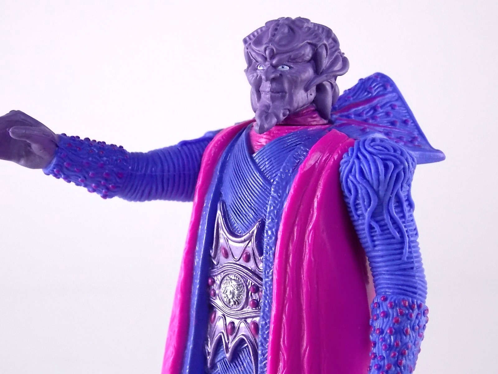 "Where's mah autograph book?!" It's time for another installment in TokuNation's long series of toy galleries! And today is very special indeed as this thread marks our 400TH GALLERY ENTRY! To celebrate this momentous milestone today's gallery will be a 2 for 1 special. We're doing back to back photo sets of the big bad boss from the Original Mighty Morphin Power Rangers Movie! The galactically feared, globally reviled, and universally despised Ivan Ooze! Today's gallery breaks down into 2 posts. The first post will focus on the vintage Evil Space Aliens series Ivan Ooze figure while the second post will spotlight the MMPR Movie Legacy 5" Ivan Ooze! But there's also a third element to this gallery, a poll! We've posed the question to you, the community, which of these 2 Ivan Ooze figures is the best? Which one would you prefer in your collection? After you've checked out both reviews and all the pictures within head to the top of the thread to vote! Now let's get started! Evil Space Aliens Ivan Ooze Review Packaging A real blast from the past, like the character himself, is the Evil Space Aliens Ivan Ooze figure. Definitely a product of the 90's this figures packaging is a bit at odds with what the card backs looked like for many Power Rangers toys of the era. Gone were the primarily green season 1 & 2 cards, now solidly purple. The back of the card features several cross sells , one of which is kind of perplexing too. Featured is a small section labelled as "Movie Edition" Evil Space Aliens. It's odd because yes Ivan is in that section as is Zedd, but so is a Tenga Warrior & Mordant. None of these figures were ever released in packaging labeling them as "Movie Edition" despite this cross sell, Actually aside from this cross sell image nothing on the packaging would even indicate that Ivan comes from the MMPR Movie toyline. The logos used are all MMPR TV even. Whereas the 6" & 8" Movie Ranger figures had come in specifically movie themed packaging. This cross sell image is also one of the only known images of the prototype Ivan Ooze figure. It's entirely different from the final product released. Based on that lone prototype it appears as though Ivan's lower body is a solid chunk of pink plastic with what appears to be arms that are sculpted as though they are crossed. The only purple detailing appears on his head and around his neck frill. I'd very much like to see what this figure would have been like in hand. Aside from cross sells, a very brief demonstrative image is also printed on the back showcasing Ivan's action feature. A small dial on his back that when rotated moves his arm up and turns his head to the proper forward direction. Main Figure Now when you pop Ivan out of the package the first thing you should notice is that his head is turned at a 90 degree angle towards his right shoulder. This is intentional sadly. Because of the above mentioned dial gimmick, Ivan's head at it's resting position stares out across that shoulder. When you spin the dial to raise his right arm up, the heads looks more directly forward in increments. So the only way to have him face properly forward is to raise the arm up completely. Aside from this I have to admit something, for a toy made in 1995 based on a one-ff movie villain this figure is detailed pretty well. Mind you it's nowhere near accurate, but it looks great. A very vibrant pink clashes with lilac robes and a putrid purple head & hands to really make a nice evil villain figure. The sculpt on his arms in particular is incredibly detailed for a figure of this nature. But then again so are the robes and the intricate ornamentation on the front of them. his back side however is pretty flat and bland. The head sculpt, while horrifyingly derpy, is actually fairly close to the actual movie look. The horns and growths on his face are generally all where they should be though the proper separation of colors has been lost. With toys for movies though they're generally developed a bit in advance of the films release so some times an early draft of a character is all a company has to work with. For a figure made by BOA in 1995 with these conditions, he looks great. That being said he really can't do much. One arm that can rotate, and another whose rotations is permanently linked to his head mean he's pretty bland for most any pose at all. He's essentially a brick with 1 & 1/2 arms worth of movement. Accessories Ivan Ooze includes just one accessory. An unnamed and otherwise non-existent Staff. This odd accessory has no basis in the film but again dues to the production time of this figure may indicate that an earlier version of him did not use the Flute/Wand seen in the actual movie. As is it's a pretty cool looking piece though it's made of pretty gummy soft plastic. Final Thoughts For a toy of it's kind and of it's age the vintage Evil Space Aliens Ivan Ooze is pretty interesting. Given the time BOA had to produce it and what they had to work with in 1995 it really isn't too terrible. It fits in more with a collection of 5" scaled toys than anything though as he doesn't mix too well with any other villain figures I own. But for what he is, this representation of Ivan is pretty passable. Now let's movie on to the 5" Legacy Ivan Ooze!