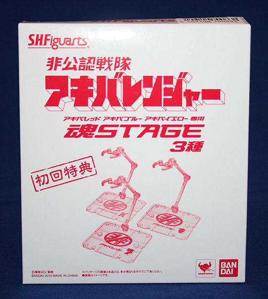Included with the release of S.H. Figuarts Akiba-Red from the Akibarangers, was the bonus item of Tamashii Stages that were exclusive to the Akibarangers, each stage is tempo printed with the Akibaranger logo in each member's respective colors. Now that all three Akibaranger has been released, the stages can finally be utilized.