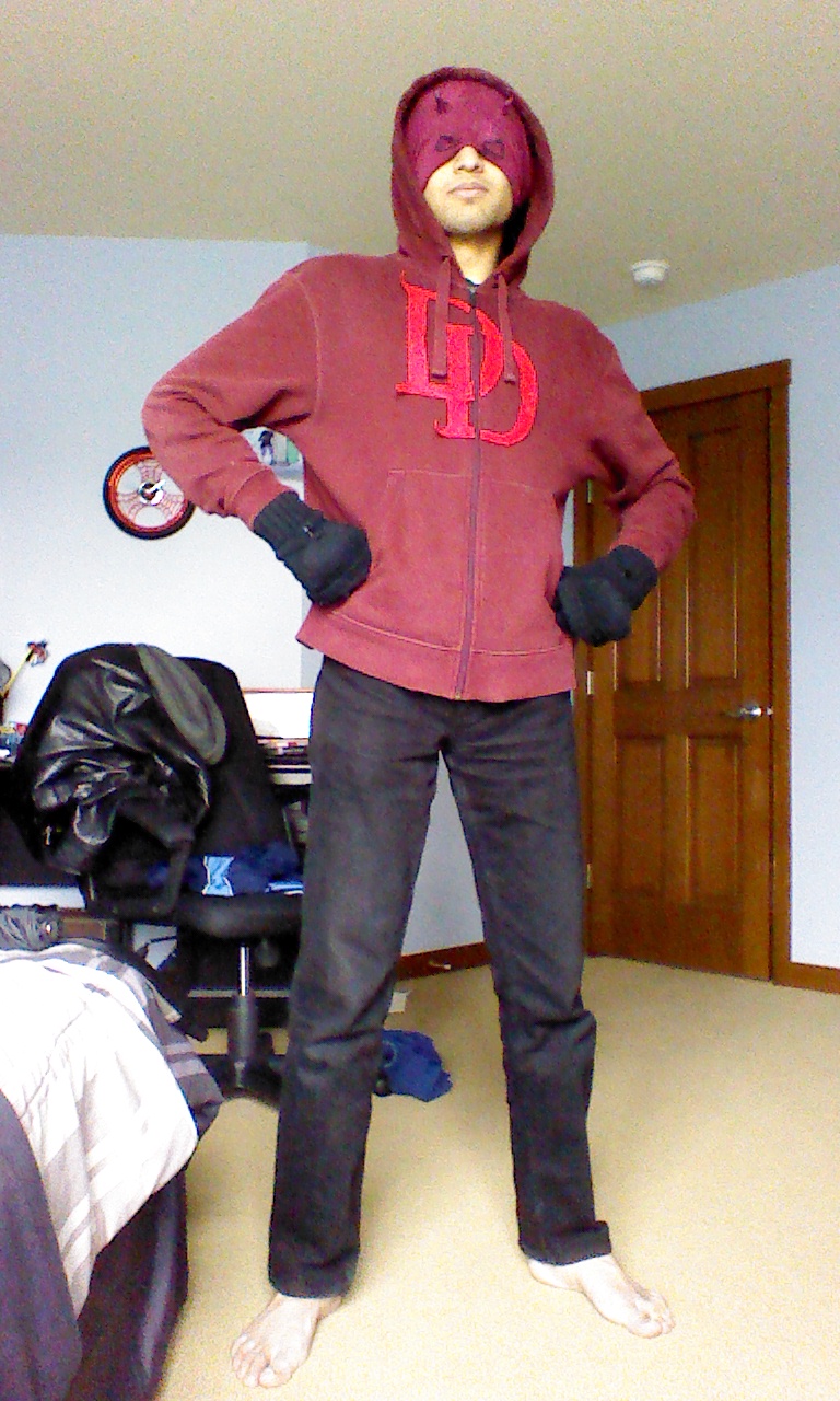 Kudos man, that's a sweet cosplay! The helmet looks a little bit wonky, but for something hand made for the very first time? Awesomesauce!