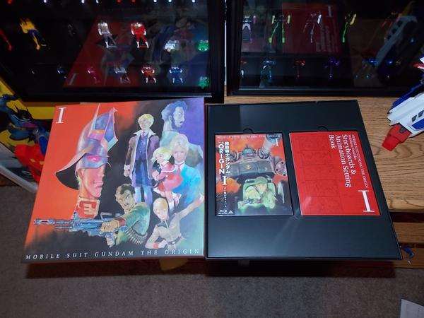 So for anyone who's interested I received my Gundam Origin I LE Blu-Ray set from Right Stuf yesterday. It's a pretty awesome and elaborate package and comes with a pair of pretty great Japanese art books specific to the series. It's really a fantastically presented set. Perhaps not quite worth the $99.98 retail but with free shipping on a box of this size (MP Star Saber for scale) I'm not too uncomfortable with having paid that for it.