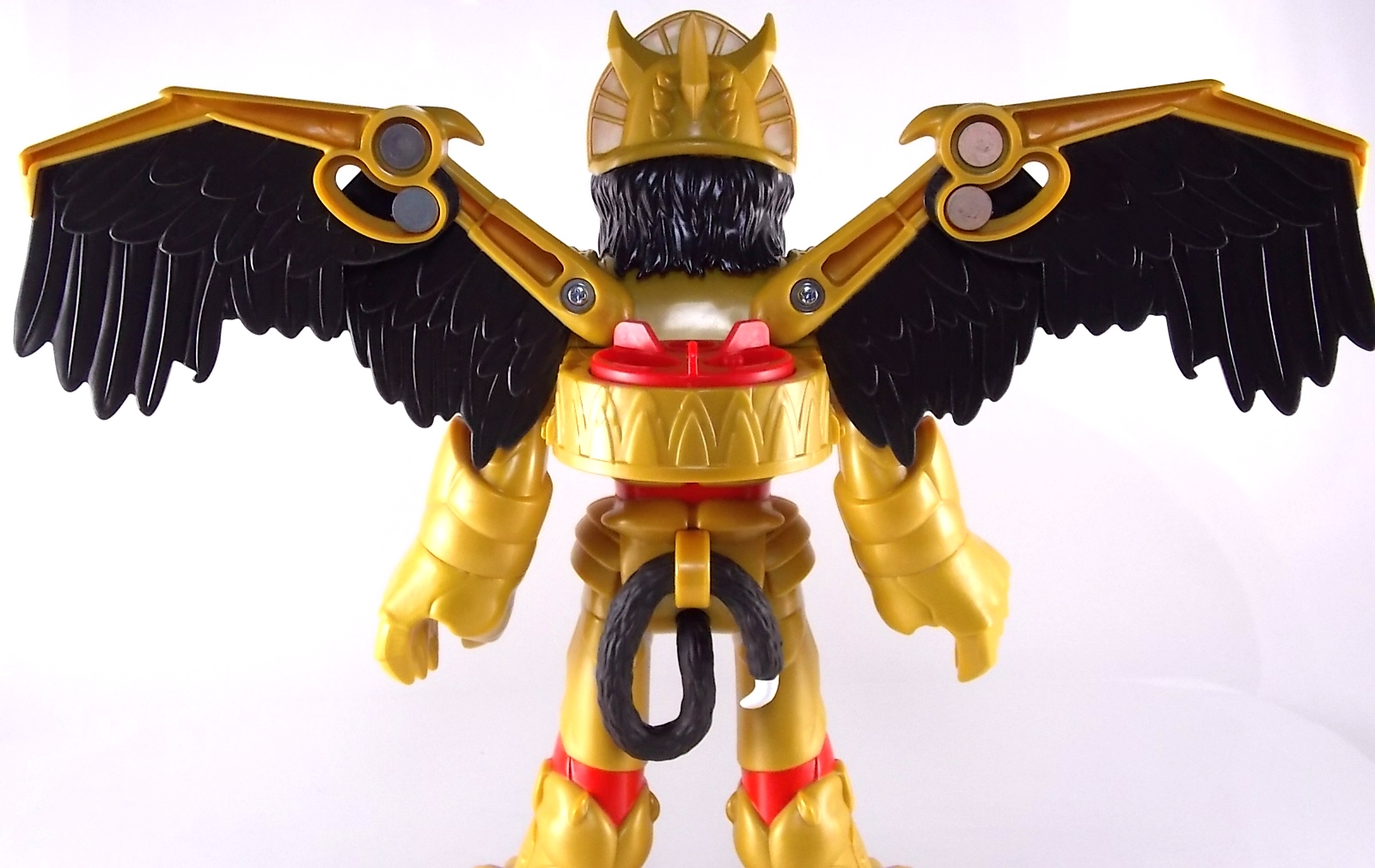The line has just started hitting store shelves in recent weeks and we're taking this opportunity to review one of the initial offerings in the line, Imaginext Goldar & Rita Repulsa! Packaging Imaginext Goldar comes in the traditional open style of box that most Imaginext play sets do. Frankly if not for his conspicuous size you could yank him right out of that package in a store. He's held in my by 1 twist tie that can be cut from the front. There's a perforated section on the back of the package that you can tear to get to the twist tie from that side. But it's ultimately pointless with ease of access from the front, and you'd destroy the artwork on the back. However the Rita Repulsa mini-figure as well as her & Goldar's accessories are glued down underneath a plastic bubble. The front of the packaging isn't really all that elaborate thanks to it's openness. But there's plenty to check out on the back! The above mentioned art work with a perforation in it is pretty damn cool for something like Imaginext. You get slightly stylized images of the entire initial Power Rangers Imaginext lineup here. It's actually a pretty cool scene. And in lieu of any actual instructions, you're told how to play with Goldar & Rita on the back of the packaging. Oddly enough the back of the package features one rather funny typo. Even though her name is spelled properly as Rita Repulsa everywhere else on the box, the back features text that reads her name as "Rita Repulsar". But that's about it for the box, onto the figures! Goldar It's gotta be said that the Mighty Morphin franchise is a really odd place for Mattel to begin with Power Rangers Imaginext. It just seems counter to the logical choice of the current series, Dino Charge. As toys aimed at very young children in the 3-8 range these aren't quite the types of things that nostalgia collectors would be after. Normally. But I have to say that Imaginext Goldar is pretty damn awesome. There's a level of detail present that you wouldn't quite expect on a toy of this nature. Just all around the molded in details are pretty great. The paint apps are even mostly spot on with a few minor areas of over spray. His face is painted quite nicely though they definitely took Goldar's usually menacing expression and dulled it a bit to work for children. His articulation is limited to his hips, shoulders, and rotating wrists but frankly for a kids toy like this you don't need much. Weirdly enough Goldar's tail is "rolled" up through a loop on his waist line area and it actually be rotated at the base so his tail isn't in the loop. For seemingly no reason at all. It's made of a soft rubbery plastic but can't actually be stretched out entirely. I tried using the loop to store his sword but it just barely serves that purpose. So I have no idea what the intent (if any) was to have that molded in such a way that it could move. Rita, whom I'll look at more closely down below, can be mounted onto Goldar by plugging her into his Power Pad. Located between his shoulder blades on his back. She's held on by a single heel peg locking her securely in place. Turning Rita to the left while attached to the pad will swing up Goldar's right arm for his "sword fighting" as the packaging calls it. Turning her to the right releases Goldar's mighty wings! Though Goldar's wings appeared and disappeared over the course of MMPR season 1 seemingly at random due to footage cuts, here they are presented in all their glory. They're held in place by one small friction tab on either side of the Power Pad that release when it's turned. You also don't have to use Rita on the Pad, it can be turned either direction without her but the intention is to do it with the figure. Goldar actually winds up being about the size of a DX Sentai Robo or US Megazord. Which suffice to say makes this figure pretty damn great. Putting him with your Legacy Mega/Dragon/Tigerzords will not disappoint. A large and imposing figure despite it's childlike design, Imaginext Goldar is big and fun. Accessories Goldar also includes one actual accessory to use himself whereas the others are a little different. Goldar's Sword - Though unimaginative in name Goldar's Sword in truth has no official name. His Japanese counterpart Grifforzar wielded the Griffocalibur IV. In either case this toy version of the sword is incredibly faithful to the real deal. Honestly at this scale it's not that surprising, but it really does look quite nice. Certainyl more impressive than it's ever been done in 3" or 5" scale before. Rita Repulsa Figure - While Goldar himself and his sword are very faithful, Rita and her accompanying accessories go in the complete opposite direction. Rather than the brown robed white haired sorceress we know, we get an oddly shaped purple woman. I have to point out that she has a fair amount of articulation for such a small figure as well. 360 wrists, hinged shoulders for outward and forward/back motion, rotating head, and she has a sort of "knee" joint in the thigh section of her robe. She's about the size of a Bandai of Japan Ranger Key but I've included an image for scale to several other figure lines. Rita's Headdress - Similar to Rita herself, the headdress get's the basic shape right but none of the colors. When on her head it completely restricts the head from rotating side to side. Rita's "Magical Staff" - If this one had just gotten as many paint apps as Goldar's sword we'd be in business. Instead it's a dull gray plastic with a few minor paint applications. The sculpt is on point but just not the colors. Now Rita may look a bit off and I'm not sure why they went that direction but I think it can be forgiven for the most part. I'm sure some creative choice played into the figure being in those colors. Goldar and his sword more than knock it out of the park and make up for things. Rita's essentially just a bonus to me. Final Thoughts Rita's inaccuracies not withstanding that's a pretty great selection for a children