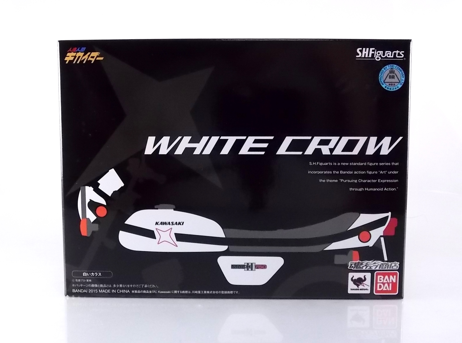 If there's one thing the original Hakaider had going for him to set himself apart from his successors it's this classic machine. The S.H. Figuarts White Crow! Based on a modified Kawasaki H1 Mach III, the White Crow was a fearsome ride for 1972. And even today it's a glorious toy. Read below and check out the gallery attached!