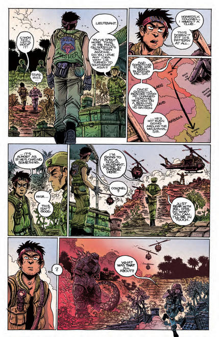 Godzilla #5 Boxer and his team decide it's time to turn their sights to the big game-Godzilla! A perfect plan goes awry when a billionaire adventurer gets his hands on Mechagodzilla. The result? Utter monster mayhem! Godzilla Half Century War #2 The year is 1967 and Godzilla is on the move... to Vietnam! With a war underway, Godzilla is the last thing the country needs. Lieutenant Murakami follows Godzilla to try out some new tech on the monster, but a super-sized foe named Anguirus might just be the most effective counter-measure. It's a rumble in the jungle, don't miss it! Read on to preview these new issues, due out tomorrow!