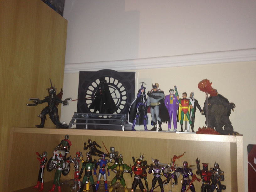 ![]() So this is it, pretty much the bulk of my toku collection. It's missing a few bits here and there (my Mobirates and handful of ranger keys are still in storage, and Yomi Ryugen hasn't been added to the Gaim display just yet) but otherwise it's everything. Decided to throw in my other figures as well, because if I'm taking all these pictures I thought why the hell not The bulk of it is still back at my parents' place where it will probably stay until I get a house (same goes for my Doctor Who stuff, what's pictured is only a small fraction of it) but these are the things I've amassed since moving out. The figures on the white shelves belong to my girlfriend (along with the Persona/Steins Gate/KanColle/Black Rock Shooter stuff), and as such I feel I also own them by proxy