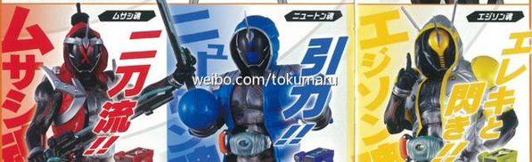 ![]() Generic silhouettes for the Movie War 2016 Ghost Eyecons. Since there's two of them I'm gonna bet that both Ghost and Spectre each get a new form. I really like the references to the historical figures on the actual Eyecons' irises. They each have a symbol/icon incorporated into the iris and, by extension, Ghost/Spectre's mask. You have a lightbulb for Edison, katanas for Musashi, a bow & arrow for Robin, a revolver for Billy the Kid, music notes for Beethoven, and Tanegashima for Nobunaga. Not to mention that each Eyecon has horns on the iris as well that denote which Rider uses them (one horn for Ghost, two for Spectre). |