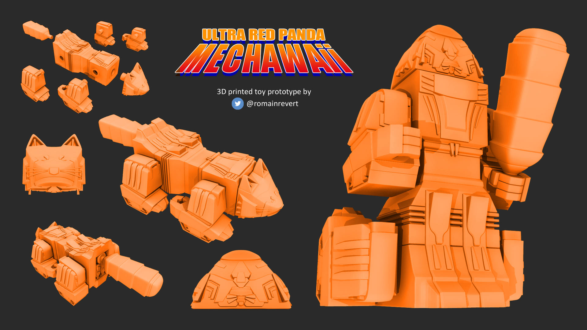As a big tokusatsu mecha fan since 4 or 5 years old (thx Bioman) and as a 3D artist, I always want to do a 3D print of my own super sentai mecha... I always loved the big mecha like Dekabase, Daimugen or Lion Ha-Oh . So I decided to do a red panda inspirated by them. It still WIP and need a lot of work. UPDATE 08/14/15 :