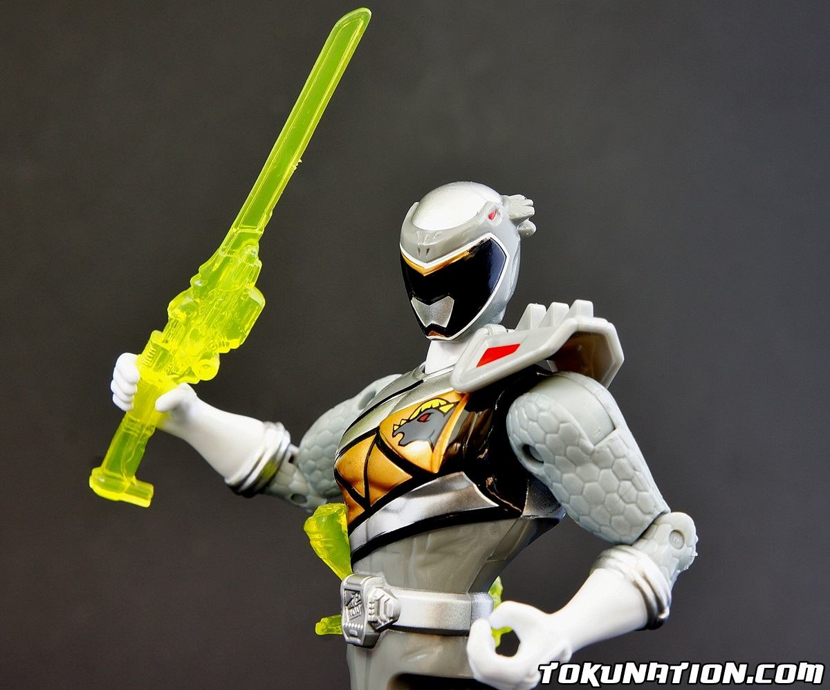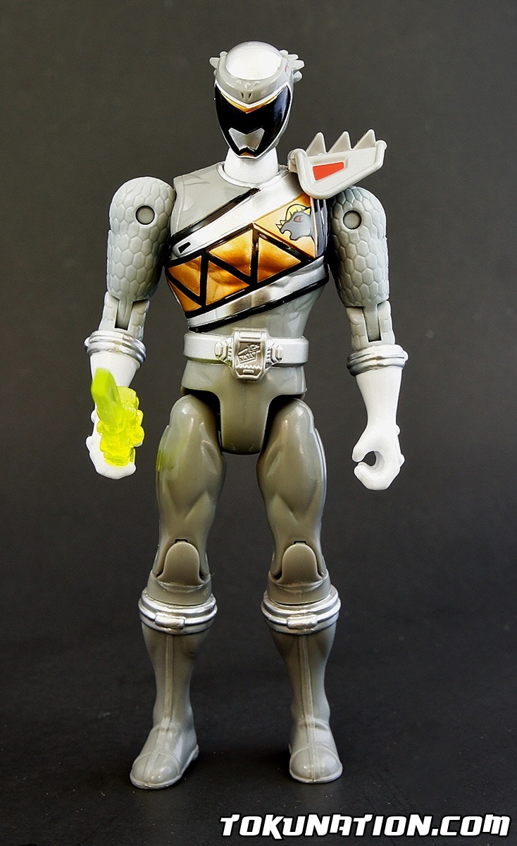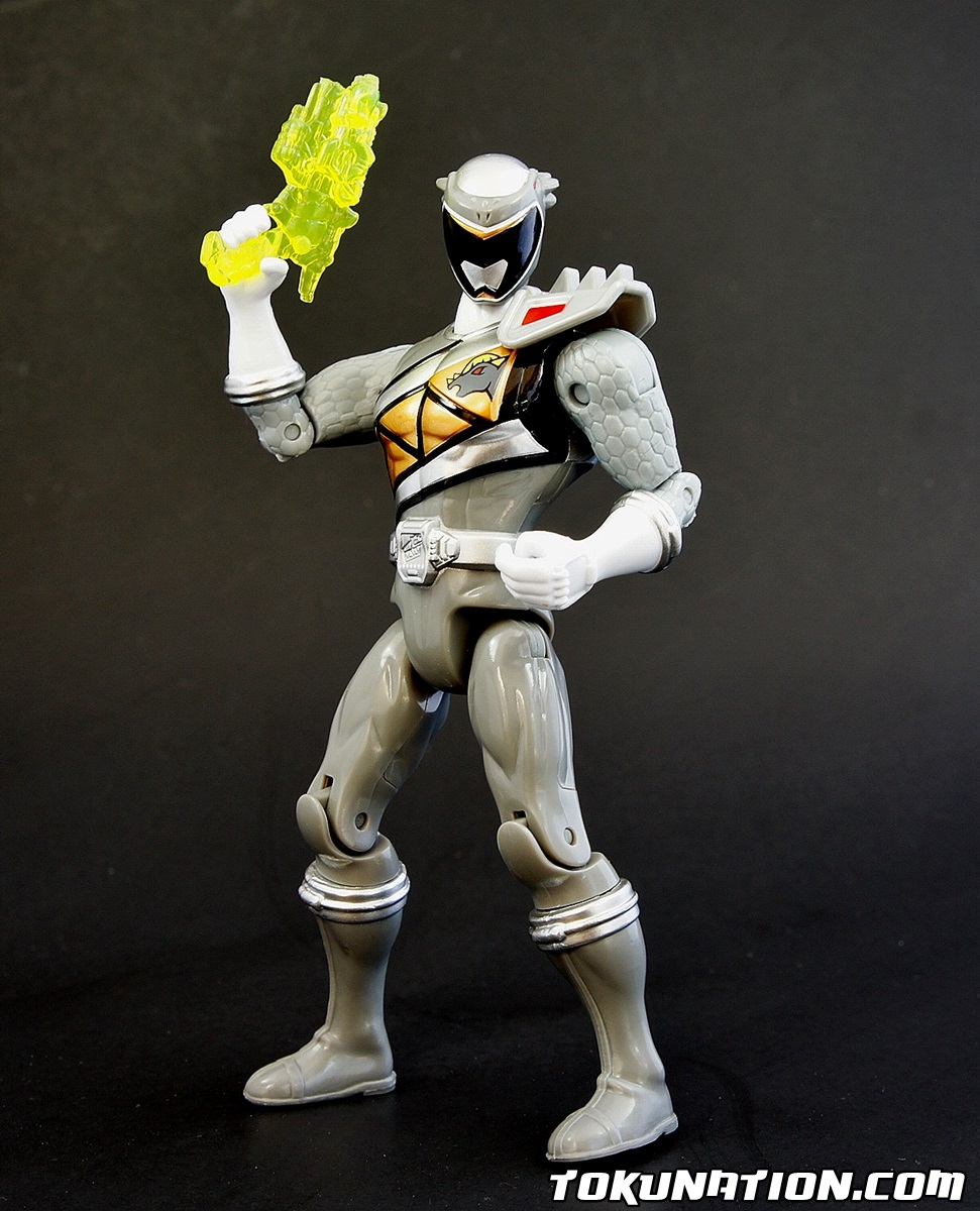 So let's break down in to the review right away shall we? The Figure The figure uses the standard Bandai America figure base that we've seen since Power Rangers Megaforce - there's obviously some molding differences from previous figures but the overall concept is exactly the same as it has been for the last two years. What really astonishes me in this figure is the detail on the head sculpt as well as the dinosaur patch on the chest. They look incredible! Painted very nicely and molded perfectly. I have no complaints when it comes to those - aside from the usual "the back of the figure isn't painted" complaint, but anymore that's standard fare for Bandai America. The downside I have for this figure is the fact that it is harder than you might think to get him to stand. The knee joints on my figure came looser than I expected, and having him try to strike a certain pose or two can result in a dino-disaster as the figure falls flat on his face or flat on his back. The feet don't seem to be even either - I don't know if I was just having user-error on it or if the boots are literally uneven, but it just wouldn't stand. Aside from that - the figure is perfect. The Accessories The Graphite Ranger comes with both the Dino Charge Morpher as well as the Dino Saber. It lists that he also comes with the Dino Comm, but let's be realistic - the thing is molded in to the body. I don't think that counts. The accessories are a neon-yellow translucent plastic. While I'm not necessarily a fan of neon-yellow, I am a sucker for translucent plastic, and these look beautiful. They are soft-plastic so they will eventually bend thanks to the power of the elements, but they look nice and they don't distract from the figure too much. It's kind of a pain to get him to hold the accessories - his hands are molded with barely-open fists, meaning you really have to pry those fingers apart to get the Dino Charge Morpher and the Dino Saber in there. Overall, no real complaints on the accessories. The Good