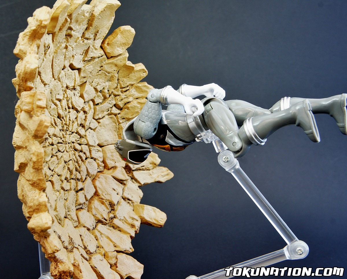 Overall I absolutely love this figure. He's simple (doesn't have as much flare with him as his Gold Ranger case-partner) but still fun. The paint job (on the front) is fantastic, and it's fun to pose him in various "HEAD SMASH" ways. If you're a fan of Zyuden Sentai Kyoryuger I recommend grabbing this guy to stand behind your S.H. Figuarts collection of the main six ... he's a definite plus to any collection. Buyer beware - he's short-packed in his case, and I've seen him go as high as $80 on the after market. I bought a full case from Entertainment Earth (I needed all the figures in it anyways) so that's always an alternative if you're not having any luck. Happy toy hunting!