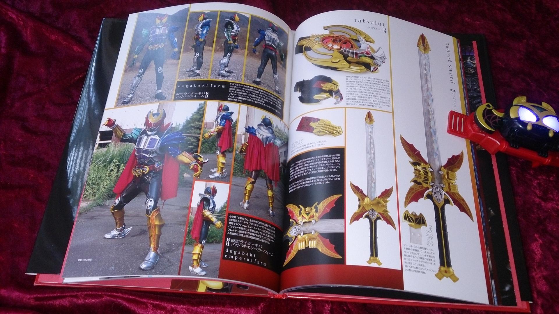 Includes HQ photos of all of Kiva, IXA, Arms Monsters and Movie/SP suits and gear, well documented. Highly recommended, if you can find it. Btw, vol.1 is Den-O. I don't personally have it, but it's just as good and hard to find.