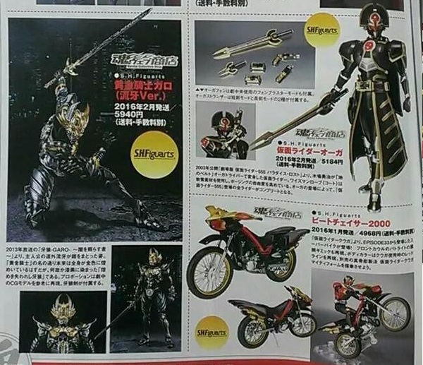Tamashii Web Exclusive February 2016 5940 yen S.H. Figuarts Kamen Rider Orga Tamashii Web Exclusive February 2016 5184 yen S.H. Figuarts Beat Chaser 2000 (Kuuga) Tamashii Web Exclusive January 2016 4968 yen