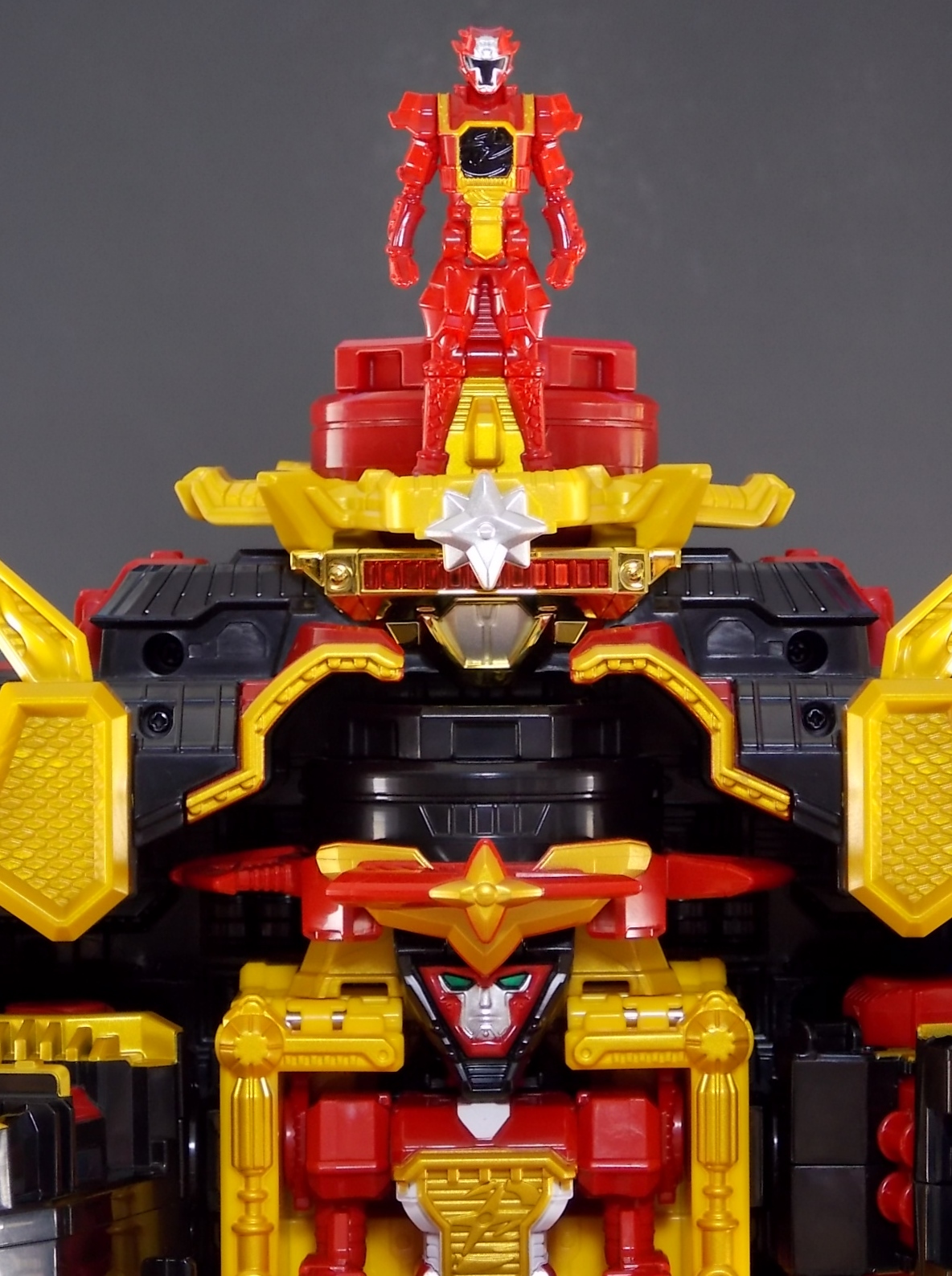 I like it probably because I've loved it when sentai's have a really really big mech that is a carrier in someway. I also like the color scheme of it the red, gold, black, and grey work well together.