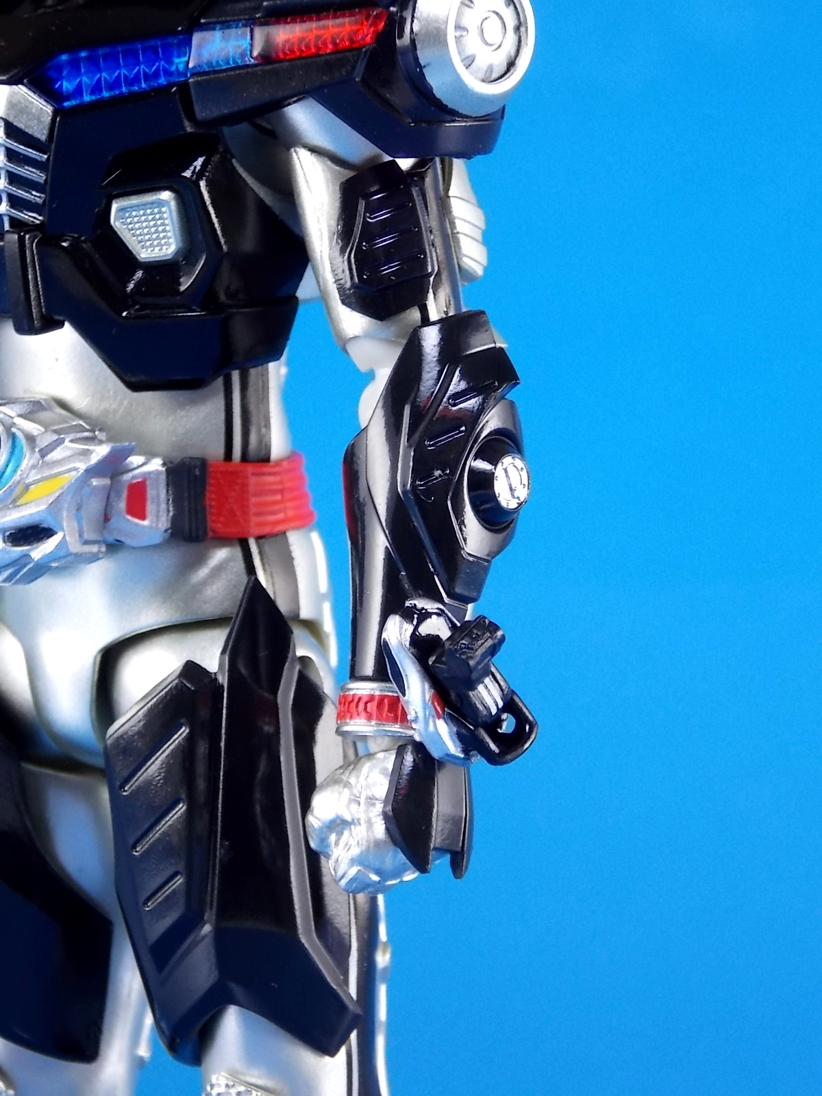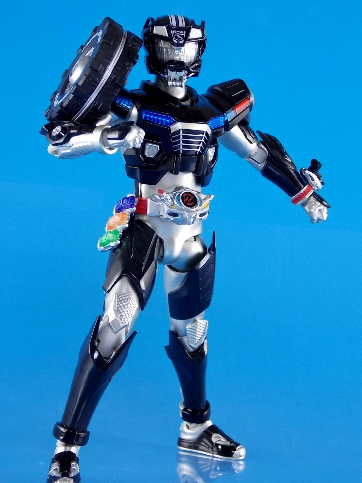 The first of many additional forms, S.H. Figuarts Kamen Rider Drive Type Wild joins the lineup from Kamen Rider Drive! Accessed with a fired up desire for justice, Shinnosuke first used this Type in episode 5. Packaging In the same vein as other Drive S.H. Figuarts releases, Type Wild opts for a very slim style box. More or less the new standard, I have little new to say about it. As with Drive, Mashin Chaser, & Mach the theme of this season carries over well to the new box and it's decorated with some very awesome artwork. Main Figure Drive Type Wild is the first new form released for Drive himself in this line. And as with the show itself each of his forms are quite unique. Type Wild is a slick black police themed heavy type of upgrade. On par with the like of Den-O Axe Form, Kiva Dogga, or Fourze Magnet States. It's great to see that the powerful bulky look of the show suit has transitioned to figure form well. From the lower torso down Type Wild is nearly identical in sculpt to Drive Type Speed aside from coloration, the new Driver readout, and the new hip guards. These guards are incredible too as they aren't static, they can be slid up or down to accommodate the movement of the hips. Everything else (aside from some minor parts) is totally new. The forearm guards and upper arm pads, the entire upper torso, head, and right shoulder assembly. The upper torso is of course where most of the love goes into this figure. It almost looks like a police hummer drove it's way through Drive's chest to create this look. And based on Tridoron Type Wilds' appearance, that's not too far off. The head likewise looks like a cross between a tank and football player with just a hint of a Halo Spartan thrown in for good measure. All in all these add up to give him a pretty beastly look. On the back side of things Drive Type Wild features much of the same gorgeous "undercarriage" detailing that Type Speed had, just painted up in glorious silver! The biggest thing to mention about this figure though is the new right shoulder assembly which features this Types base Tire, the Type Wild Tire. As I've detailed below in relation to the included Rumble Dump Tire accessory, this is an entirely new system of tires compared to what was engineered for Drive Type Speed. Rather than a segmented accessory that can break apart, and thus be interchanged, they've instead made the Wild Tire and any other "Wild only" tires in a new way. They're much thicker like offroad tread tires on an SUV, they simply plug over the shoulder and lock in with a small tab. Unfortunately the full cross compatibility that was featured in the Tire Koukan line is not present here. This Tire can also make it a little more difficult to get use out of the right arm, it's hinged to a degree but can't quite angle up as much as the gimmick figure could. Otherwise the entire figure's articulation is in the same basic layout as Type Speed. Accessories In a similar fashion to Kamen Rider Mach, Drive Type Wild actually comes with quite a bit, but is the first of the Drive retail releases so far to not include a 1st run bonus. The other recent retail release, Drive Type Dead Heat, did at least have an Aeon Store Exclusive bonus. Included with Type Wild are: 1 -Rumble Dump Tire. Unlike any of the tires that have come with previous Drive SHF releases, it can not break apart into several components. This tire as well as the above mentioned Type Wild Tire are completely different from those made to be compatible with Type Speed. While from an in universe perspective this makes sense, as Type Wild never used Funky Spike or Midnight Shadow etc, it sort of forgets the entire gimmick of the show and the retail toyline. Like Arms Change last year the gimmick was more fully realized for Tire Koukan. It's just sad that you can't even recreate the one time that Type Speed did use Rumble Dump. So in short Type Speed is incompatible with any Tire designed for Type Wild & Vice Versa. 1 - Rumble Smasher. The handheld drill weapon of this form, the Smasher can be stored on the tire while attached to Type Wild's shoulder or be held in either hand. 1 - each of the standard & flipped Rumble Dump Shift Car 1 - Mr. Belt Dump readout 1 - Handle Ken. However you choose to say it (ken or sword), this thing looks great. The handle does turn and you can peg flipped Shift Cars onto it as well. 4 - Sets of additional hands. 3 sets for use with Type Wild for various poses. And 1 set of hands for Drive Type Speed. Specifically so he can hold the Handle Ken. All in all a fantastic selection of accessories compared to any of the other figures in the line. Rivaled only by Mach, though it's odd that this one doesn't have a first run bonus. But I'm totally cool with that. Drive Type Wild is an all inclusive package. Final Thoughts A lot of people were upset that Figuarts Drive Type Speed didn't come with his Door Juu & Handle Ken and that they were instead included with Types Technic & Wild respectively. While I understand the frustration, I can't say I'm that surprised as this is exactly how their releases were handled with the TK figures. The inclusion of the Handle Ken with Type Wild as well as hands for Type Speed to use it, were like a bonus to me. Even without them. S.H. Figuarts Drive Type Wild was worth it. It's a fantastic new figure with a good number of accessories already. For those of you who bought it just to arm up for Type Speed, I'd say you should take a second look at Wild. You won't be disappointed.