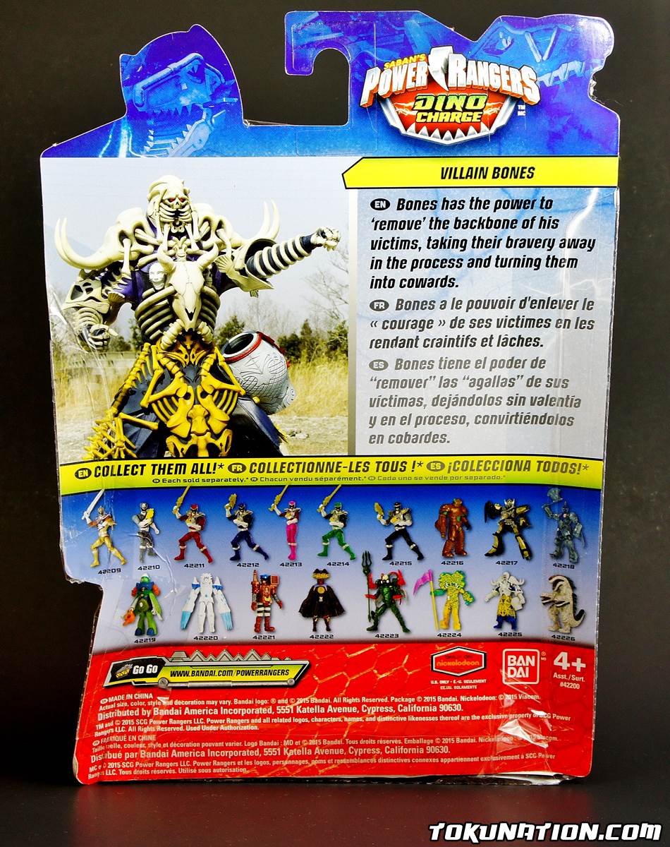 The Power Rangers Dino Charge five-inch toy line continues on with more villains! This is an important event in the franchise's toy line history as this is the first time in nearly a decade or so since we've received various "monsters of the day" as actual action figures. With these figures trickling out we managed to grab them all - and we're going to review each and every single one of them! The Figure Let's just start off with what everyone is curious about - articulation. Bones features 6.250 points of articulation. His arms move up, down, forward, and backwards. He has two shin joints that allow for 360 degree movement. And the ".250" comes from the head as it does move but due to the shoulder gear only about 5 to 10 degrees in either direction. However this figure is absolutely gorgeous. The sheer amount of detailing in the mold is astounding. Could it be better? Yeah, if it was a S.H. Figuart probably. But for Bandai America this thing is as close to masterpiece sculpting as you'll ever see. The head sculpt is damn impressive, to the point that the red eyes even have black pupils put on. What this figure lacks in articulation it absolutely makes up in how it looks. It is easily one of the most impressive looking figures out of Bandai America in the last 5 years if not longer. The Accessory Bones comes with his bucket'o'bones, minus the bones. When he pulls out someone's backbone it goes in to this bucket. It is highly detailed (but not painted) and aside from a piece or two of leftover melted plastic it looks fantastic. I was half tempted during the gallery to rip off some Vivix body parts and put them in there for show. The bucket attaches via a rough 3 to 4mm peg (not a 5mm peg) and can spin all around. The Good!
