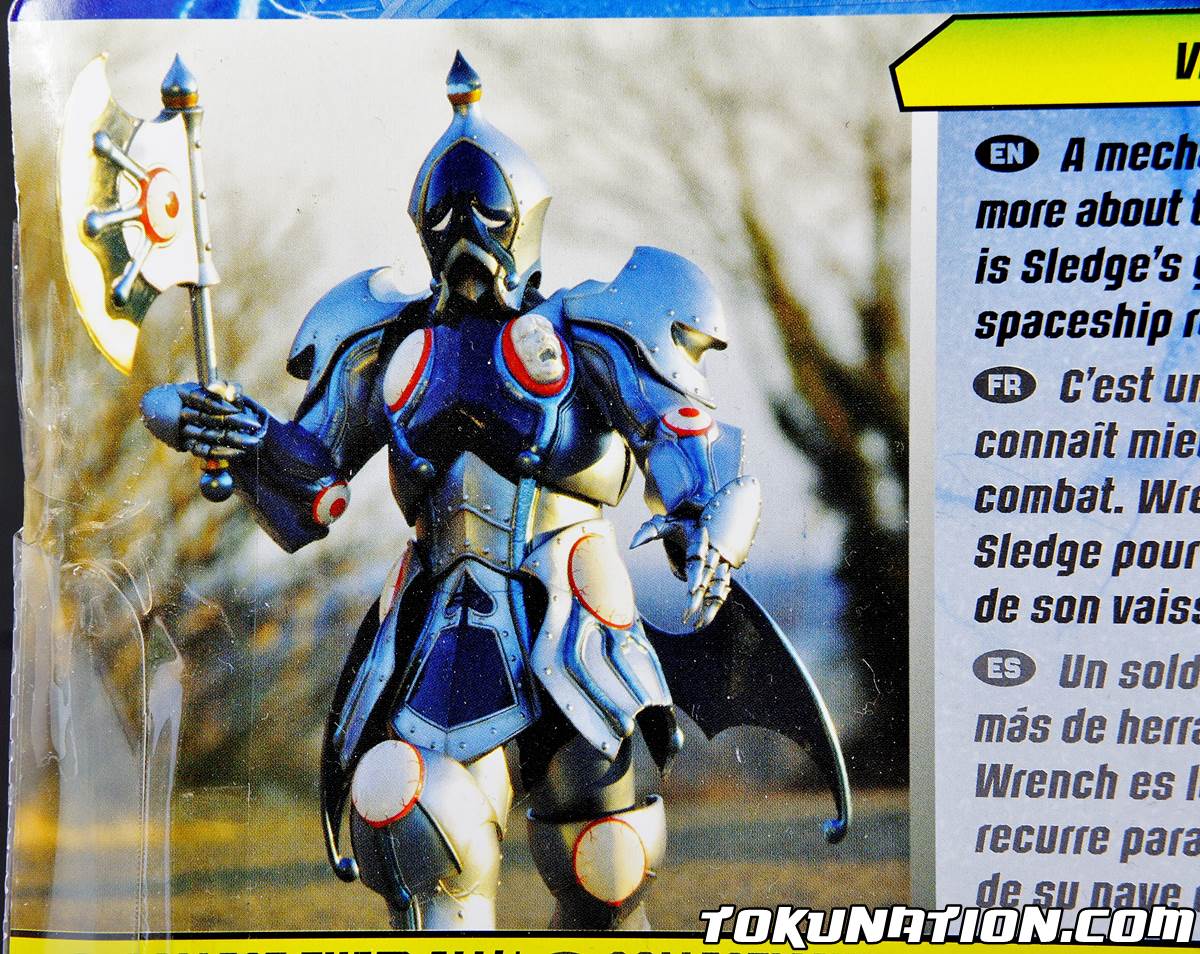 Released in the first wave of villain figures, Wrench comes with his signature hand-axe weapon and with a ton of detailing and kibble attached to his body. Originally hard to find (but not so much now), this figure helps round out the generals under Sledge ... but we're still waiting on you, Poisandra! Let's take a deeper look at the figure. The Figure Let me start off by saying that once again Bandai America has outdone themselves with a BEAUTIFUL looking figure! I mean seriously - this guy's level of detail (while missing in paint apps) in the sculpting is gorgeous. They've really outdone themselves on the 5" scale in terms of how the figure looks and feels. As always, the paint apps leave a little bit to be desired but they are not as blatantly missing on some of the other figures released in this assortment. The articulation is pretty good - you have a head on a ball joint (but it cannot move sideways, only left and right), full motion on the arms (at least to a point where the shoulder kibble gets in the way), elbow joints, full motion leg movement (again with kibble), and ankle joints - yes, ankle joints. Sadly, there are no knee joints in this figure. That's not a huge miss mostly because of the kibble all over the figure that would get in the way of any meaningful pose anyways. Overall - I love Wrench, and he's my favorite figure from this entire assortment (yes, even beating out Bones who just looks badass). The Accessories He comes with his hand-axe, and yes it has no paint apps (at this point should we even talk about it? None of the 5" figures have painted accessories unless they're packaged in the Legacy line). It serves its purpose fairly well. The Good