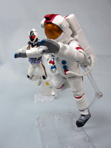 Bandai's Tamashii website has updated with a closer look at the forthcoming Tamashii Web Exclusive S.H. Figuarts Spacesuit (OSTO) figure from Kamen Rider Fourze. The images also include the figure alongside Fourze himself and the jet-pack effect accessory included to be used with the Rider.