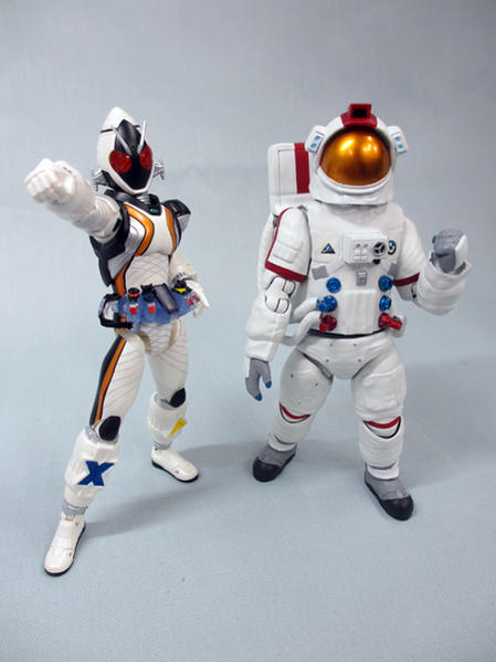 Bandai's Tamashii website has updated with a closer look at the forthcoming Tamashii Web Exclusive S.H. Figuarts Spacesuit (OSTO) figure from Kamen Rider Fourze. The images also include the figure alongside Fourze himself and the jet-pack effect accessory included to be used with the Rider.