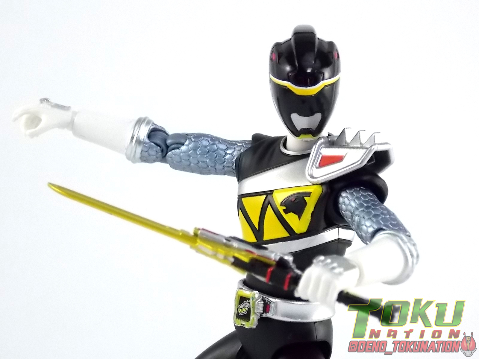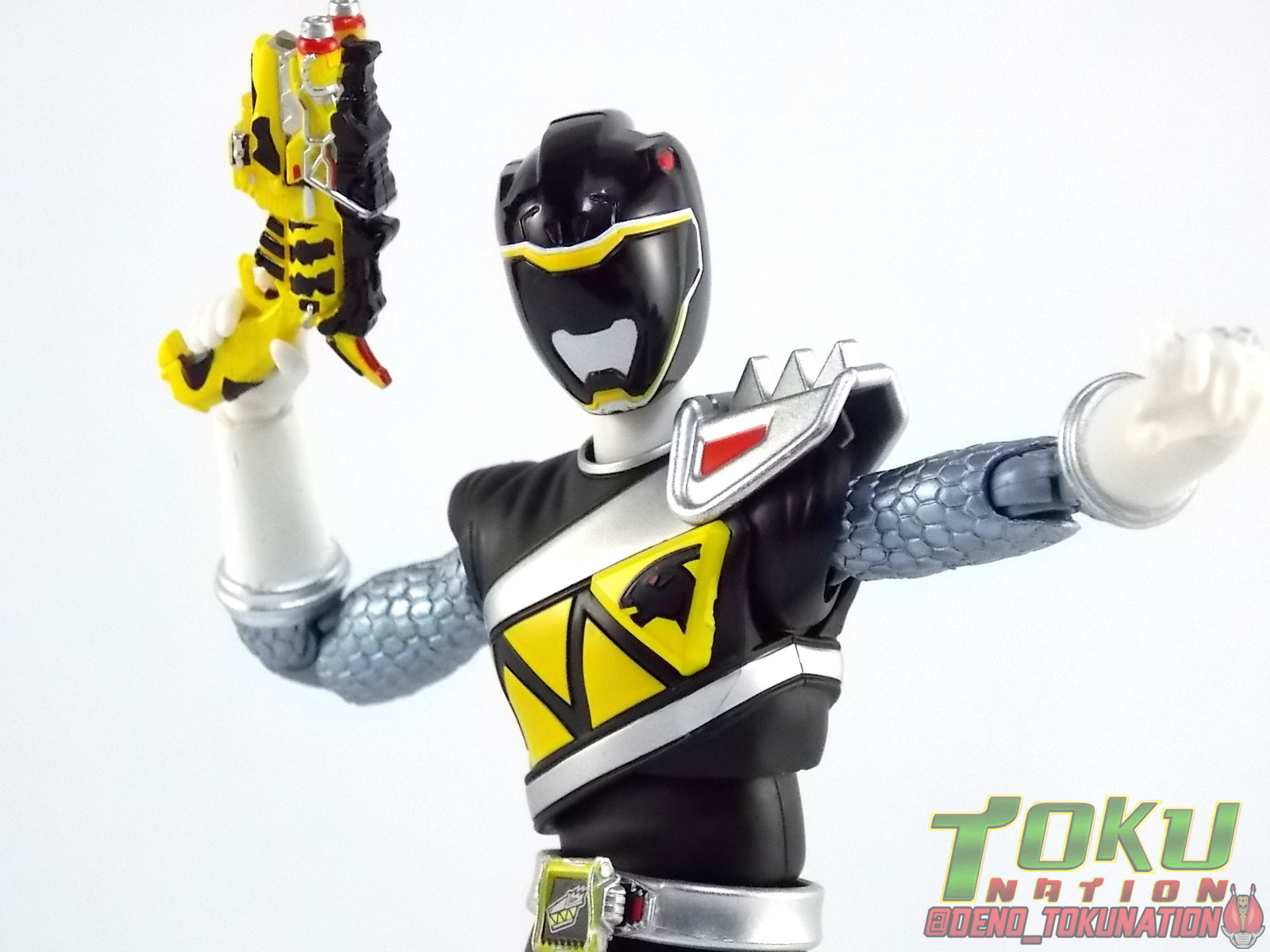 The Horned Brave! We're picking back up where we left off for TokuNation's Gallery 2.0 do-overs with and we're back with another look at Zyuden Sentai Kyoryuger! And this time we're doing S.H. Figuarts Kyoryu Black & Kyoryu Pink Gallery 2.0! ** A majority of this review will be identical to my Kyoryu Blue & Green gallery 2.0 & review. These figures are nigh identical to those, for the most part, aside from accessories. Packaging Kyoryu Black & Pink come in the same interesting box that Kyoryu Red did. Though Sentai Figuarts haven't been around nearly as longs as Rider ones, they initially started out with the same boring box design but Kyoryuger figuarts are much nicer. Like the Kyoryu Blue & Green set this one is also a Tamashii Web Exclusive, so it's a windowless box. Main Figure Kyoryu Black feature the same base body as Kyoryu Red/Green/Blue. And wow what a nice one it still is. The Kyoryuger designs are some of the more busy modern sentai suits we've had in a while, and I mean that in a good way. Luckily the busyness, in fact the more armored nature of this design, lends itself that much more to being a toy. Where Riders Metal Heroes & the like have the advantage of armored costumes and less apparent articulation cuts, sentai costumes are basically fabric. So reproducing that in articulated toy form can be difficult. But the Kyoryugers really pull it off. The lower half of the body is simple stuff. Come up to the belt though to check out glorious detail on the Mobuckle. It's hard to see at that scale but the Kyoryuger emblem and even the eyes on the sides of the buckle are fully painted. The Mobuckle can also rotate to the side to simulate it's functionality without opening. At this scale though they couldn't engineer it to do that. But that's okay as the included Zyudenchi is tiny. Further up brings us to the exquisitely molded arm details. Rather than go for a fishnet style paint job on the arms to get the scaly feel of the costume, Bandai has instead sculpted the detailing into the arms themselves! Thus creating a much more polished look that works better than I ever thought it would. The chest and head though are where the figures really knock it out of the park. As I said the more armored nature of these figures lend themselves well to the toy makeover. The chest emblems, sash, shoulder, & backs are all gloriously detailed and fully painted. The Parasagun emblem in particular looks great. Now onto Kyoryu Pink we have much of the same awesomeness. The body is of course different with a smaller build and new parts like the skirt and chest. However unlike previous female sentai releases the skirt already has some side cuts in it but there's no alternate one include for wider posing. Which is a bit unfortunate as herdefault skirt can actually be a bit restrictive. The overall design is just as nice as what we got with Kyoryu Black. All the same features a present here. The excellent arm details, headsculpt, and paint applications (like the Dricera emblem) just knock it out of the park. And as for posability, well see for yourself below. Kyoryu Black & Pink (much like Red, Green, & Blue) can assume any of their iconic poses with ease and pretty great balance as well. The shoulder armor doesn't impact articulation either thanks to the hinge on the pad. So these two have great open ranges of movement at their disposal. Again the only issue with Pink is her skirt. Her smaller stature actually helps to center her gravity a bit lower so I feel like despite being so lite weight she tends to balance very well. One oddity though is that even though Bandai went to the trouble to create a new smaller body for Kyoryu Pink, they've never reused it. This female molding could have very easily been re purposed for Kyoryu Violet II or Kyoryu Cyan II. But with Sentai figuarts being mostly dead at this point it isn't terribly surprising that they never did that. Accessories Kyoryu Black & Pink also come loaded down with a basically perfect assortment of what you need. Each of them come with: 1 - Gaburevolver. The trademark weapon/henshin device of the Kyoryugers is done true justice here. You'd think at this size it would be missing paint apps but frankly it's perfect. It's just incredible how perfectly to scale this thing is painted compared to the real thing. Now the barrel doesn't spin nor can it open up on the end to accept Zyudenchi, but considering how small the Zyudenchi for these figuarts are that's fine. Once you got one in I'm sure it would never come out again. 1 - Generic Zyudenchi. Though by association these should be Parasagun's & Dricera's Zyudenchi respectively, they simply aren't painted correctly. Though to be fair none of the 6 Kyoryuger Figuarts have Zyudenchi with entirely accurate colors. But that's mostly because at this scale it's nigh impossible to paint properly. So some general colors are slapped on so you get a feel for it. Again this thing is infinitesimally small and I won't use it for anything again ever. I'm fine with it being kind of generic. 1 - Gaburicalibur. Again this is a wonderfully detailed piece. Right down to the most minor details this is a perfect recreation of the show prop. Again it does not open or accept batteries and I'm totally okay with that. What I'm not okay with however is that the Gaburevolver & Gaburicalibu do not combine into the Gaburicannon. Nor is a separately molded version of it included with any figuart. 4 - sets of additional hands. For your general needs. You get one set of Revolver hands, one set of Calibur hands, and one set of splayed out roll call pose hands. Kyoryu Pink also gets 2 open palm hands while Kyoryu Black only gets 1. However in Kyoryu Pink's case I have to make note that for some reason they skimped and just repacked her with male hands rather than going for a smaller sculpt. 1 - Armed On Arm. A great inclusion here is the option to display either of your figures in their Armed On forms! To use these you need to (prett