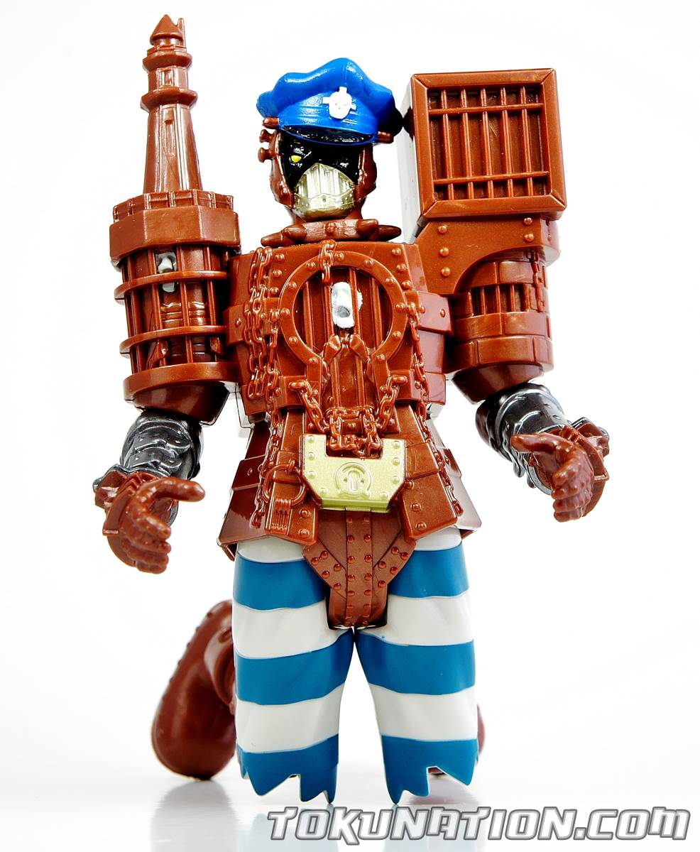 Ladies and gentlemen, I present to you a gallery that I purposely held back as to not muddy up the crystal clear waters of our Toku Toy Box give away. I present to you today the gallery for the Power Rangers Dino Charge 5" figure known as Slammer. The Figure Let's start with the good points. It has incredible detail! Again, as always, Bandai America grabs Hasbro by the balls and goes "WE CAN SCULPT JUST AS GOOD IF NOT BETTER THAN YOU!". Except this time, they grabbed them, yelled that statement, and then tripped while walking out of the office down a stair well which caused them to hit a fire alarm which turned all the sprinklers on in the office resulting in a fine from the city as well as a fine for all the damaged office furniture. The sculpting is great. But it's wasted on a toy that just isn't good. The figure sports a whopping 7 points of total articulation. I'm not sure if the legs can move outwards side to side because the metal skirt is blocking his path. He also suffers from "Sledge brown", meaning they had left over paint from Sledge and just covered this guy in it. His head can spin around 360 degrees, so you can torment any small children you have by saying Slammer is possessed. Here's the deal - the figure LOOKS great in sculpting and I can forgive a lackluster paint job - trust me, I collect Bandai America toys, I'm happy when a figure is more than two colors (looking at you Dino Cycle figures). But this guy's articulation mimics a homemade cosplay costume and in this day and age it's kind of laughable if you get that in a line that does feature sometimes up to 17 points of articulation. The Accessories He doesn't come with any. But if he did, I'm sure they'd be pretty lackluster too. The Good