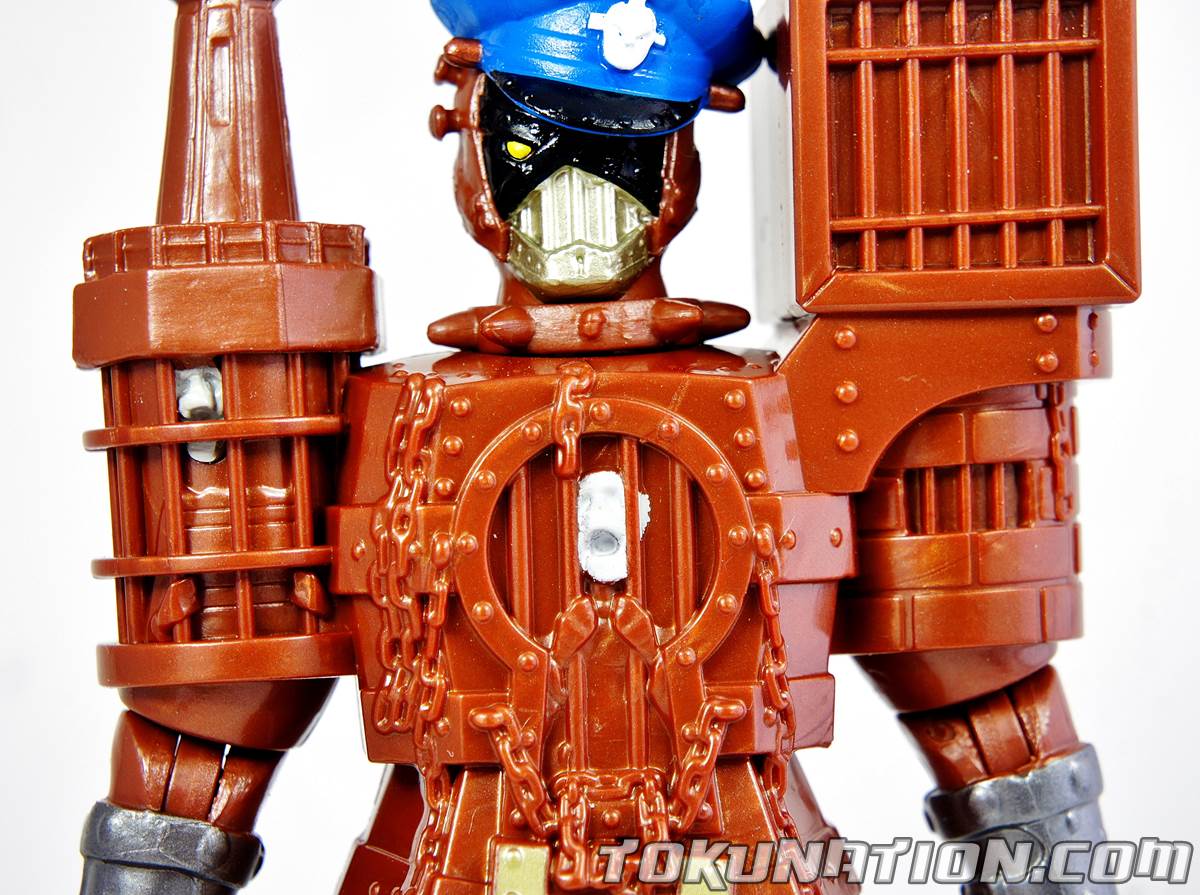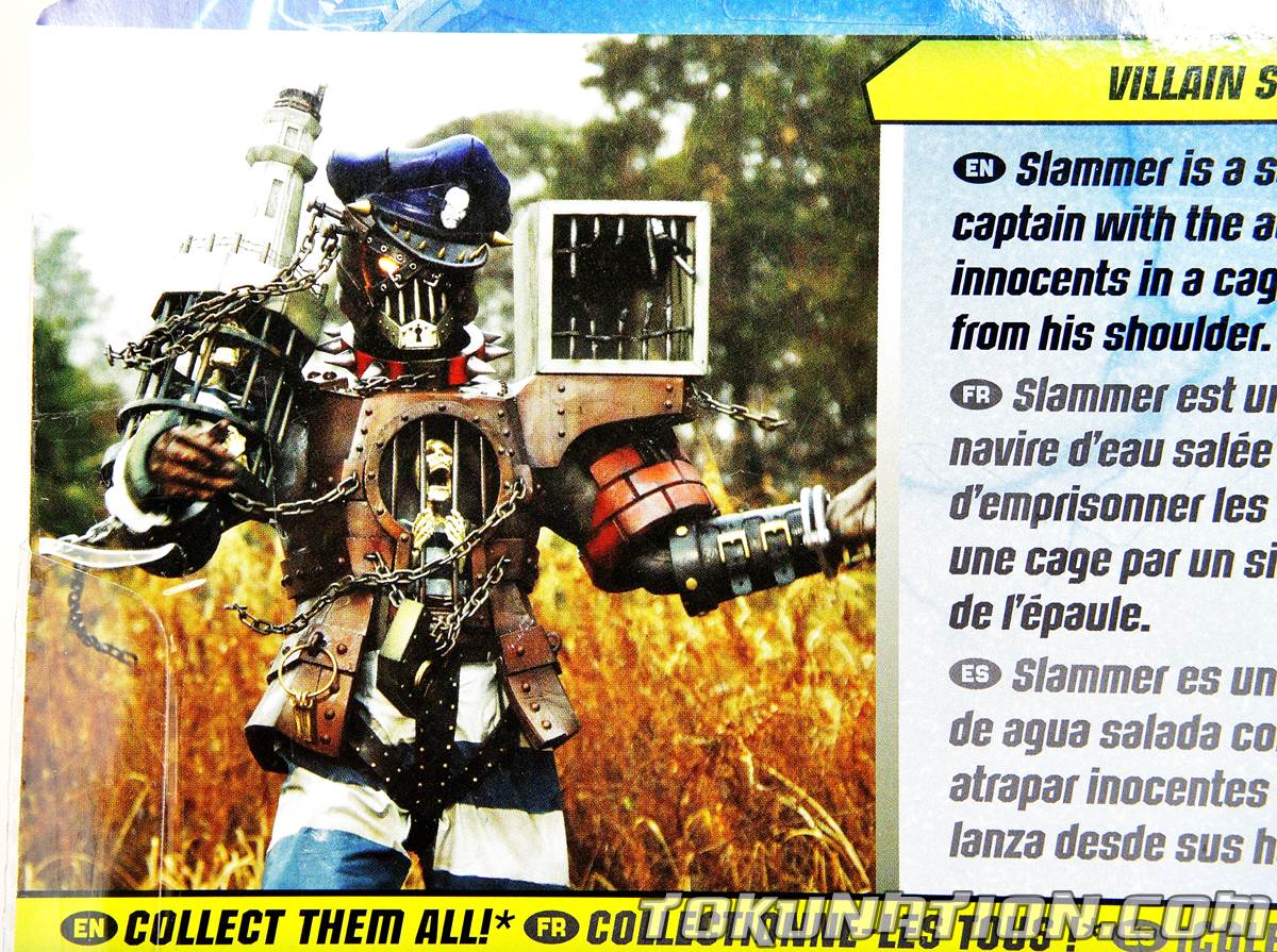 Ladies and gentlemen, I present to you a gallery that I purposely held back as to not muddy up the crystal clear waters of our Toku Toy Box give away. I present to you today the gallery for the Power Rangers Dino Charge 5" figure known as Slammer. The Figure Let's start with the good points. It has incredible detail! Again, as always, Bandai America grabs Hasbro by the balls and goes "WE CAN SCULPT JUST AS GOOD IF NOT BETTER THAN YOU!". Except this time, they grabbed them, yelled that statement, and then tripped while walking out of the office down a stair well which caused them to hit a fire alarm which turned all the sprinklers on in the office resulting in a fine from the city as well as a fine for all the damaged office furniture. The sculpting is great. But it's wasted on a toy that just isn't good. The figure sports a whopping 7 points of total articulation. I'm not sure if the legs can move outwards side to side because the metal skirt is blocking his path. He also suffers from "Sledge brown", meaning they had left over paint from Sledge and just covered this guy in it. His head can spin around 360 degrees, so you can torment any small children you have by saying Slammer is possessed. Here's the deal - the figure LOOKS great in sculpting and I can forgive a lackluster paint job - trust me, I collect Bandai America toys, I'm happy when a figure is more than two colors (looking at you Dino Cycle figures). But this guy's articulation mimics a homemade cosplay costume and in this day and age it's kind of laughable if you get that in a line that does feature sometimes up to 17 points of articulation. The Accessories He doesn't come with any. But if he did, I'm sure they'd be pretty lackluster too. The Good