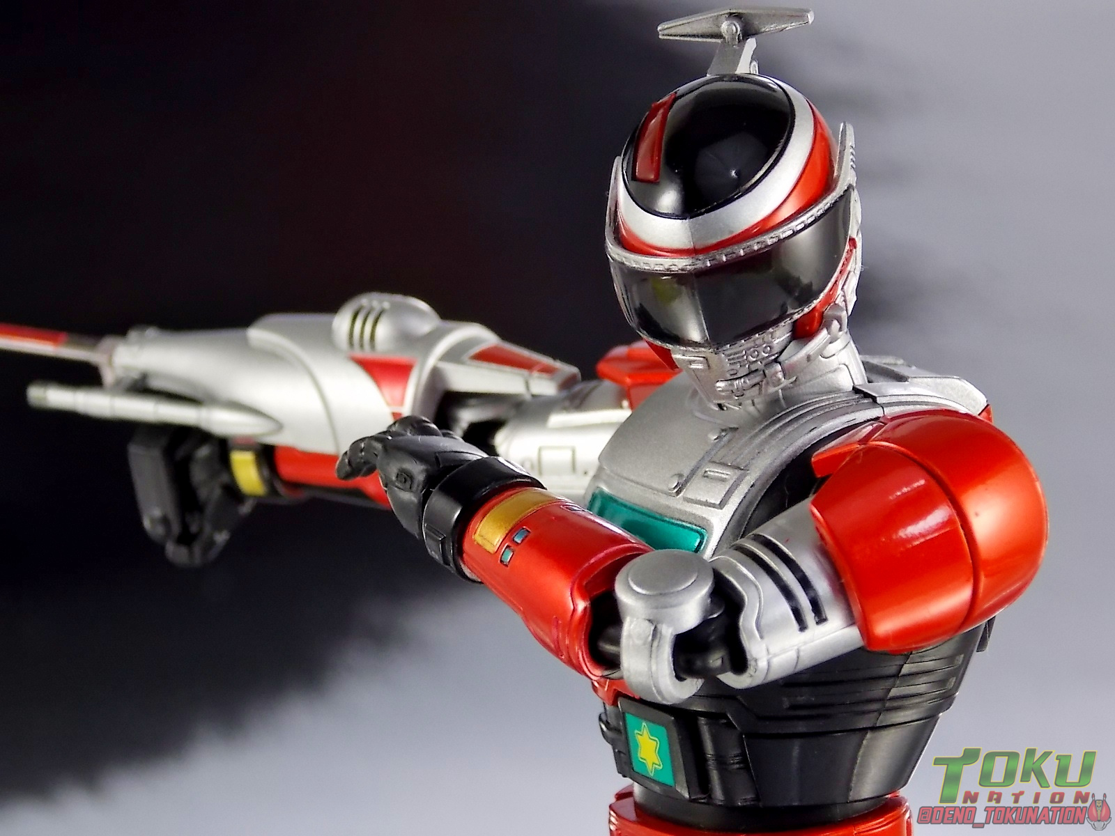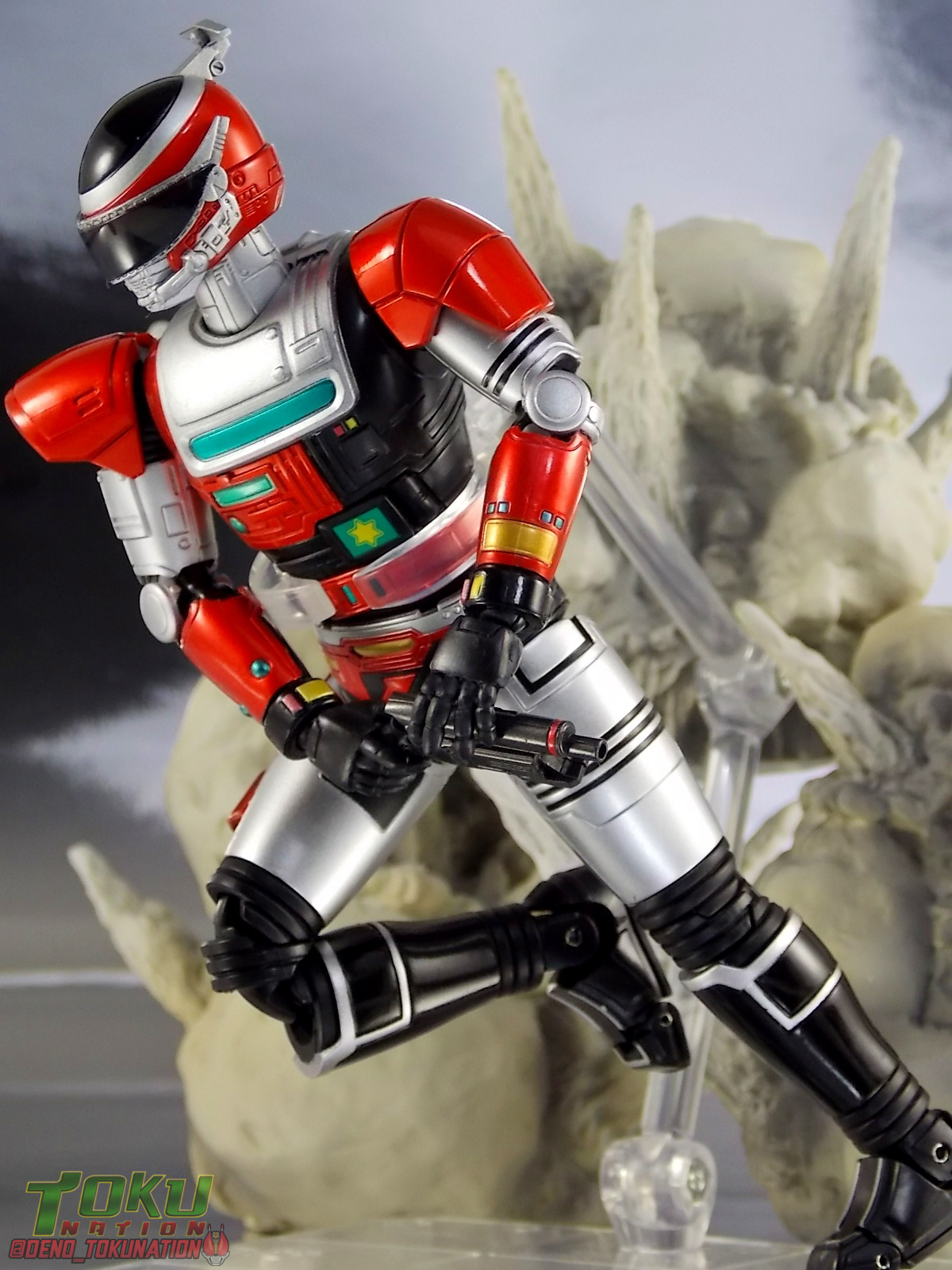 At long last one of the great toku heroes of the '90s joins the S.H. Figuarts line! Hailing form the classic Metal Hero series Tokkei Winspector, today we look at S.H. Figuarts Fire! For a little background on the series (which if you know me you know it's one of my all time favorites) Tokkei Winspector was produced from 1990-1991 but featured a plot set in the near future of 1999. The Tokyo Metropolitan Police Department, faced with rising crime & technological advancements aiding crime, creates Winspector as a special operations unit. One that can tackle threats beyond the capabilities of normal Tokyo MPD officers. Uniquely that meant that Winspector more often than not faced the threat of average criminals or normal people in extraordinary situations rather than a real villain of any kind. No evil organizations here. It was a refreshing premise followed up upon by it's successor as well. Our main hero is Ryoma AKA Fire, a highly skilled police officer and the only human member of the trio. He's helped by his robotic but heroic teammates Bikel & Walter. This series also marked the beginning of a sub-series within Metal Heroes known as the Rescue Hero Trilogy. Winspector would be followed up by Tokkyu Shirei Solbrain and finally Tokusou Exceedraft. Interestingly the link between these 3 series is Winspectors' commanding officer Shunsuke Masaki. Not only is he the founder & chief of Winspector, but after the series ended and the unit was sent to France he went on to found Solbrain as their successors in Tokyo. The 2 teams would eventually team up and Ryoma now known as Knight Fire would become a recurring member of Solbrain's cast. The 3rd series, Exceedraft, would also feature Cheif Masaki to a much lesser extent as the former chief of Winpector & Solbrain, as it was originally intended to be the start of a new continuity of Metal Heroes. ![]() Interestingly enough Chief Masaki's actor, Hiroshi Miyauchi, has appeared through out all of Toei's major tokusatsu franchises as well. Besides his involvement with the Rescue Hero Trilogy he was also the actor who portrayed Kamen Rider V3, Big One, Chief Miura in Ohranger, Zubat, & Aoranger! Now on to the figure you're here for! Packaging I always love it when a new S.H. figuarts subline begins because we get a sort of refresh on the packaging we've gotten used to. The slim style box is here to stay it seems and I'm totally fine with that. In this case Fire gets a nice prominent shot across the bottom of the box with the Winspector logo printed on the plastic window. It feels like there's less room for stock photography on the back of Fire's box. But we aren't buying it for those photos. I do however really like the monotone art on the spine of the box. Packed in with Fires' instructions is also a flyer advertising the upcoming Tamashii Web Exclusive S.H. Figuarts Bikel! That's 2 out of 3 team members down. Main Figures Refreshingly S.H. Figuarts Fire is an all new mold. which is the other best part about a new subline. Bandai has had some missteps in the past with Metal Hero figuarts but it looks like they've finally begun to course correct. We've finally gotten past broken wrists on the Space Sheriffs and the wonky barely functional hips on the B-Fighters. Fire shows us what Bandai can do with his unique design. While the lower half of his body doesn't have much going on we're back to nice flat feet, no curved clown shoes like the B-Fighters. We also get fully functional hips with a decent range of outward and forward/back motion. Far more than previous Metal Hero releases have been capable of. Both Bikel & Walter will feature the same legs. On Fire's right hip is a holster to carry the included Daytric M2. Now the upper body has some truly incredibly detailing. Fire features some really exquisite & intricate technological molding all over his abdomen, chest & arms. It's just superb how they've managed to recreate the show suit. While anything being taken from life-size down to this scale will undoubtedly miss some things, as far as broad strokes are concerned Fire is one of the most detailed figuarts to date. Right down to the crisp paint apps on the various panels and switches molded into his body as well as the really sharp looking Winspector logo on his abs. Much like the torso the arms also have nice asymmetrical detailing, most prominent in the shoulder pads. I don't know why but those shoulder pads have always drawn me to this design. The same way that a Zaku II from Mobile Suit Gundam manages to look just so classically good. My one gripe with the arms, and this may just be isolated to my Fire, is that the elbow pads will fall off for any reason or no reason at all. Perhaps the best feature of this figure is the just dead on perfect helmet. When Ryoma's Crush Tector suit begins to bond to him during transformation it starts with the body armor forming first. The helmet is the last component. When it appears on his head, his human eyes are still visible until a slit drops down with the bright yellow robotic eyes of his helmet. Then the semi-transparent visor slides down over these. This gives off a look very reminiscent of many Metal Heroes through out the franchise that would feature glowing eyes inset glowing eyes. The toy replicates this bit of the transformation by having a hinged visor. You can display him however you wish but traditionally Fire's visor would be down. Though this is probably the best job Bandai has ever done of making the visor just transparent enough to make the eyes appear to be glowing behind it even when it's down. Fire is just an excellently sculpted & engineered figure. I mean it when I say this is the best Metal Hero figuart to date. However there are numerous small details missing. For every panel line or indicator that is painted there's at least another that isn't Like the the 3 square indicators behind Fire's com link that are unpainted on the figure. The nice thing about this figure is that is also fina