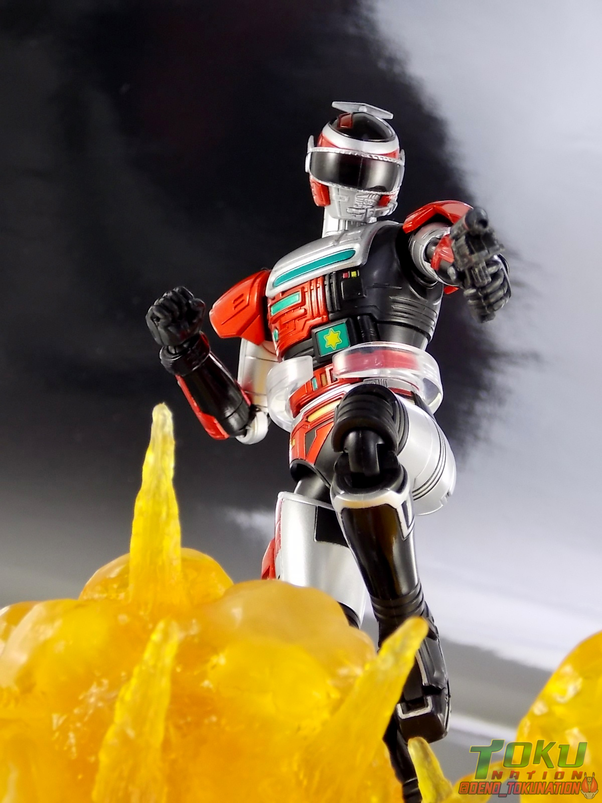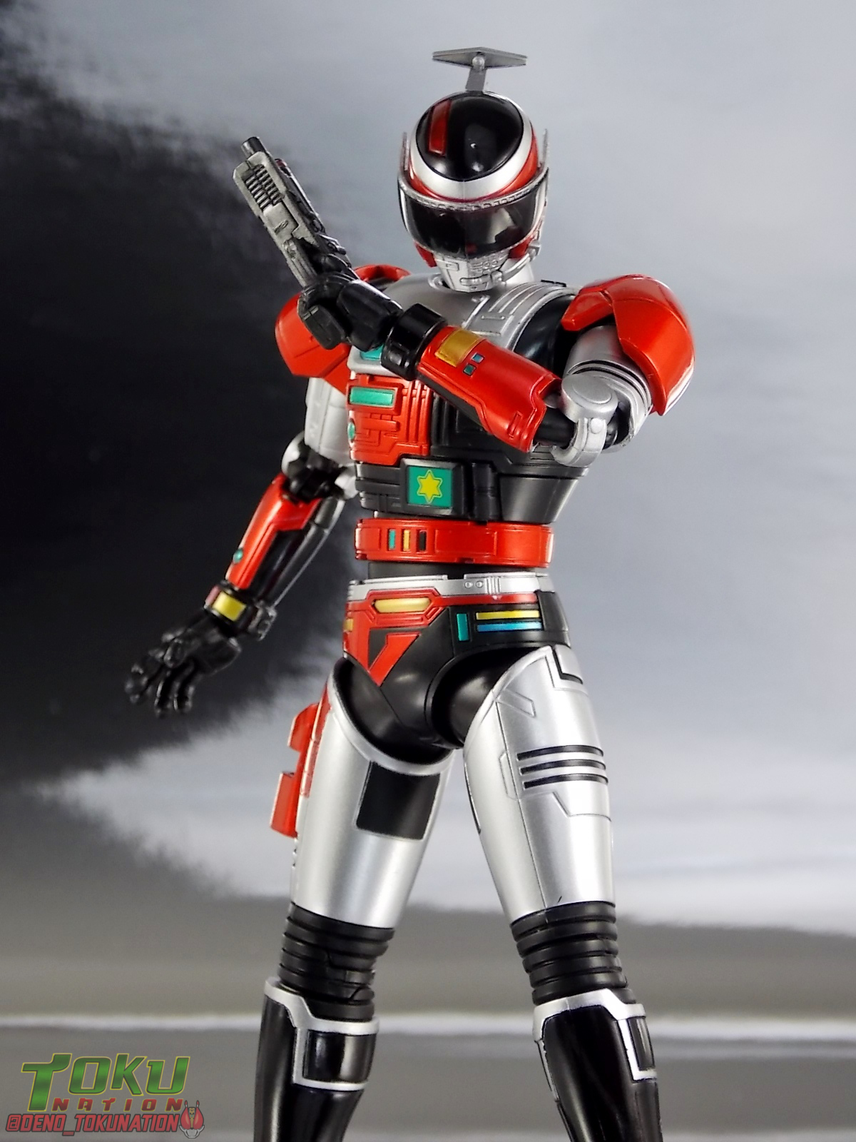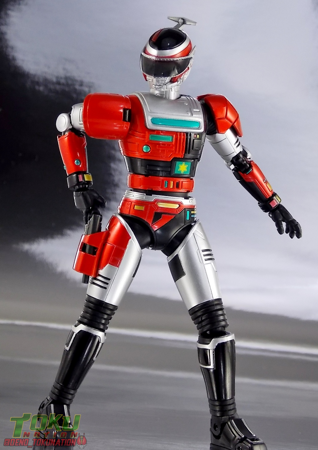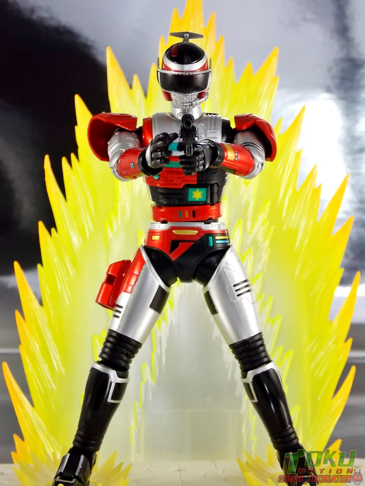 At long last one of the great toku heroes of the '90s joins the S.H. Figuarts line! Hailing form the classic Metal Hero series Tokkei Winspector, today we look at S.H. Figuarts Fire! For a little background on the series (which if you know me you know it's one of my all time favorites) Tokkei Winspector was produced from 1990-1991 but featured a plot set in the near future of 1999. The Tokyo Metropolitan Police Department, faced with rising crime & technological advancements aiding crime, creates Winspector as a special operations unit. One that can tackle threats beyond the capabilities of normal Tokyo MPD officers. Uniquely that meant that Winspector more often than not faced the threat of average criminals or normal people in extraordinary situations rather than a real villain of any kind. No evil organizations here. It was a refreshing premise followed up upon by it's successor as well. Our main hero is Ryoma AKA Fire, a highly skilled police officer and the only human member of the trio. He's helped by his robotic but heroic teammates Bikel & Walter. This series also marked the beginning of a sub-series within Metal Heroes known as the Rescue Hero Trilogy. Winspector would be followed up by Tokkyu Shirei Solbrain and finally Tokusou Exceedraft. Interestingly the link between these 3 series is Winspectors' commanding officer Shunsuke Masaki. Not only is he the founder & chief of Winspector, but after the series ended and the unit was sent to France he went on to found Solbrain as their successors in Tokyo. The 2 teams would eventually team up and Ryoma now known as Knight Fire would become a recurring member of Solbrain's cast. The 3rd series, Exceedraft, would also feature Cheif Masaki to a much lesser extent as the former chief of Winpector & Solbrain, as it was originally intended to be the start of a new continuity of Metal Heroes. ![]() Interestingly enough Chief Masaki's actor, Hiroshi Miyauchi, has appeared through out all of Toei's major tokusatsu franchises as well. Besides his involvement with the Rescue Hero Trilogy he was also the actor who portrayed Kamen Rider V3, Big One, Chief Miura in Ohranger, Zubat, & Aoranger! Now on to the figure you're here for! Packaging I always love it when a new S.H. figuarts subline begins because we get a sort of refresh on the packaging we've gotten used to. The slim style box is here to stay it seems and I'm totally fine with that. In this case Fire gets a nice prominent shot across the bottom of the box with the Winspector logo printed on the plastic window. It feels like there's less room for stock photography on the back of Fire's box. But we aren't buying it for those photos. I do however really like the monotone art on the spine of the box. Packed in with Fires' instructions is also a flyer advertising the upcoming Tamashii Web Exclusive S.H. Figuarts Bikel! That's 2 out of 3 team members down. Main Figures Refreshingly S.H. Figuarts Fire is an all new mold. which is the other best part about a new subline. Bandai has had some missteps in the past with Metal Hero figuarts but it looks like they've finally begun to course correct. We've finally gotten past broken wrists on the Space Sheriffs and the wonky barely functional hips on the B-Fighters. Fire shows us what Bandai can do with his unique design. While the lower half of his body doesn't have much going on we're back to nice flat feet, no curved clown shoes like the B-Fighters. We also get fully functional hips with a decent range of outward and forward/back motion. Far more than previous Metal Hero releases have been capable of. Both Bikel & Walter will feature the same legs. On Fire's right hip is a holster to carry the included Daytric M2. Now the upper body has some truly incredibly detailing. Fire features some really exquisite & intricate technological molding all over his abdomen, chest & arms. It's just superb how they've managed to recreate the show suit. While anything being taken from life-size down to this scale will undoubtedly miss some things, as far as broad strokes are concerned Fire is one of the most detailed figuarts to date. Right down to the crisp paint apps on the various panels and switches molded into his body as well as the really sharp looking Winspector logo on his abs. Much like the torso the arms also have nice asymmetrical detailing, most prominent in the shoulder pads. I don't know why but those shoulder pads have always drawn me to this design. The same way that a Zaku II from Mobile Suit Gundam manages to look just so classically good. My one gripe with the arms, and this may just be isolated to my Fire, is that the elbow pads will fall off for any reason or no reason at all. Perhaps the best feature of this figure is the just dead on perfect helmet. When Ryoma's Crush Tector suit begins to bond to him during transformation it starts with the body armor forming first. The helmet is the last component. When it appears on his head, his human eyes are still visible until a slit drops down with the bright yellow robotic eyes of his helmet. Then the semi-transparent visor slides down over these. This gives off a look very reminiscent of many Metal Heroes through out the franchise that would feature glowing eyes inset glowing eyes. The toy replicates this bit of the transformation by having a hinged visor. You can display him however you wish but traditionally Fire's visor would be down. Though this is probably the best job Bandai has ever done of making the visor just transparent enough to make the eyes appear to be glowing behind it even when it's down. Fire is just an excellently sculpted & engineered figure. I mean it when I say this is the best Metal Hero figuart to date. However there are numerous small details missing. For every panel line or indicator that is painted there's at least another that isn't Like the the 3 square indicators behind Fire's com link that are unpainted on the figure. The nice thing about this figure is that is also fina