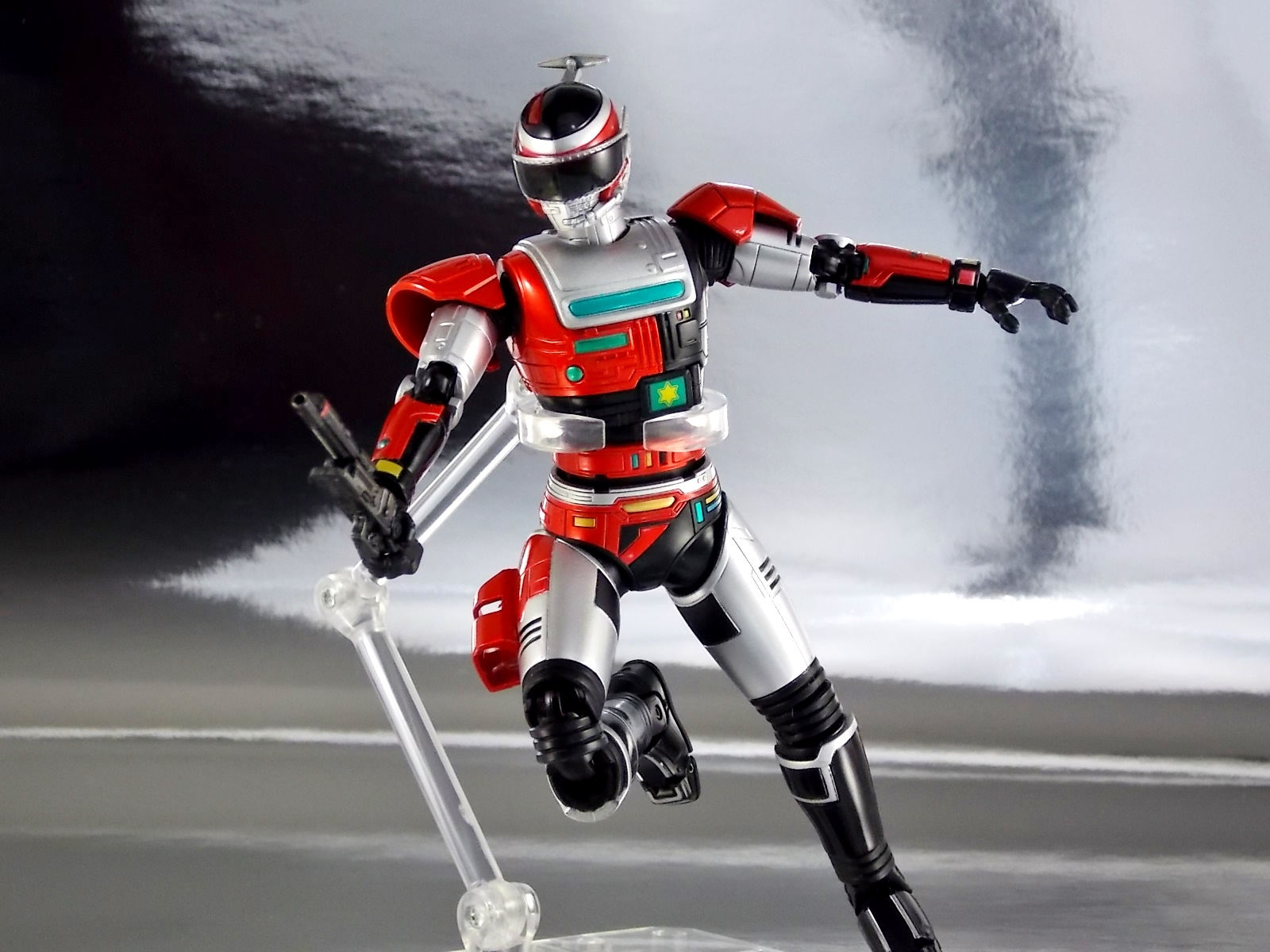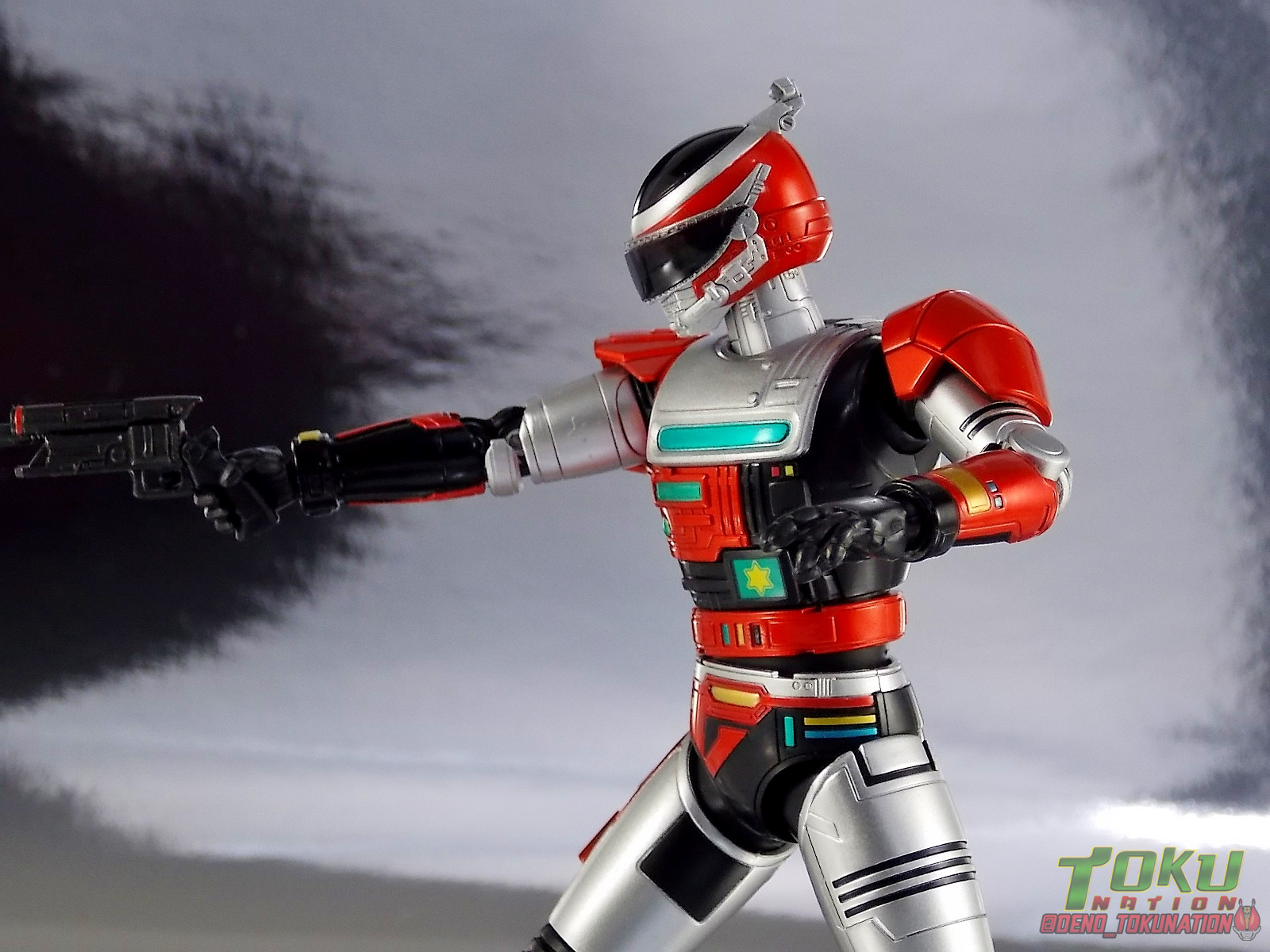 At long last one of the great toku heroes of the '90s joins the S.H. Figuarts line! Hailing form the classic Metal Hero series Tokkei Winspector, today we look at S.H. Figuarts Fire! For a little background on the series (which if you know me you know it's one of my all time favorites) Tokkei Winspector was produced from 1990-1991 but featured a plot set in the near future of 1999. The Tokyo Metropolitan Police Department, faced with rising crime & technological advancements aiding crime, creates Winspector as a special operations unit. One that can tackle threats beyond the capabilities of normal Tokyo MPD officers. Uniquely that meant that Winspector more often than not faced the threat of average criminals or normal people in extraordinary situations rather than a real villain of any kind. No evil organizations here. It was a refreshing premise followed up upon by it's successor as well. Our main hero is Ryoma AKA Fire, a highly skilled police officer and the only human member of the trio. He's helped by his robotic but heroic teammates Bikel & Walter. This series also marked the beginning of a sub-series within Metal Heroes known as the Rescue Hero Trilogy. Winspector would be followed up by Tokkyu Shirei Solbrain and finally Tokusou Exceedraft. Interestingly the link between these 3 series is Winspectors' commanding officer Shunsuke Masaki. Not only is he the founder & chief of Winspector, but after the series ended and the unit was sent to France he went on to found Solbrain as their successors in Tokyo. The 2 teams would eventually team up and Ryoma now known as Knight Fire would become a recurring member of Solbrain's cast. The 3rd series, Exceedraft, would also feature Cheif Masaki to a much lesser extent as the former chief of Winpector & Solbrain, as it was originally intended to be the start of a new continuity of Metal Heroes. ![]() Interestingly enough Chief Masaki's actor, Hiroshi Miyauchi, has appeared through out all of Toei's major tokusatsu franchises as well. Besides his involvement with the Rescue Hero Trilogy he was also the actor who portrayed Kamen Rider V3, Big One, Chief Miura in Ohranger, Zubat, & Aoranger! Now on to the figure you're here for! Packaging I always love it when a new S.H. figuarts subline begins because we get a sort of refresh on the packaging we've gotten used to. The slim style box is here to stay it seems and I'm totally fine with that. In this case Fire gets a nice prominent shot across the bottom of the box with the Winspector logo printed on the plastic window. It feels like there's less room for stock photography on the back of Fire's box. But we aren't buying it for those photos. I do however really like the monotone art on the spine of the box. Packed in with Fires' instructions is also a flyer advertising the upcoming Tamashii Web Exclusive S.H. Figuarts Bikel! That's 2 out of 3 team members down. Main Figures Refreshingly S.H. Figuarts Fire is an all new mold. which is the other best part about a new subline. Bandai has had some missteps in the past with Metal Hero figuarts but it looks like they've finally begun to course correct. We've finally gotten past broken wrists on the Space Sheriffs and the wonky barely functional hips on the B-Fighters. Fire shows us what Bandai can do with his unique design. While the lower half of his body doesn't have much going on we're back to nice flat feet, no curved clown shoes like the B-Fighters. We also get fully functional hips with a decent range of outward and forward/back motion. Far more than previous Metal Hero releases have been capable of. Both Bikel & Walter will feature the same legs. On Fire's right hip is a holster to carry the included Daytric M2. Now the upper body has some truly incredibly detailing. Fire features some really exquisite & intricate technological molding all over his abdomen, chest & arms. It's just superb how they've managed to recreate the show suit. While anything being taken from life-size down to this scale will undoubtedly miss some things, as far as broad strokes are concerned Fire is one of the most detailed figuarts to date. Right down to the crisp paint apps on the various panels and switches molded into his body as well as the really sharp looking Winspector logo on his abs. Much like the torso the arms also have nice asymmetrical detailing, most prominent in the shoulder pads. I don't know why but those shoulder pads have always drawn me to this design. The same way that a Zaku II from Mobile Suit Gundam manages to look just so classically good. My one gripe with the arms, and this may just be isolated to my Fire, is that the elbow pads will fall off for any reason or no reason at all. Perhaps the best feature of this figure is the just dead on perfect helmet. When Ryoma's Crush Tector suit begins to bond to him during transformation it starts with the body armor forming first. The helmet is the last component. When it appears on his head, his human eyes are still visible until a slit drops down with the bright yellow robotic eyes of his helmet. Then the semi-transparent visor slides down over these. This gives off a look very reminiscent of many Metal Heroes through out the franchise that would feature glowing eyes inset glowing eyes. The toy replicates this bit of the transformation by having a hinged visor. You can display him however you wish but traditionally Fire's visor would be down. Though this is probably the best job Bandai has ever done of making the visor just transparent enough to make the eyes appear to be glowing behind it even when it's down. Fire is just an excellently sculpted & engineered figure. I mean it when I say this is the best Metal Hero figuart to date. However there are numerous small details missing. For every panel line or indicator that is painted there's at least another that isn't Like the the 3 square indicators behind Fire's com link that are unpainted on the figure. The nice thing about this figure is that is also fina