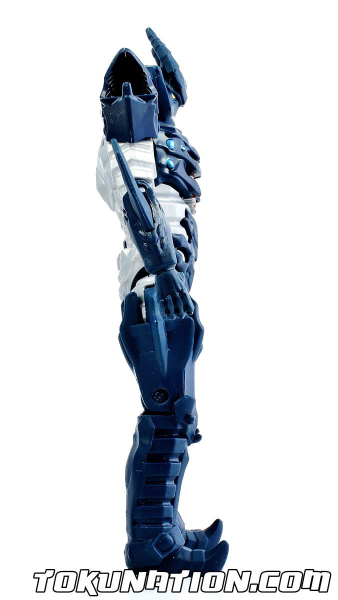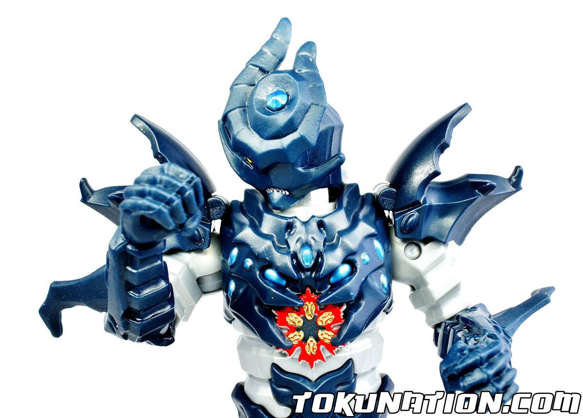 Spoiler alert! The evil Snide is the monster form of another character named Heckyl who both apparently share the same body but not the same mind. But they both have one goal in common - getting the Energems and destroying the Power Rangers Dino Charge team! But how does the figure stack up? Let's find out! Reviewing the Overall Figure For starters, Snide has a decent amount of articulation - 13 total points (1x head, 2x each arm, 2x each leg, 2x elbow and 2x knee joints). This is not a bad amount, but for a figure that wields a long sword it's somewhat disappointing that your articulation is limited because of no ankle or wrist swivels that we've come to enjoy with most of the other figures. The sculpting? Absolutely gorgeous as we've come to expect from Bandai America. Sadly, again as we've come to expect, the paint application is lacking. Yes - the red decoration on the front of his body is well down (check out the pic in the gallery). And his eye and his teeth being all individually painted is impressive, but the second you flip the figure over you have a solid off-white back. I know, I know - nothing is going to change (unless he becomes a Legacy figure and costs us another $5) but I'm hoping someone somewhere reads this and sees how something that could be a top tier figure gets lessened as you feel you have to FINISH PAINTING IT YOURSELF to get the figure you're supposed to get. Argh. A strange feature - his shoulder pads are on hinges that move up as to not block the articulation of the arms. But unlike Sledge's where they were further down his arm as to not interfere at all, Snide's are actually on the shoulders, meaning his arms cannot go straight up - they will always have to be at an angle at best. So while the figure LOOKS cool (from the front), I wish it had wrist and ankle/thigh articulation (like the Ranger figures get) and as always, more paint. Reviewing the Accessories Snide comes with a sword. We're not quite sure why (his Sentai counterpart had an axe ... but then again, he was only seen in the crossover movie and not the regular series, which is part of Snide's charm as he is more or less an original villain in the series). Either way the sword's hilt looks pretty normal for an evil bad guy's sword, but it has very little detail other than that. So on to the bullet points. Yay bullet points. The Good!