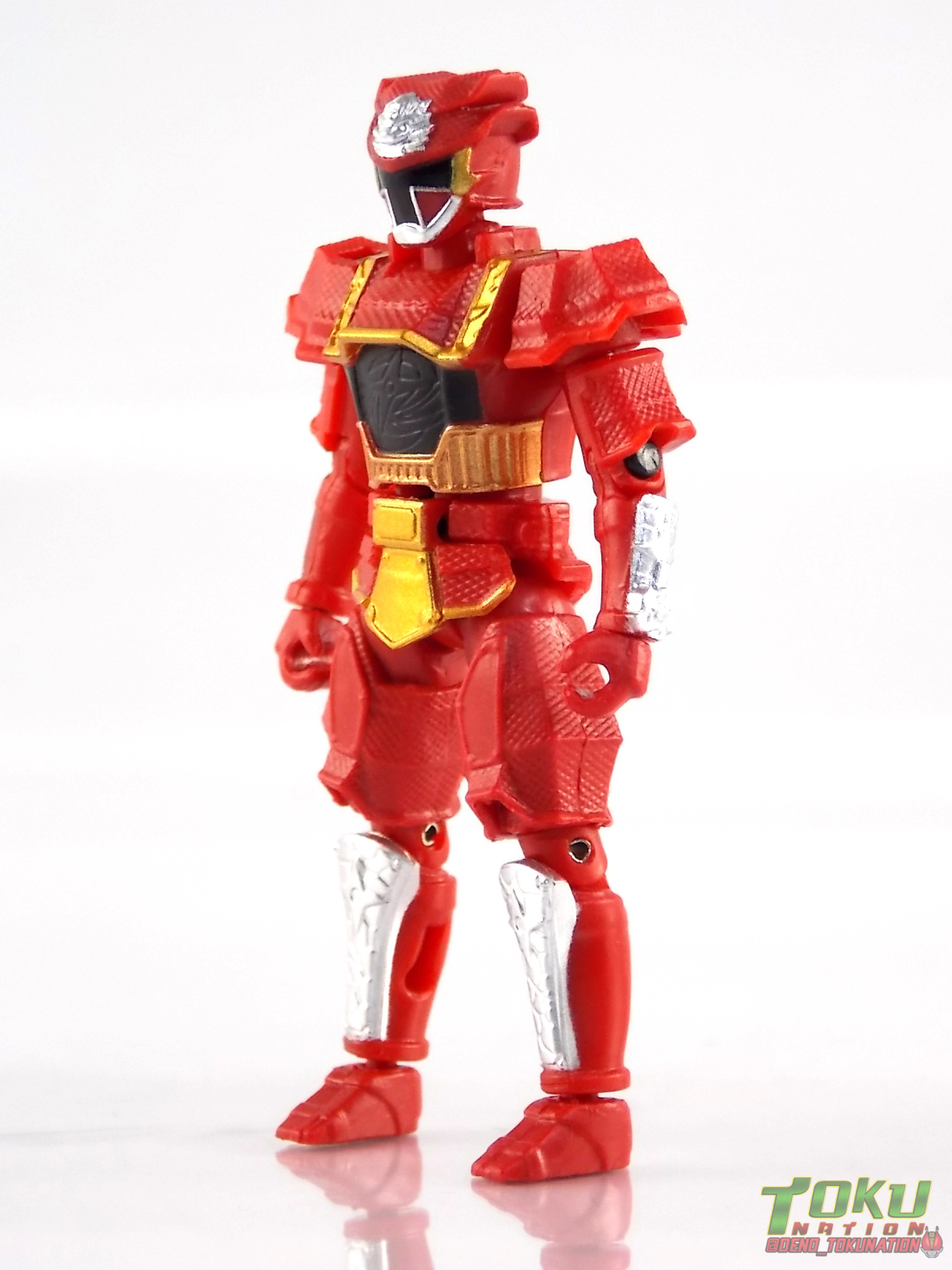 Premium Bandai is at it again with another Shuriken Sentai Ninninger high end release. Last year saw the inaugural figure of this premium sub line with the Artisan Chogokin Shinobimaru. Now for round 2 we have yet another high end articulated replacement for a DX figure with a touch of diecast to give it that premium feel. Today we're taking a look at the Super Sentai Artisan Rodeomaru! Packaging Artisan Rodeomaru comes in a box slightly larger than Shinobimaru, mostly because of the vastly improved accessory count. It's still a very compact but wonderful looking box. A shot of the actual show suit is used on the front while the back prominently features Chouzetsu Akaninger. There's also the characters for Chogokin/超合金 on the front so you legitimately get excited about the figure you're about to handle. Main Figure As a Super Sentai Artisan release one can expect a degree of quality in this figure that simply isn't present in the main retail toyline. To a degree Rodeomaru is a great example of what the Artisan premium line could be. Much like Shinobimaru it's a pretty quality figure, but it does still have some significant drawbacks. In the plus column, Rodeomaru looks fantastic, just a wonderfully almost perfectly accurate representation of this mecha. His DX counterpart looked fine, but as you can see in the comparisons, it was molded in such a way as to allow it to combine more than anything else. So the individual robot mode of the figure suffered for it. The way the arms and shoulders were on the DX was specific for it's combinations with Bison Buggy/King. As you can see in the accessory list below, the Artisan has an answer to that, but one that isn't all that great. Now on the topic of the arms they are pretty solid. There's a nice swivel joint in the upper shoulder, the elbows have good ranger, and the poseable fingers help this guy do a lot of things, like hold silly accessories as pictured below. However his shoulders are gargantuan, and not designed to angle out of the way. You won't get much outward movement from them. The legs, while featuring some nice hefty chunks of diecast and the same cool floating knee pads as Shinobimaru, are pretty limited. The way the hip armor works on his things it impacts the waist, and unlike with Shinobimaru where there was angled hip armor to use to your advantage, Rodeo just suffers with hips that can't reach their full potential. While there are swivel joints just above the knee to maneuver these thigh pads, you still lose a bit of movement because of them. I still managed to get him into some decent poses despite these flaws and he looks undoubtedly good while doing them. Rounding things out this figure features the same kind of back clips as Shinobimaru, allowing it to sit in DX Shurikenjins' pilot seat to form Shurikenjin Texas. And we should also take a look at the final 2 gorgeous components of the figure, the golden chest plate, and that wonderfully sculpted head. Now while the head IS sculpted very well, the paint can vary figure to figure. As you can see below mine has a rather noticeable golden droplet just below his chin. Sadly I have to report that the head wasn't designed to angle up at a 90 degree angle like the DX either, so when you do combine it to form Bison King, you're going to have some issue with the head sticking out too far, as pictured. Accessories In STARK contrast to Shinobimaru, the accessory breakdown for this release is pretty solid. Honestly it's kind of funny because one of these "accessories" is an entirely new figure: 1 - Starninger figure. This is meant to replicate the way in which Kinji rides Rodeomaru into battle. To use it you just need to slide out the rectangular piece on the figures' right shoulder, then plug this in. At it's size the sculpt is great for this part and it gives the figure a good sense of scale, but otherwise it doesn't do anything and features no paint applications. Just like the Akaninger included with Shinobimaru 2 - replacement arms. These arms are meant to more properly replicate the way the DX toy and show counterpart of Rodeomaru ride on Bison Buggy. The arms can be pulled off at a rather inconveniently placed plug up inside the shoulder. Plugging the new arms on can be a little bit of a pain as well. When in use I can't say I find the results all that satisfying. You lose the articulated and therefore much stronger grip of the normal arms' hands, and the tabs on their undersides, meant to interface with the buggy physically, don't click in very strongly. Honestly the arms are really disappointing and don't amount to a cast improvement. They'd have been better served making fold out clips on the underside of the normal arms. 2 - replacement shoulder pads. Perhaps not quite as disappointing as the new arms, these pads can be used by sliding out the top section of the normal shoulders. These have clips which allow the DX Bison King Shuriken to plug onto Artisan Rodeomaru as it would his DX counterpart. Again, just as with the underside of the arms, these clips really don't snap in very well. The connection is kind of loose and dodgy. Add to this that Artisan Rodeomaru doesn't have the kind of neck his DX counterpart does and his head sticks straight forward very noticeably making the Bison King faceplate look as though it's pointing at an outward angle. 1 - Chouzetsu Akaninger figure. Now this little guy is what was originally the real selling point of this set to me. The announcement of his inclusoin got me excited. Then I got the figure in hand. So much for premium chogokin eh? Akaninger is an entirely plastic, yet admittedly nicely articulated figure. This diminutive little guy is about the size of his DX counterpart so he's still compatible with Lion Ha OH, though he requires 2 adapter accessories pictured with him below. He also included his Ninja Ichibantou and has a peg hole molded into his back to store it. While there are some paint apps present on the figure it isn'